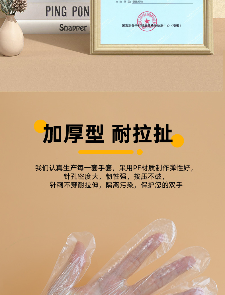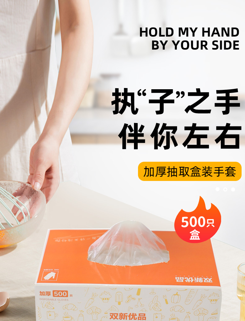 一次性的手套盒装抽取式食品餐饮pe家用龙虾塑料薄膜加厚500只