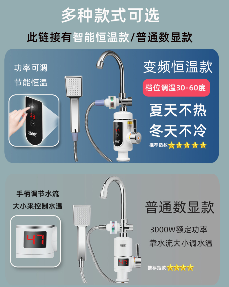 杨诚电热水龙头热水器即热式过水电加热卫生间厨宝家用淋浴洗澡器