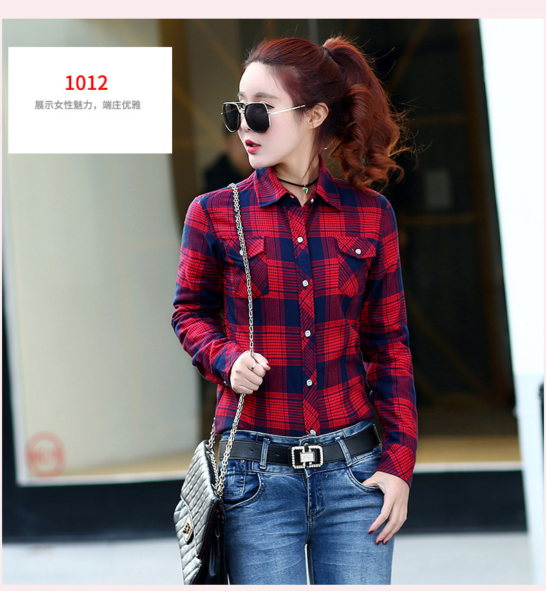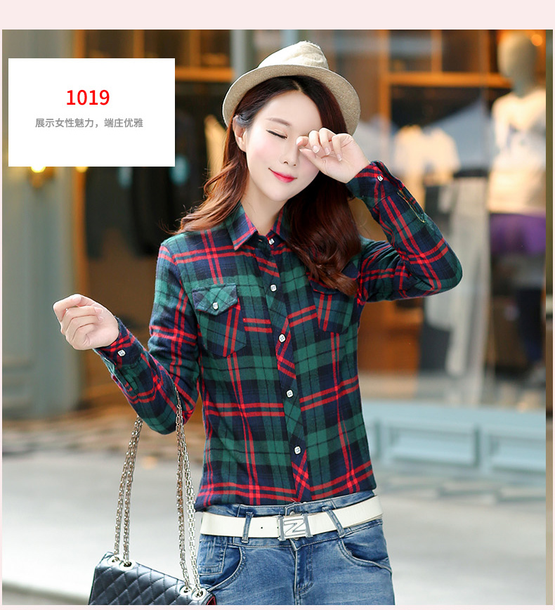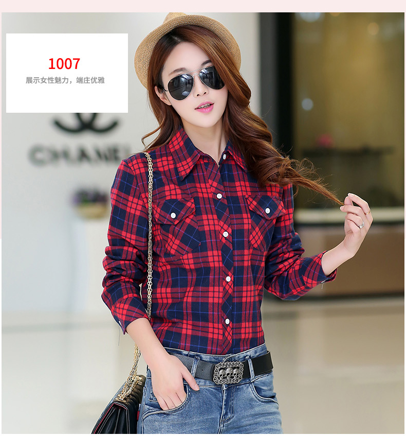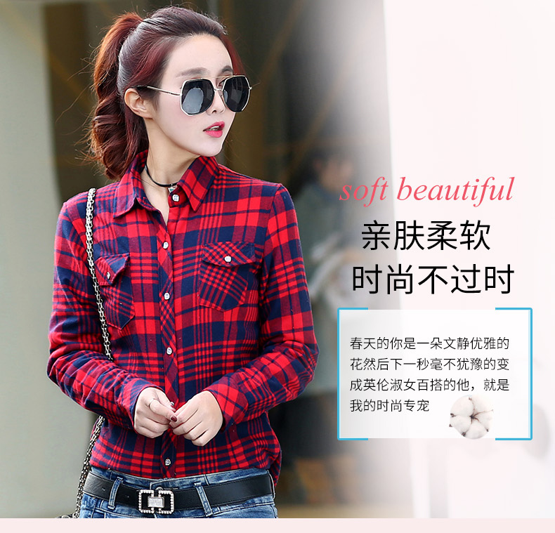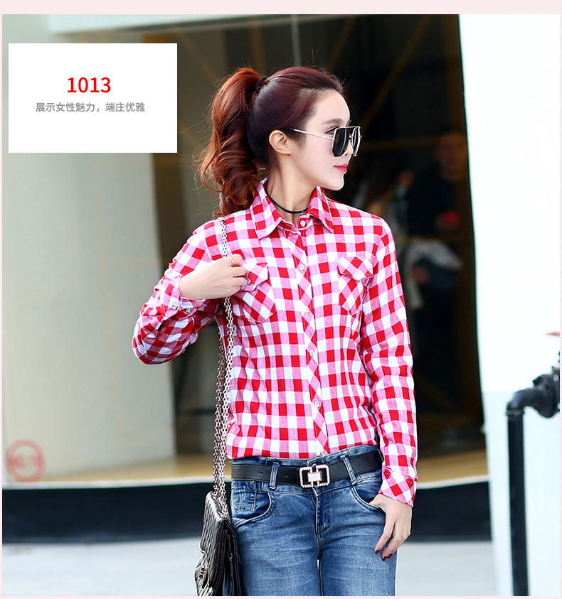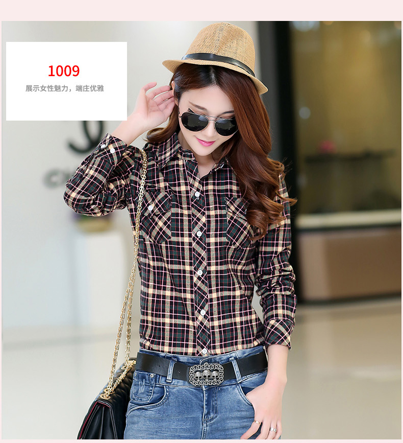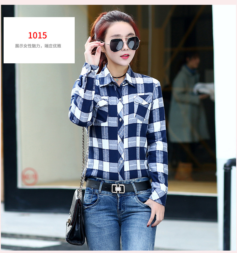 格子衬衫女长袖韩范学院风春秋新款女装 大码百搭打底衬衣女