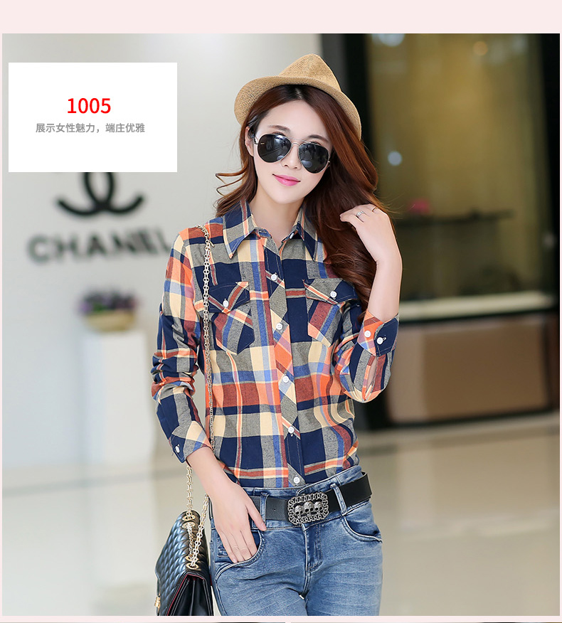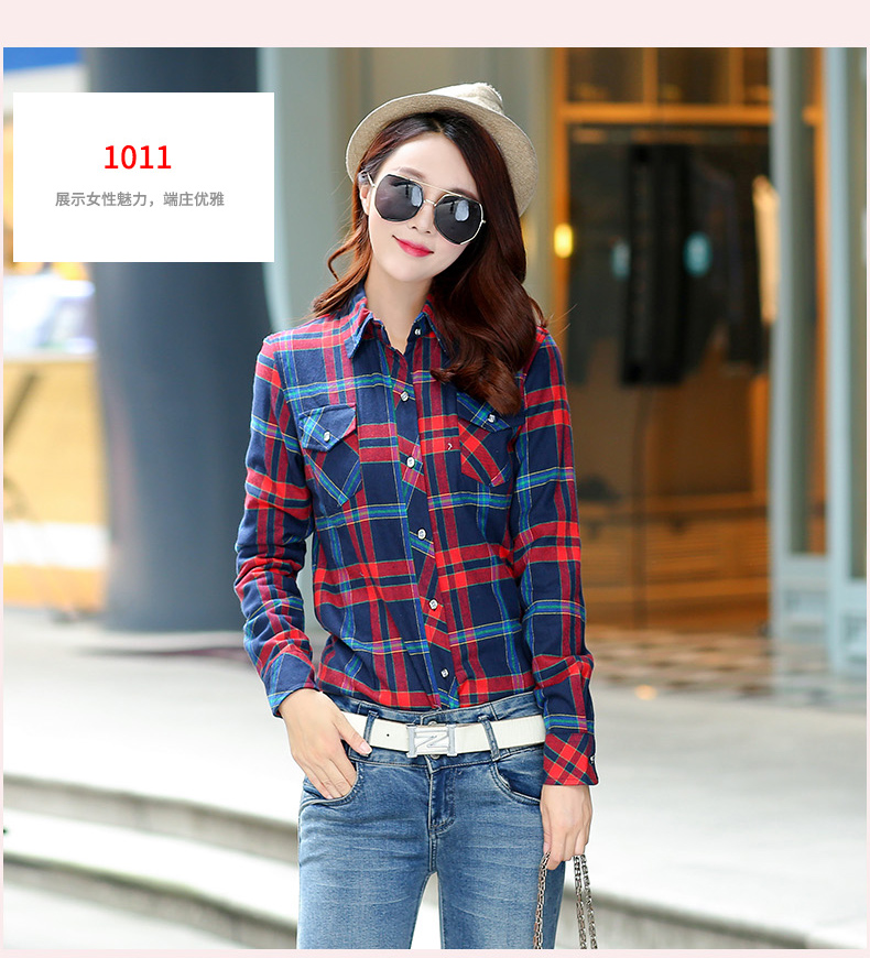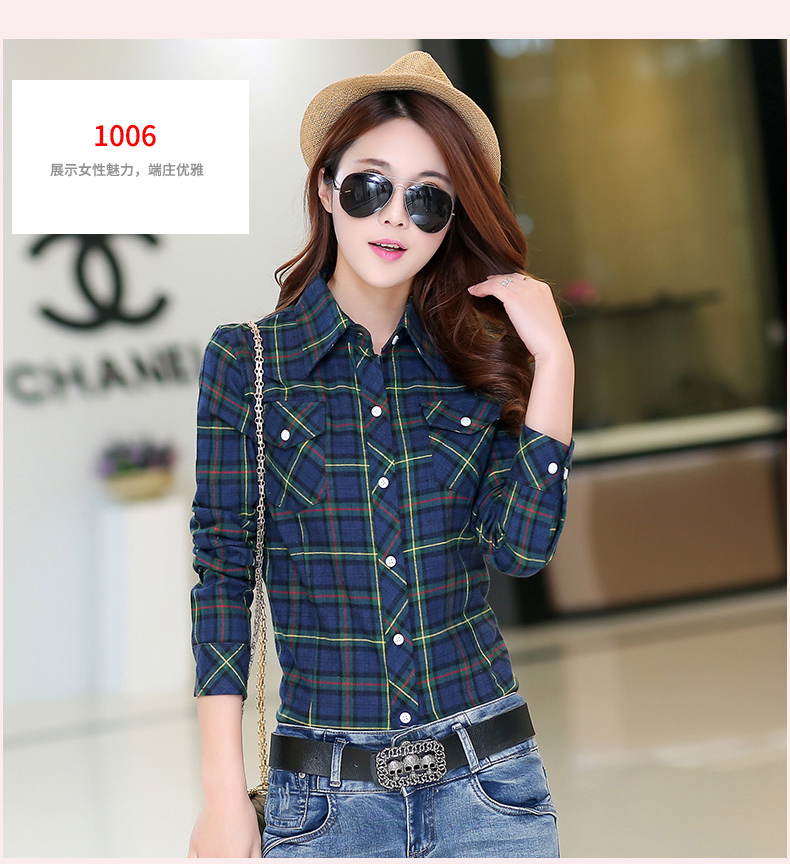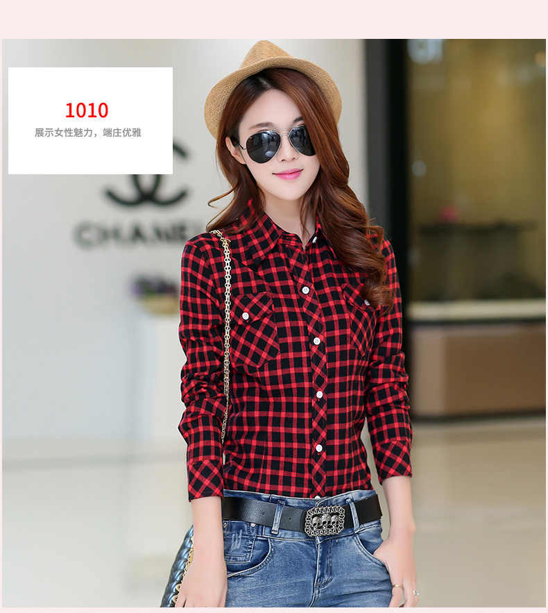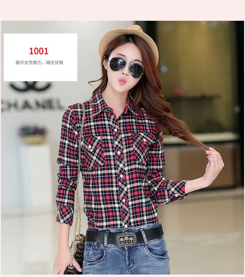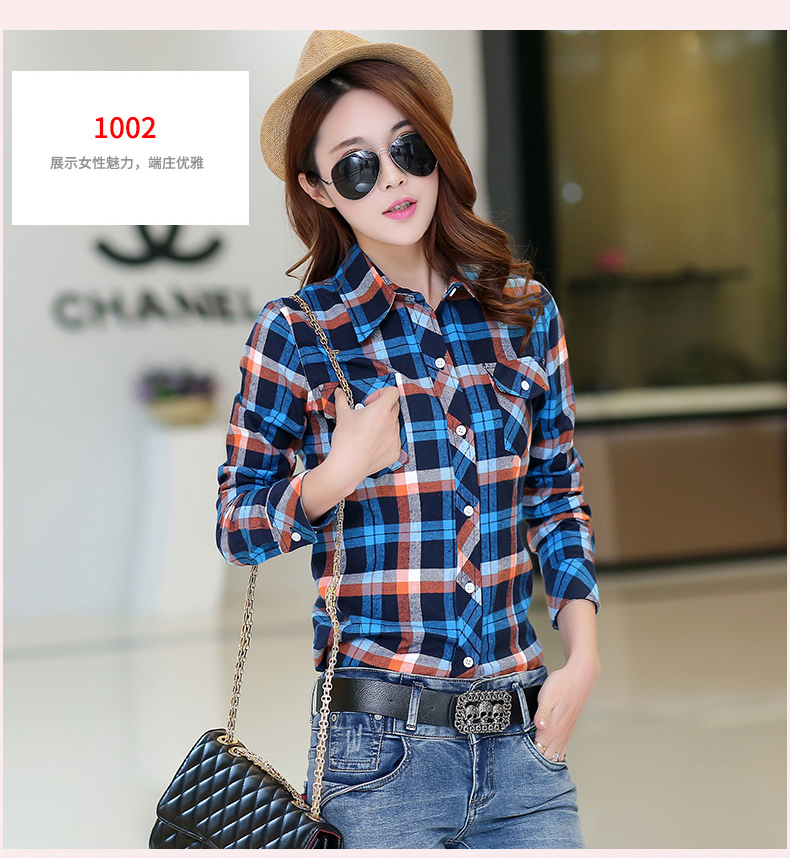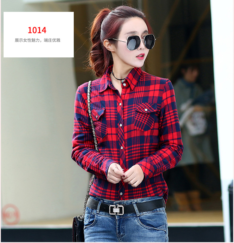 格子衬衫女长袖韩范学院风春秋新款女装 大码百搭打底衬衣女