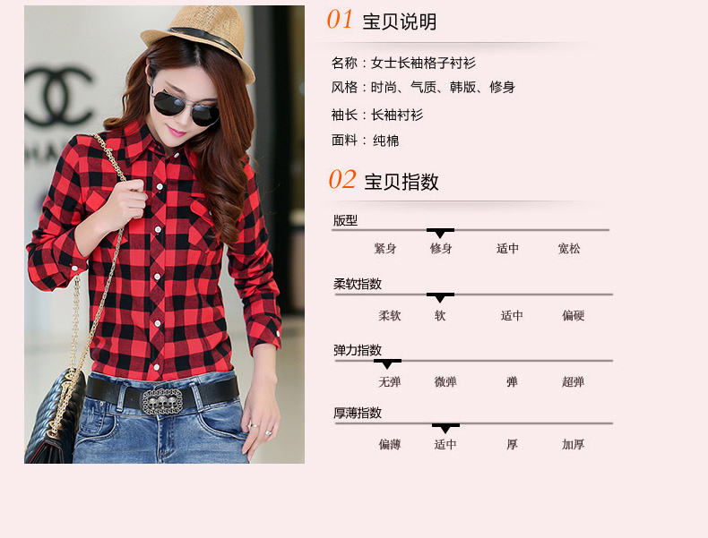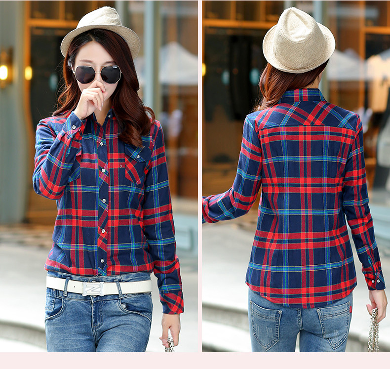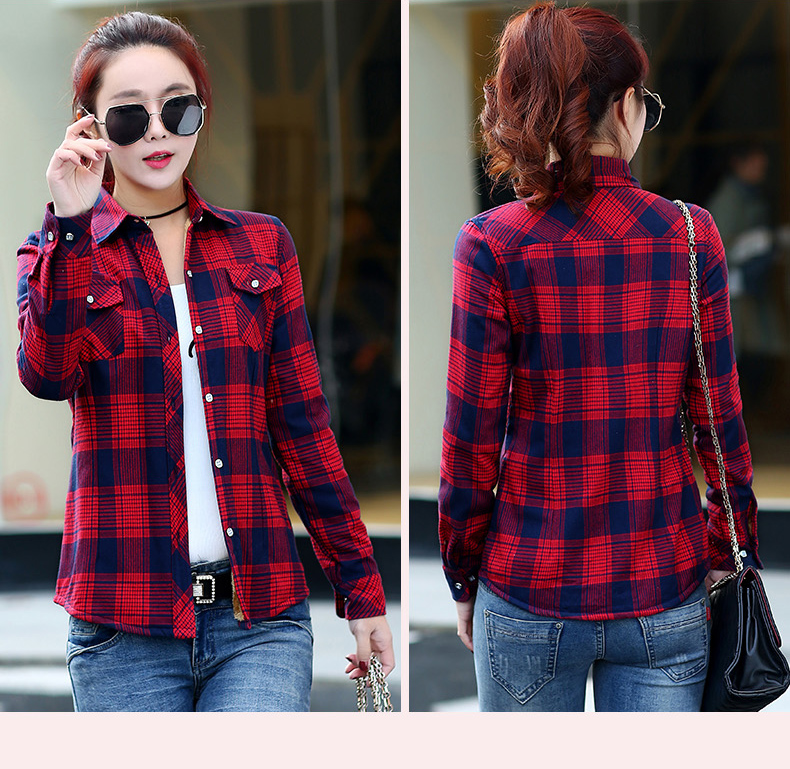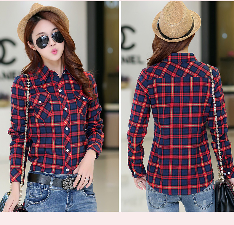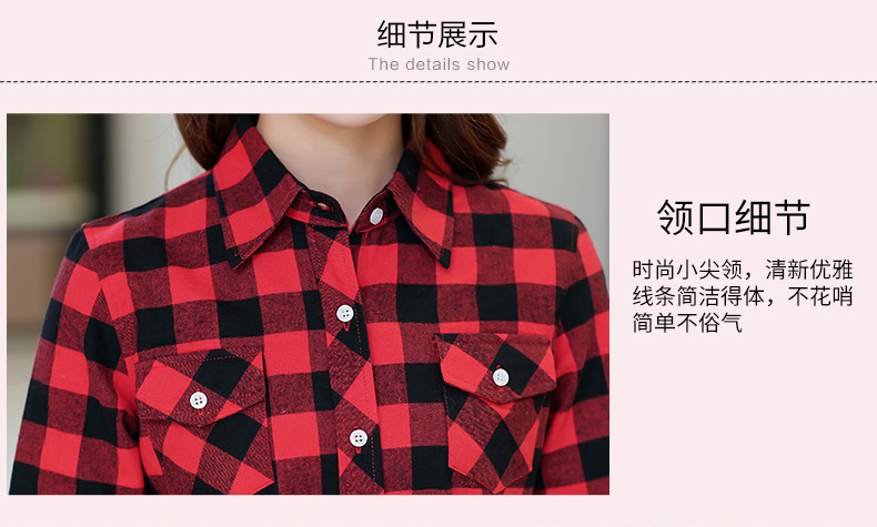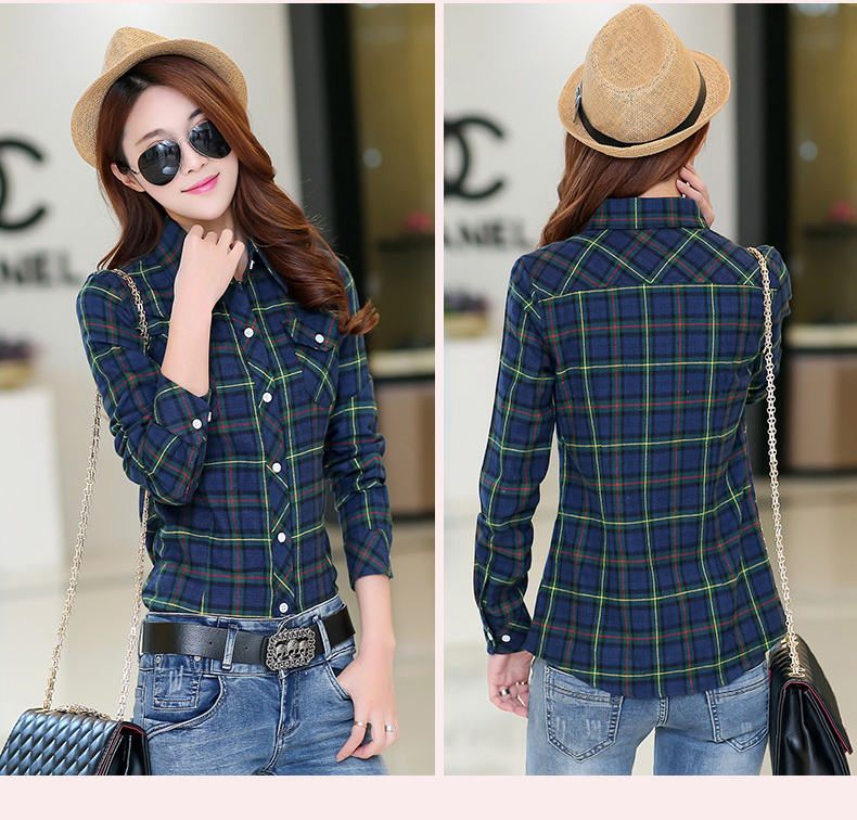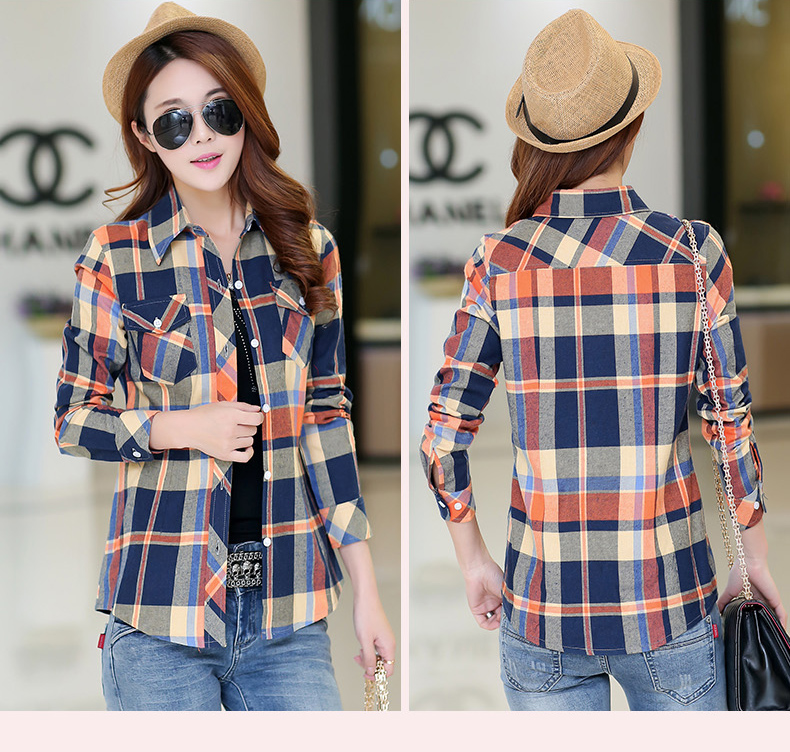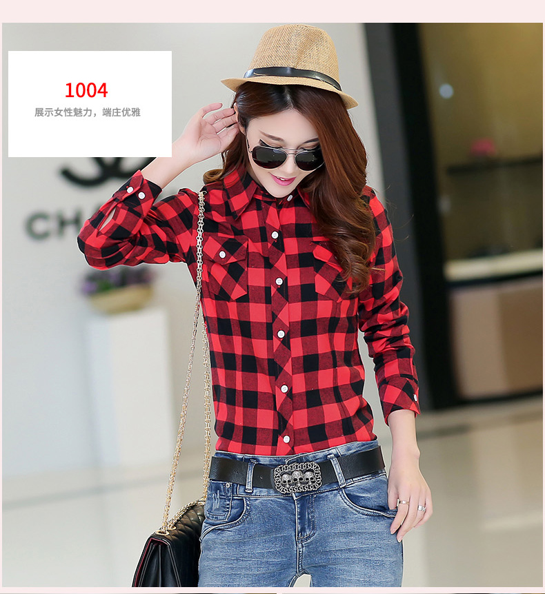 格子衬衫女长袖韩范学院风春秋新款女装 大码百搭打底衬衣女