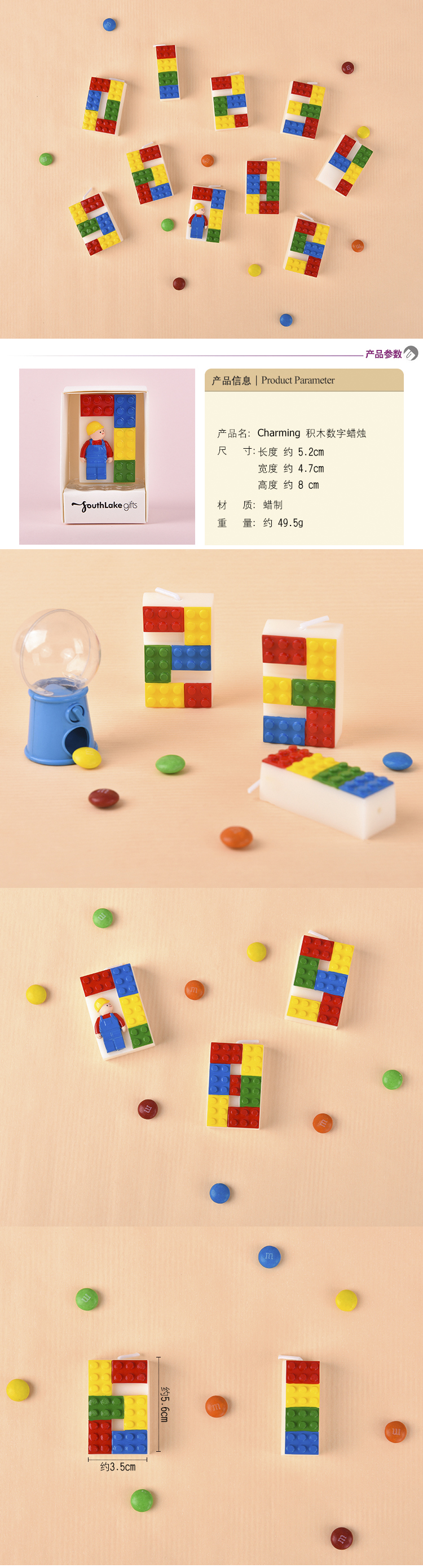 小颗粒积木彩色数字蜡烛宝宝生日蛋糕装饰周岁男孩甜品台派对用品