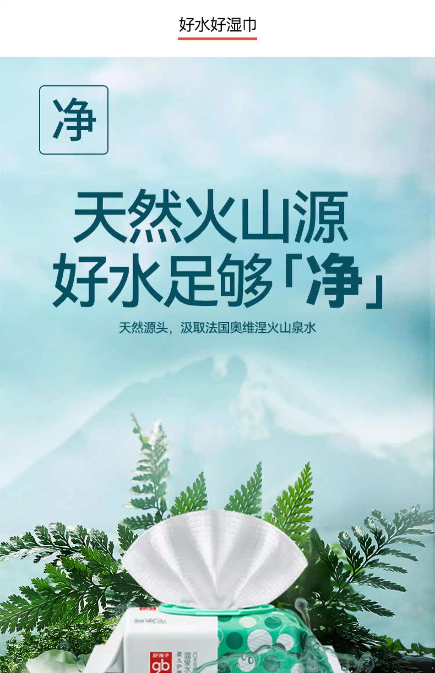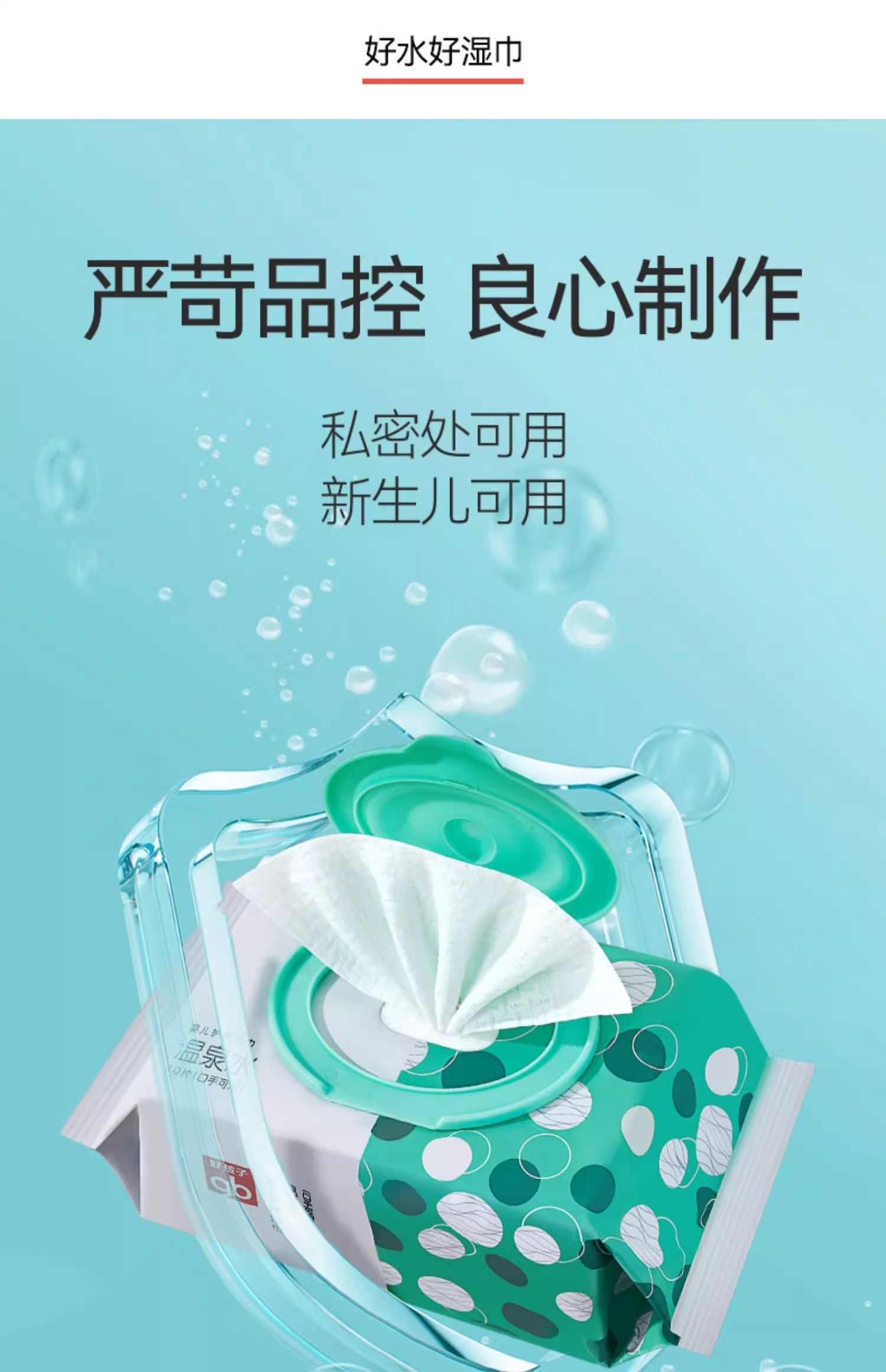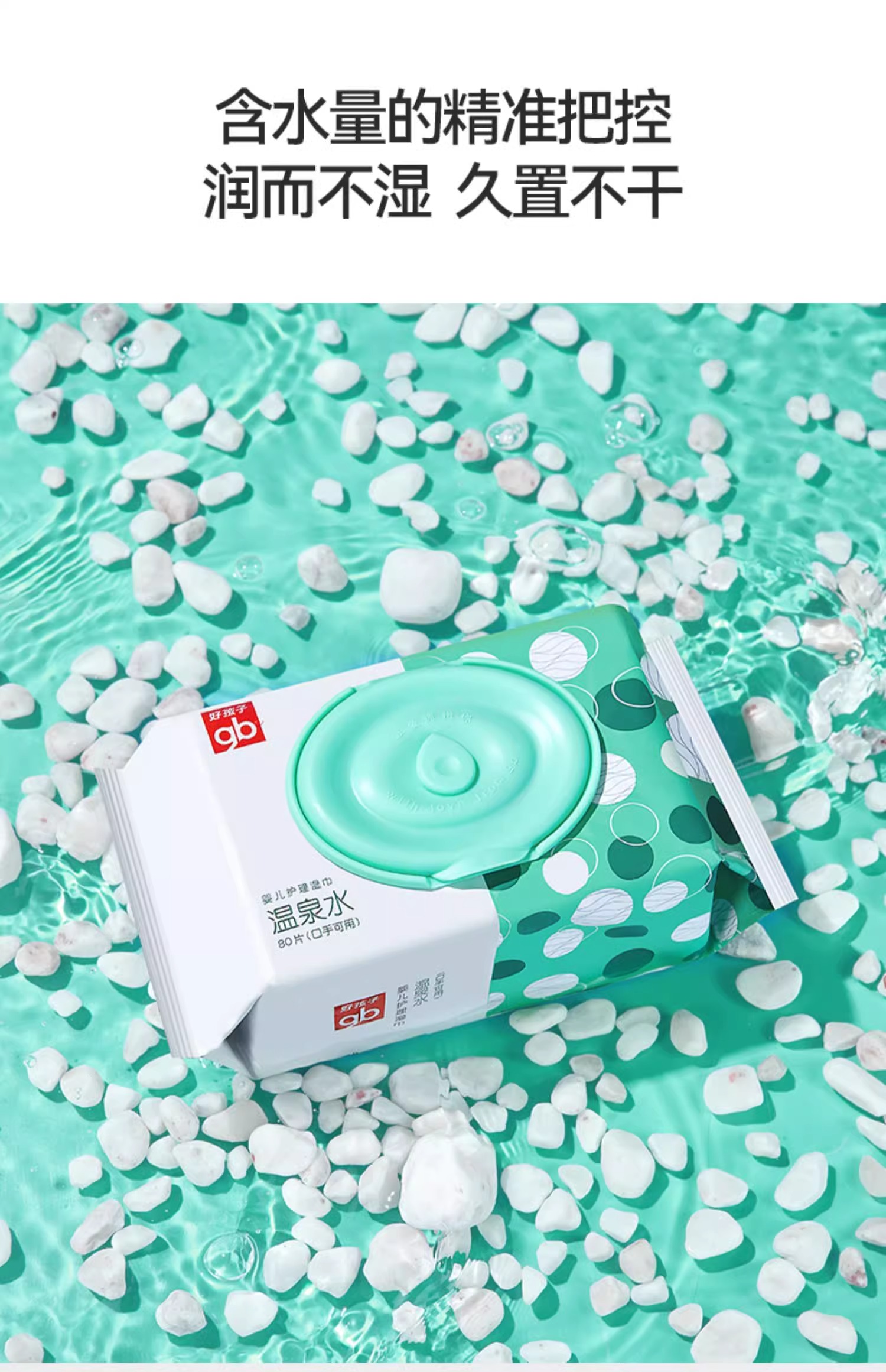 gb好孩子温泉水湿巾新生婴儿湿纸巾手口屁幼儿童专用大包单包80抽