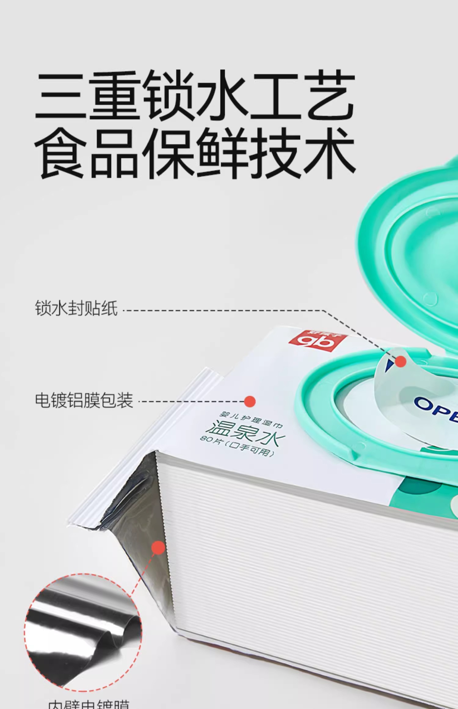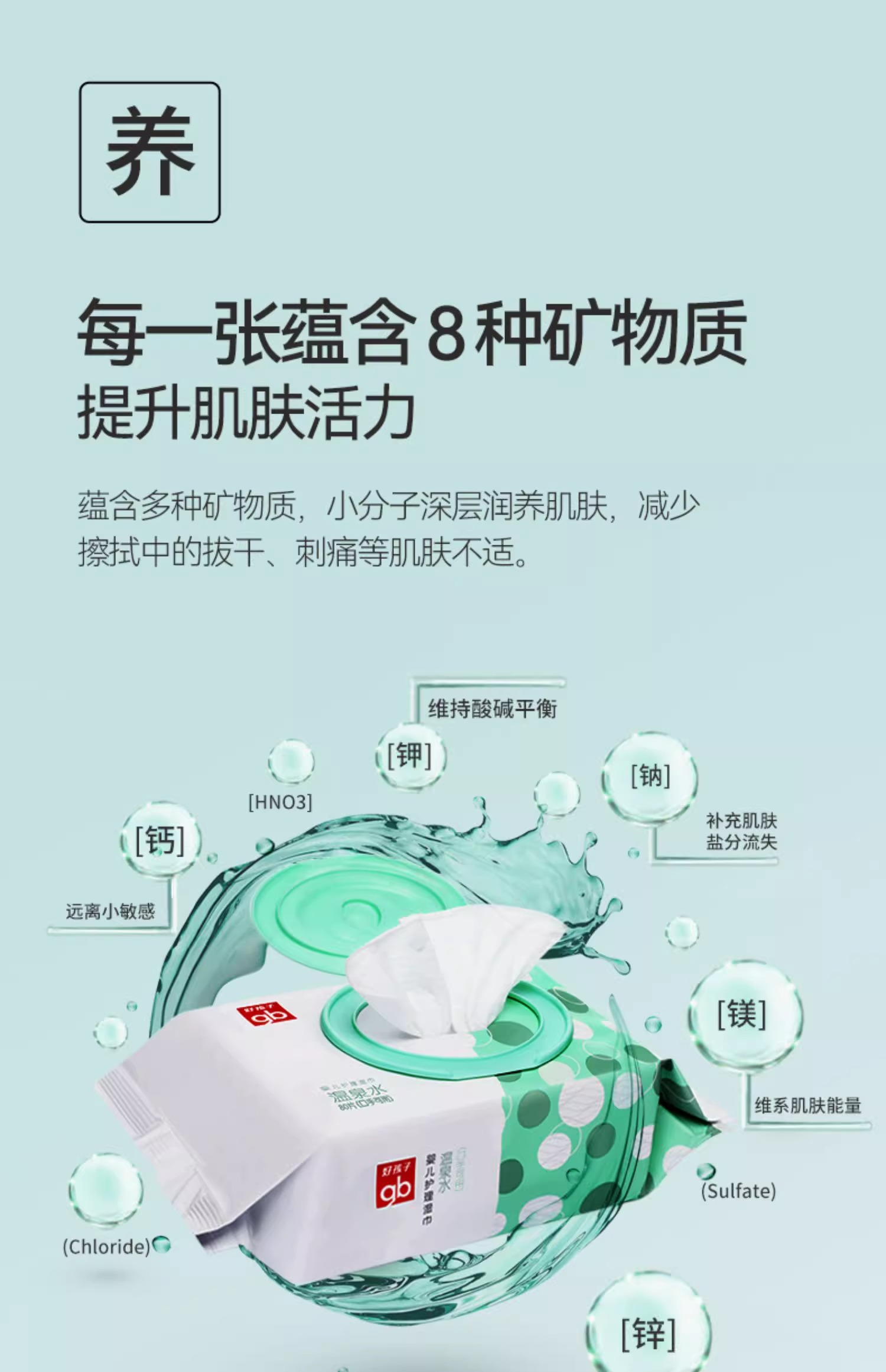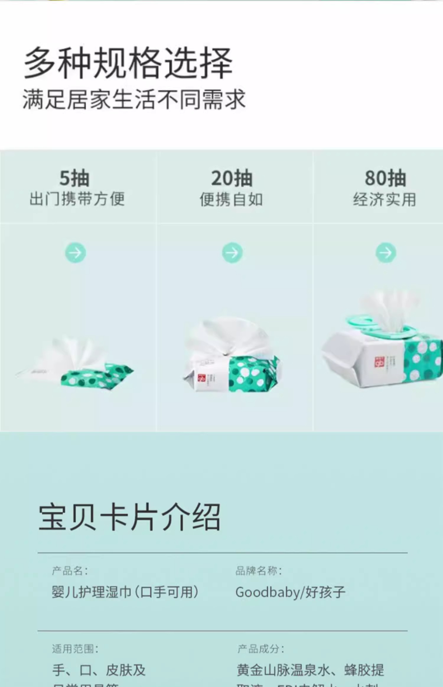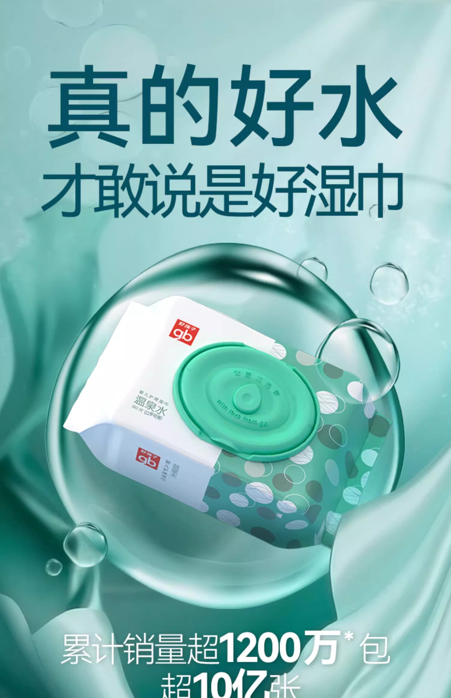 gb好孩子温泉水湿巾新生婴儿湿纸巾手口屁幼儿童专用大包单包80抽