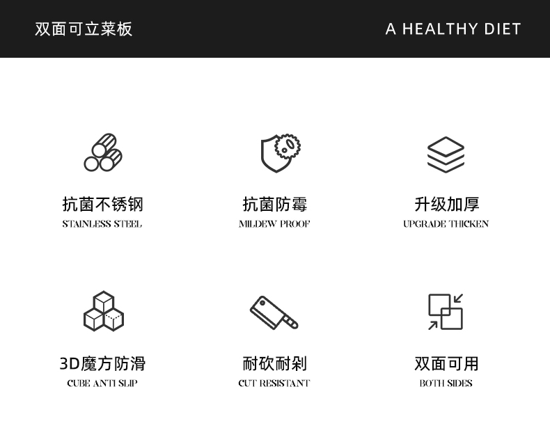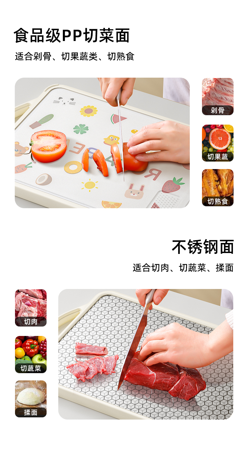 菜板家用抗菌防霉砧板双面粘板厨房专用不锈钢切菜板水果刀板案板