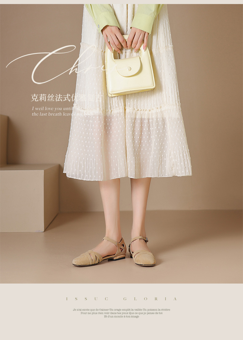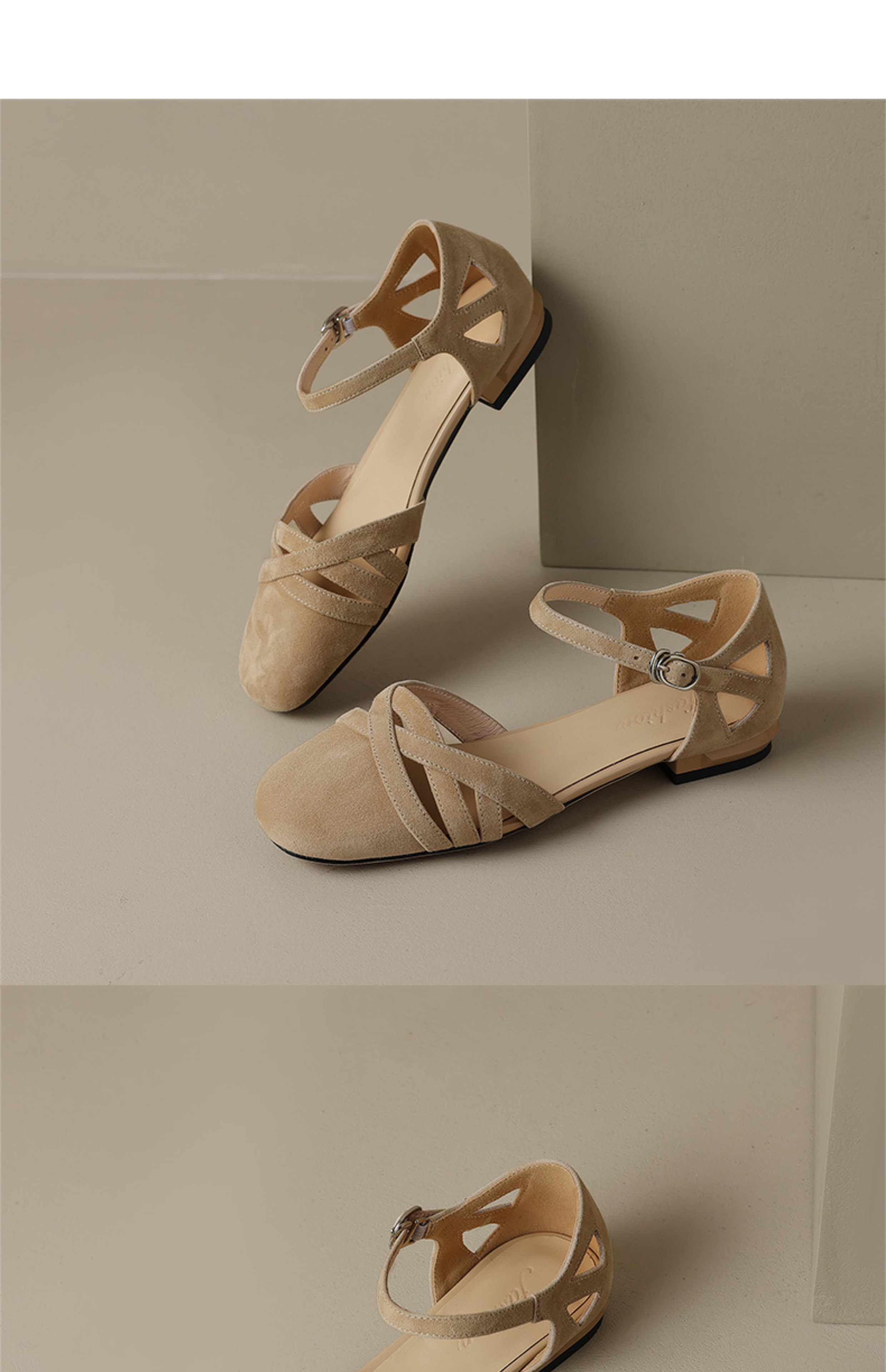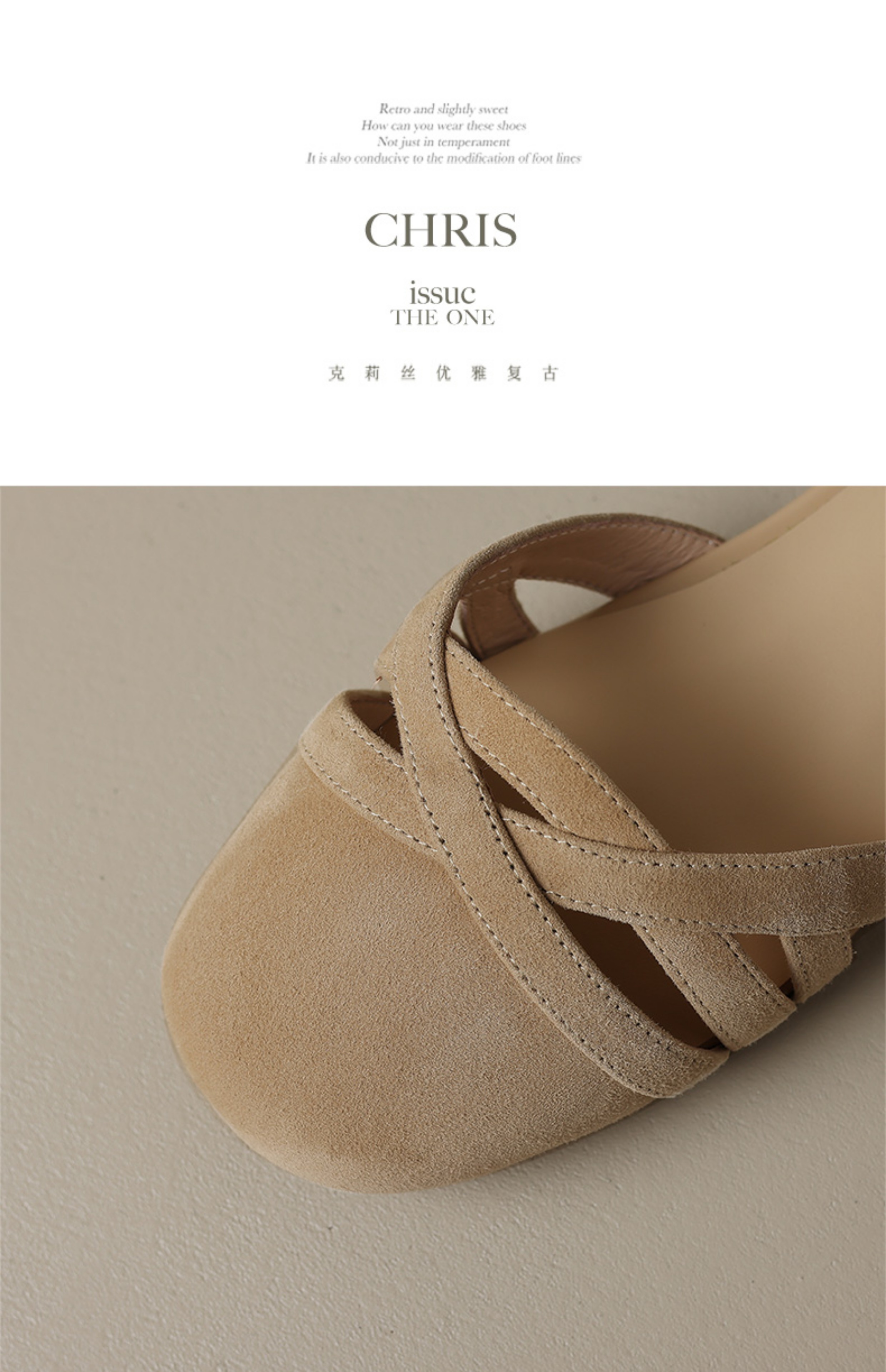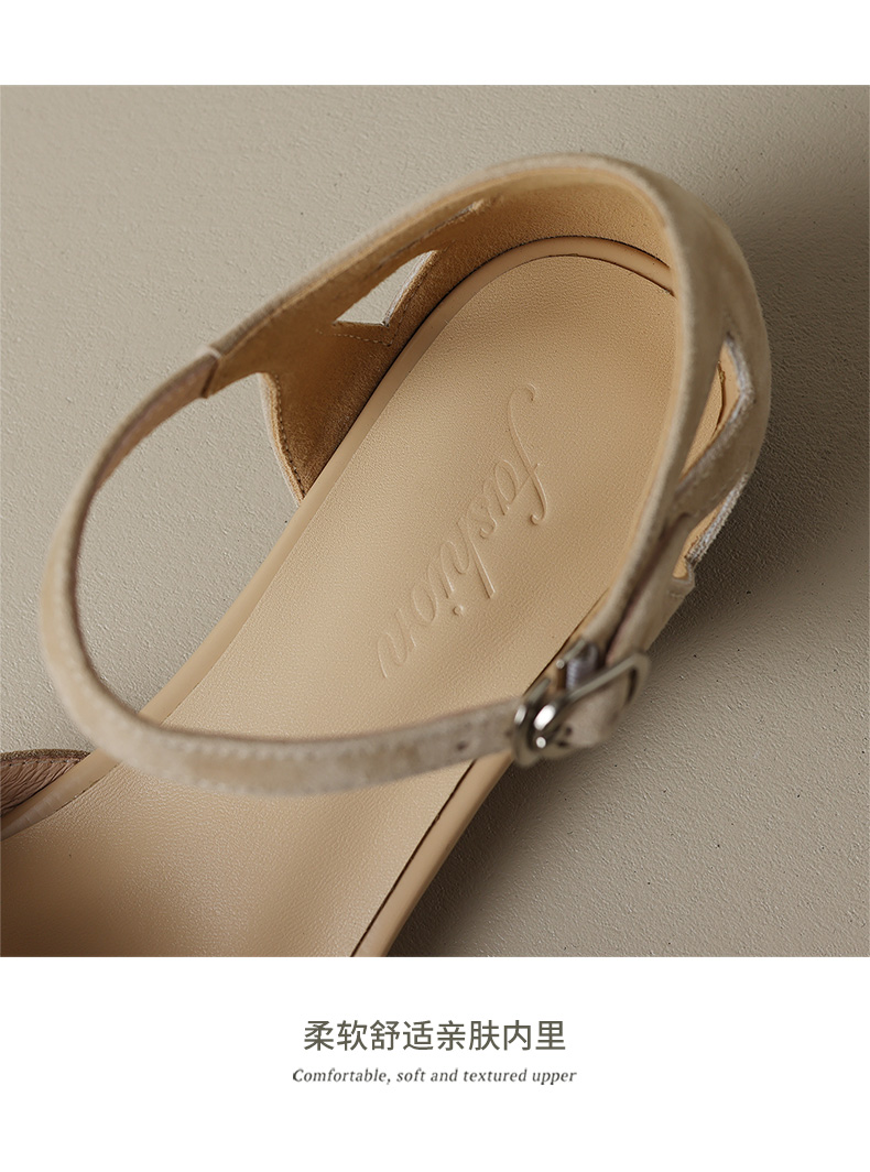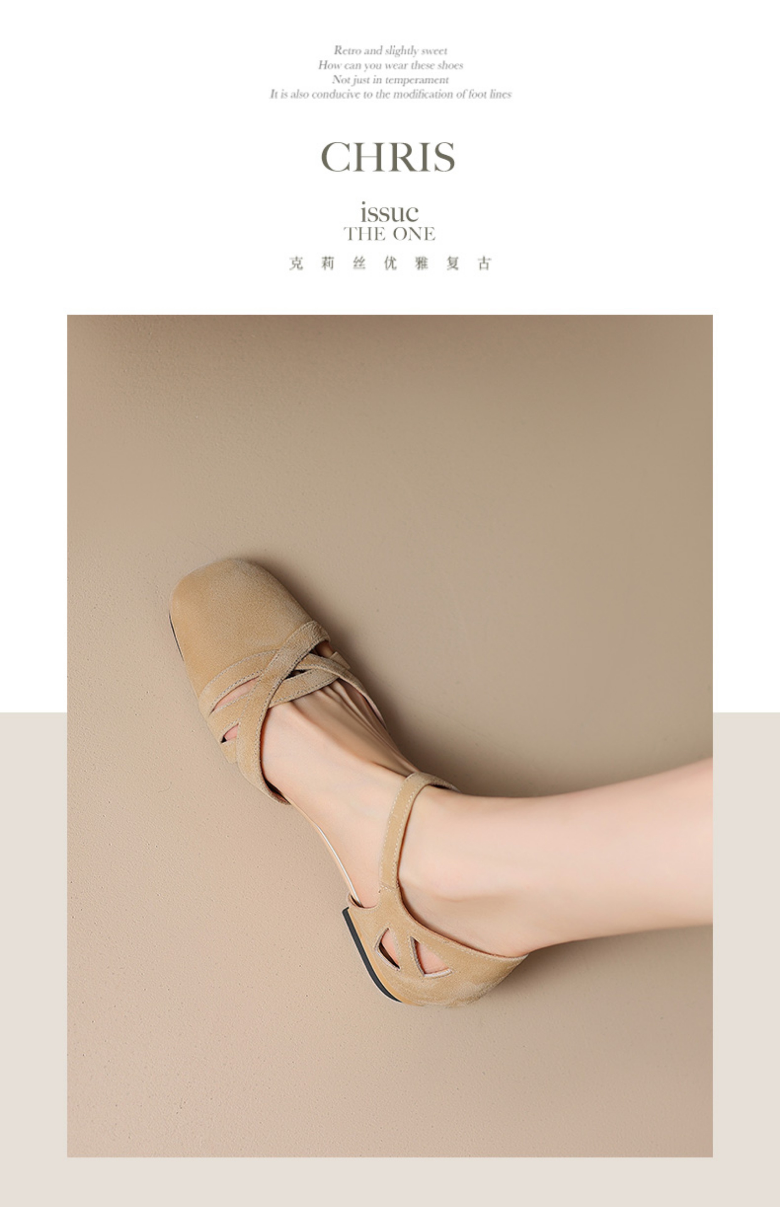 罗马复古包头凉鞋女夏真皮平底粗跟软皮磨砂绿色软底猪笼编织凉鞋