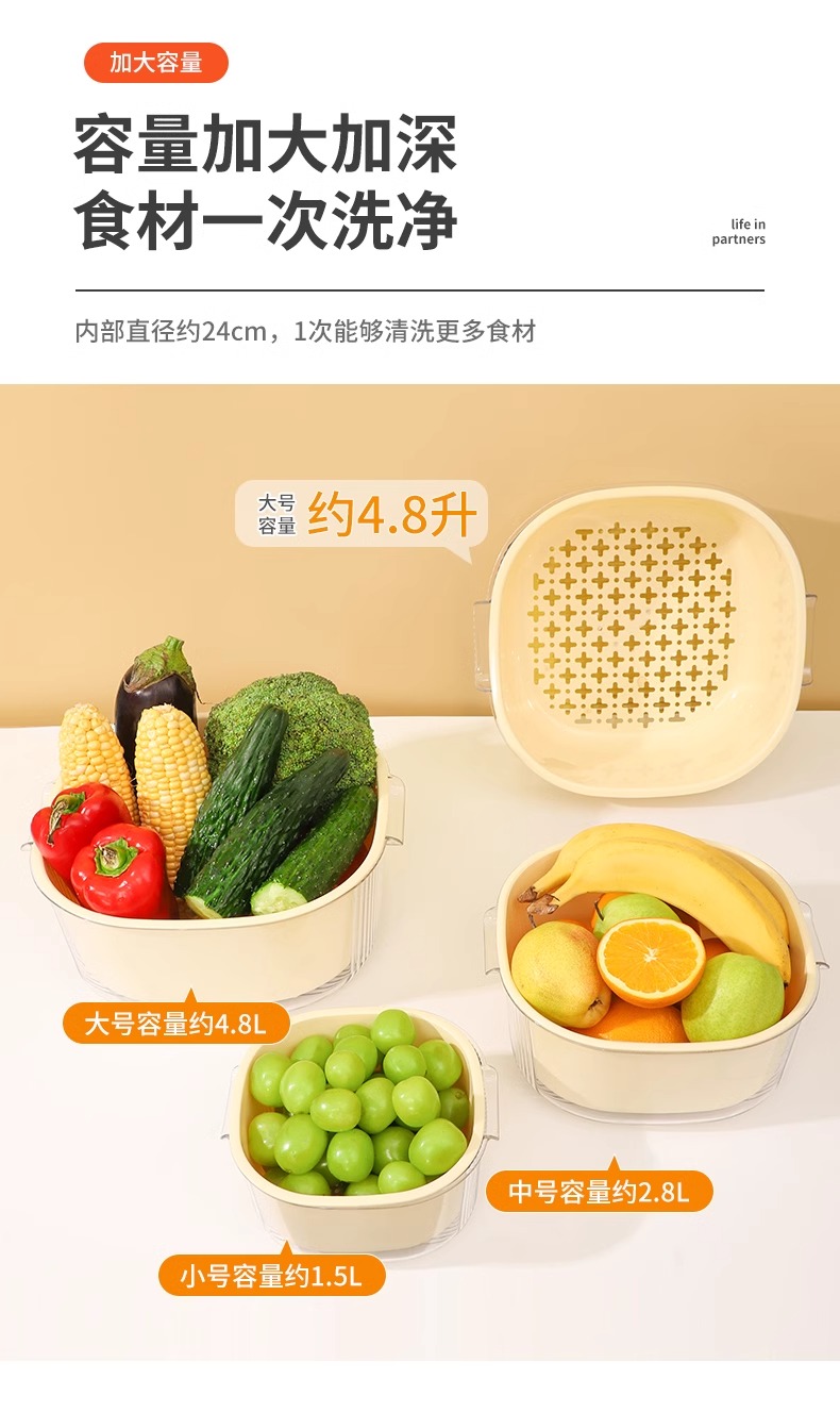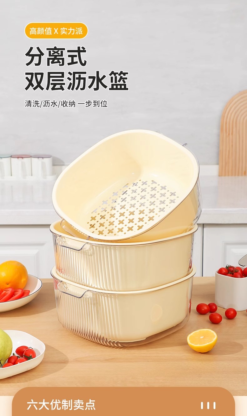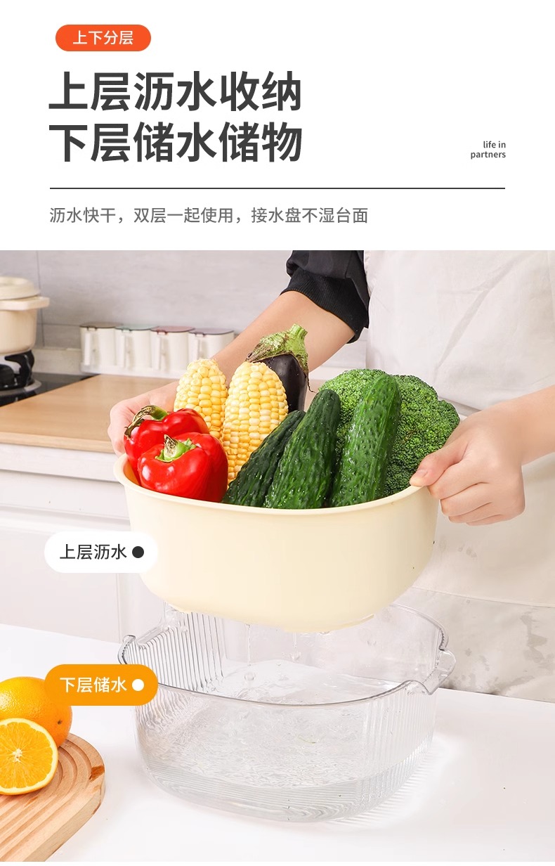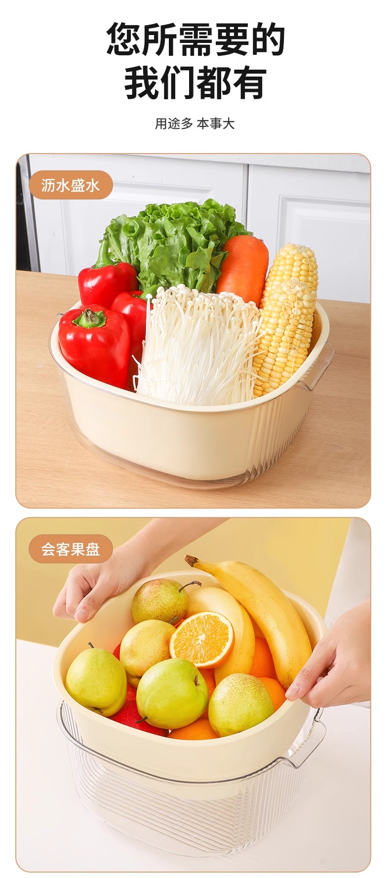 双层洗菜盆家用厨房沥水篮洗菜篮透明洗水果滤水水果盘滴水篮