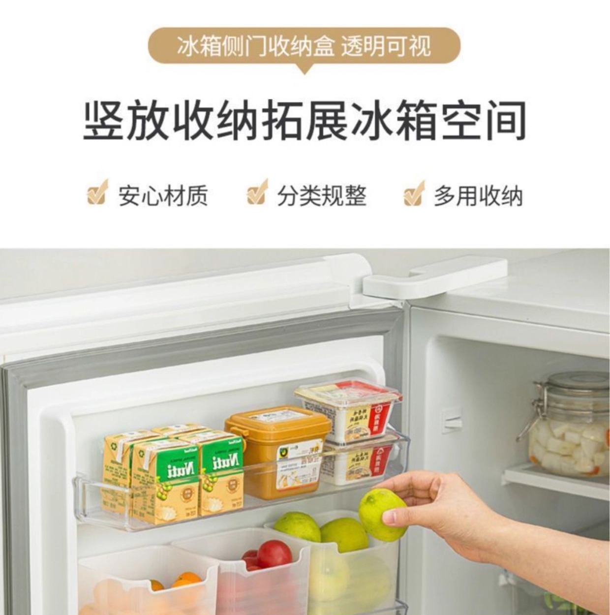 冰箱侧门收纳盒分装整理神器内侧保鲜食品级侧面储物门上盒子厨房