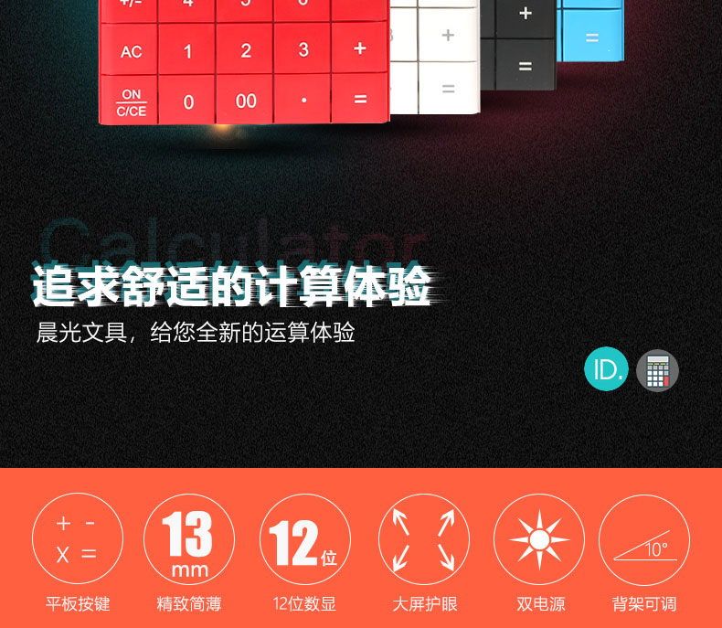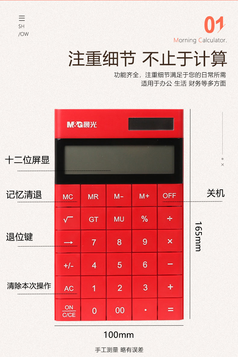 晨光计算器女 时尚财务办公会计专用多功能新款商务便携平板桌面 太阳能可爱女个性创意时尚学生用考试计算机