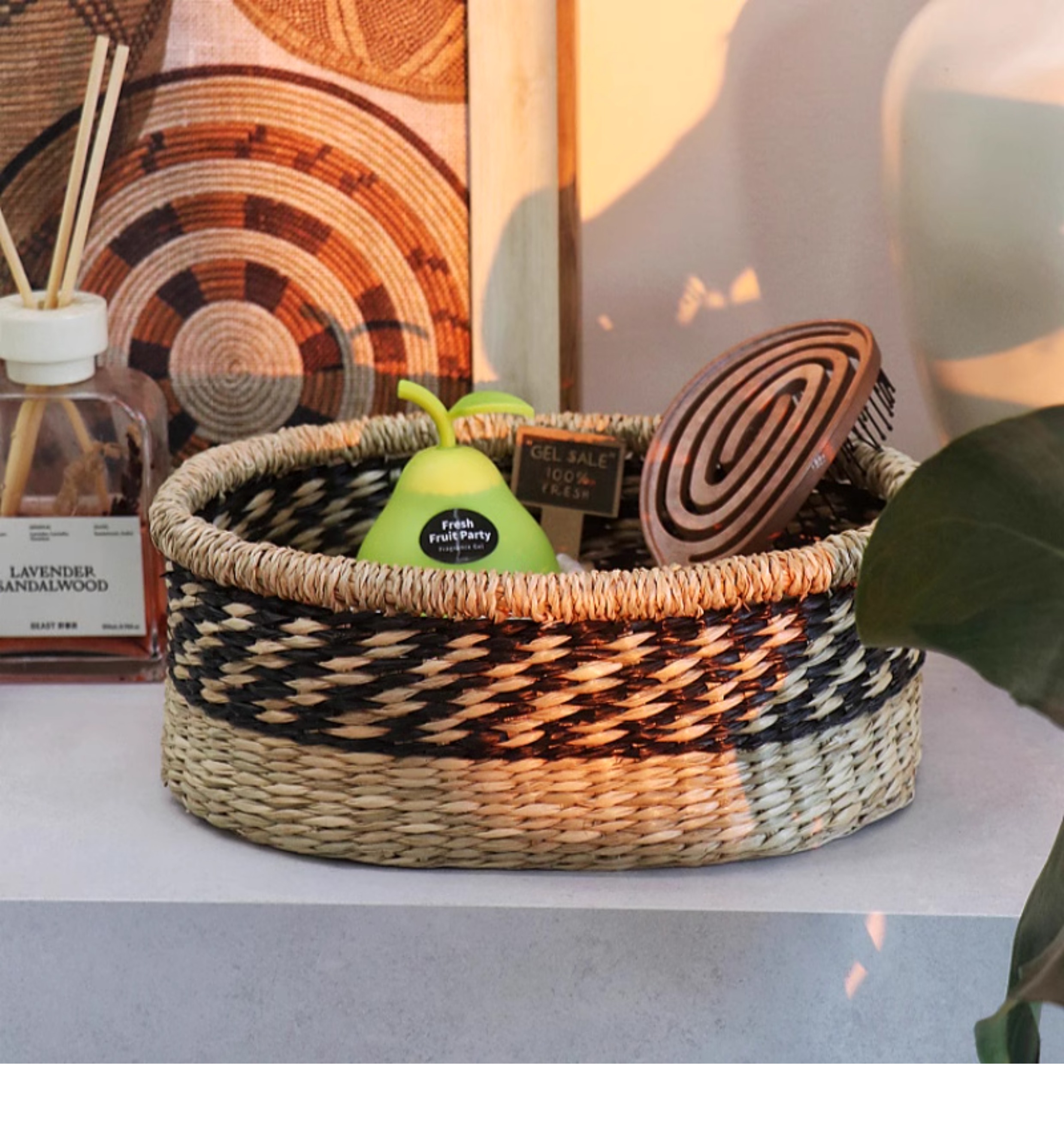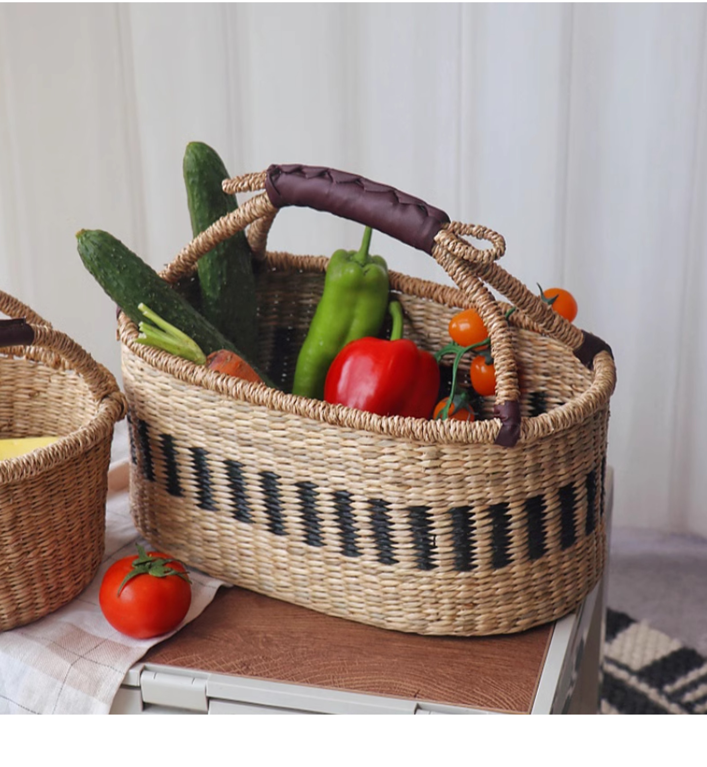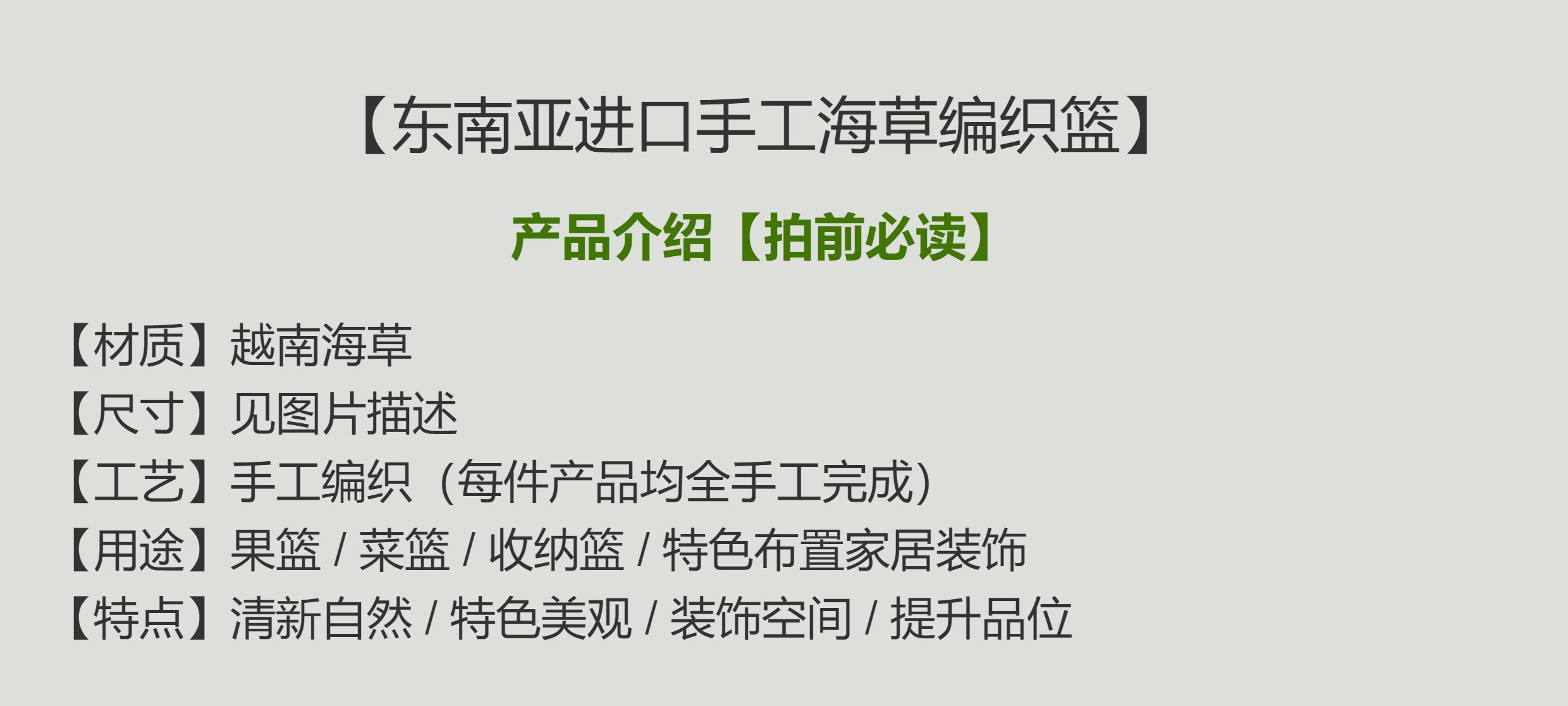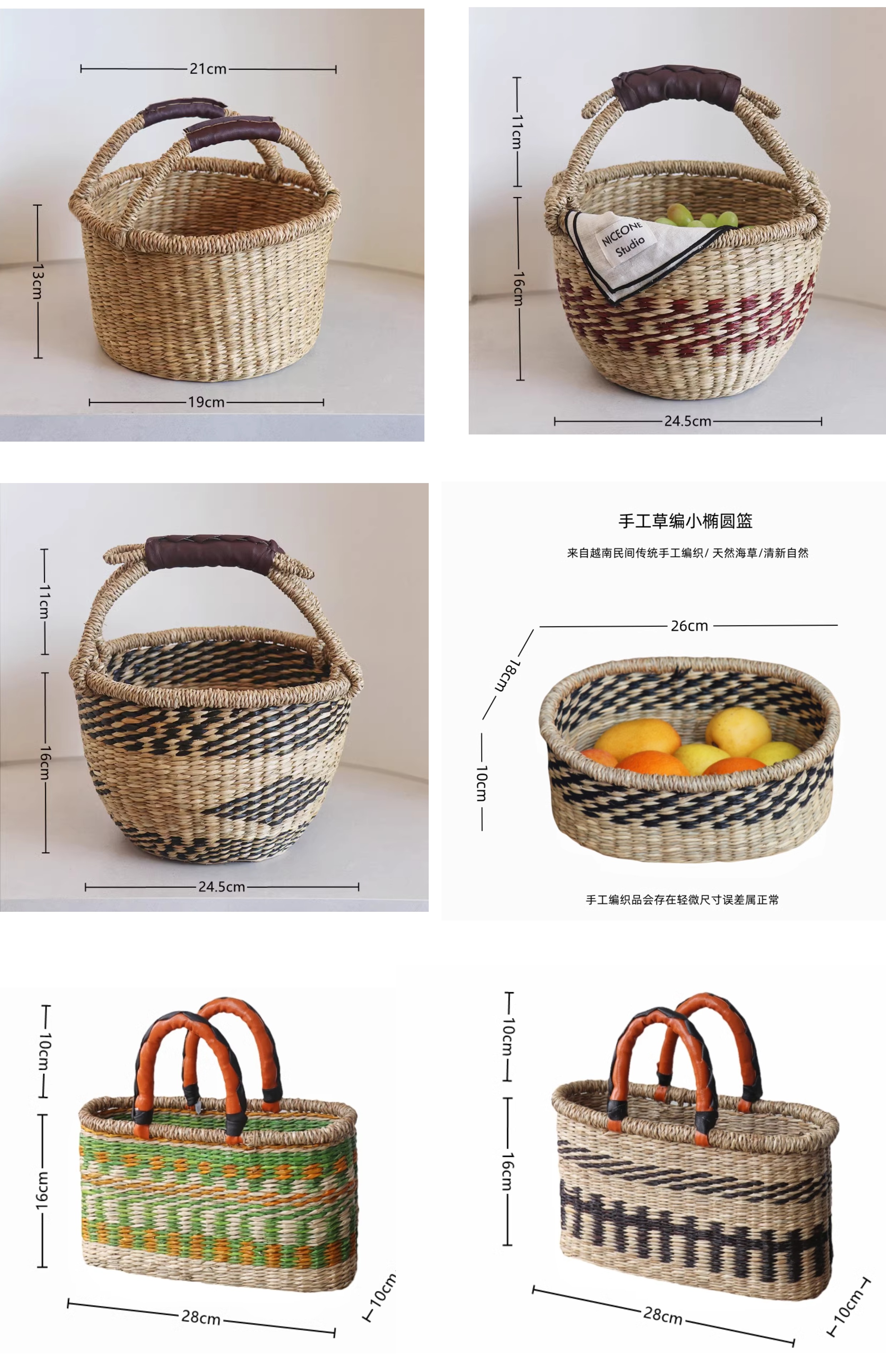 ins风海草手工编织篮越南进口家居浴室日用品收纳篮水果菜篮野餐