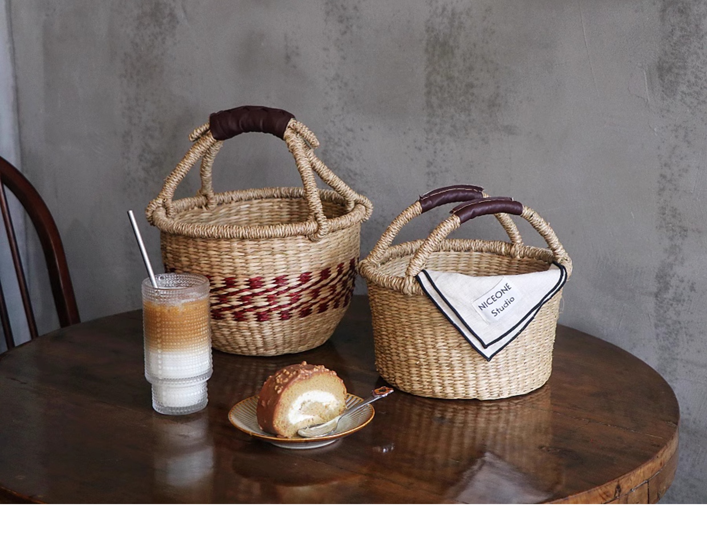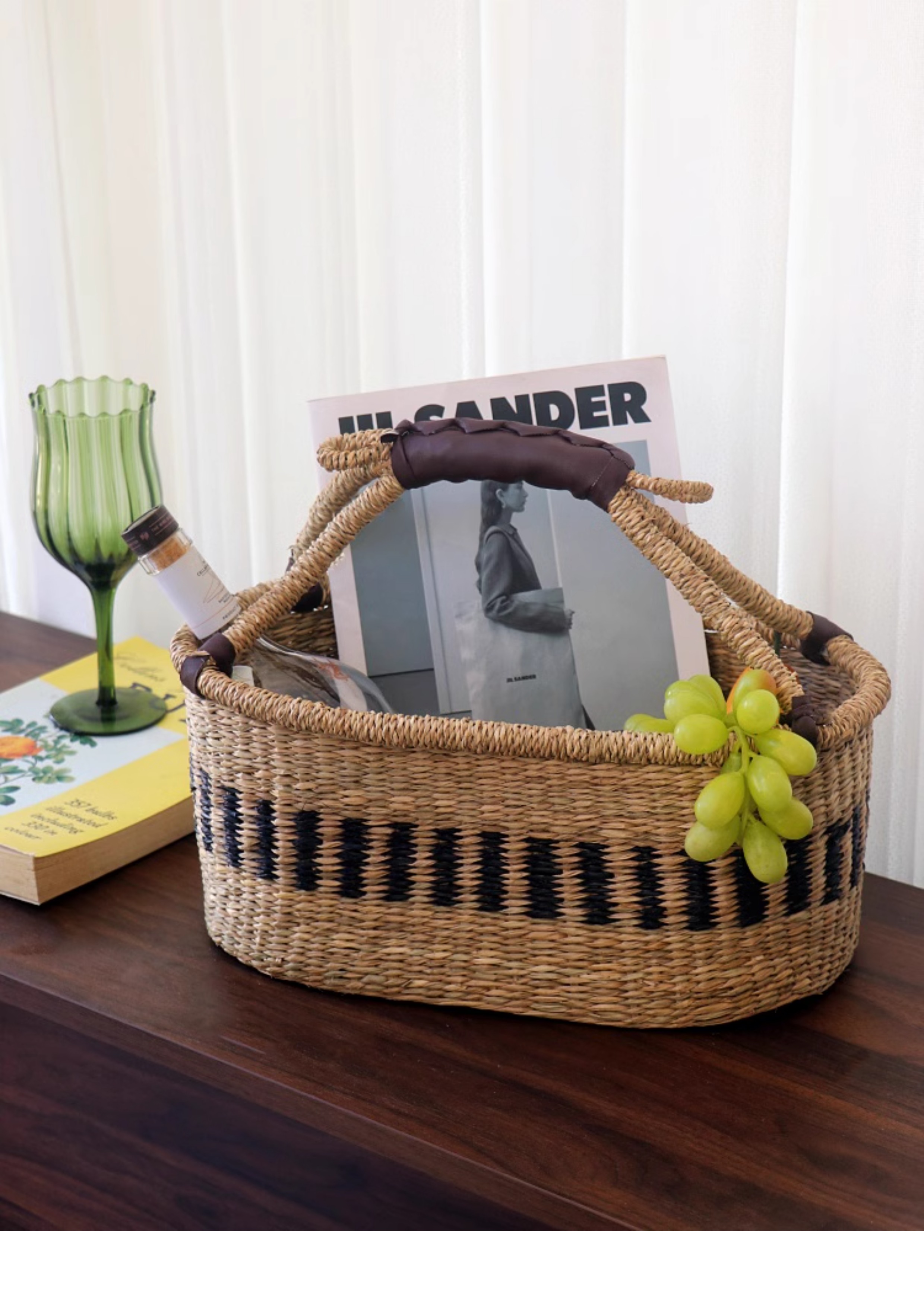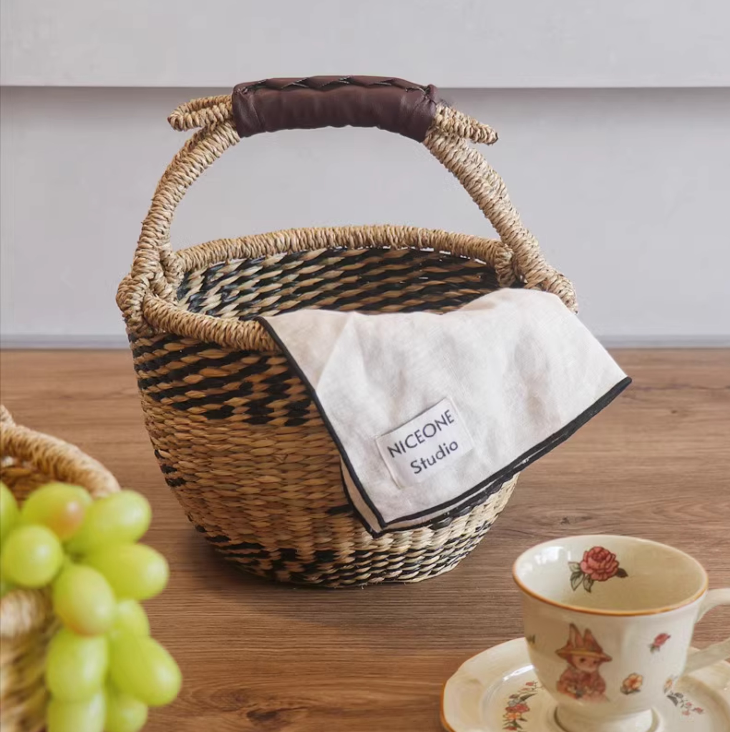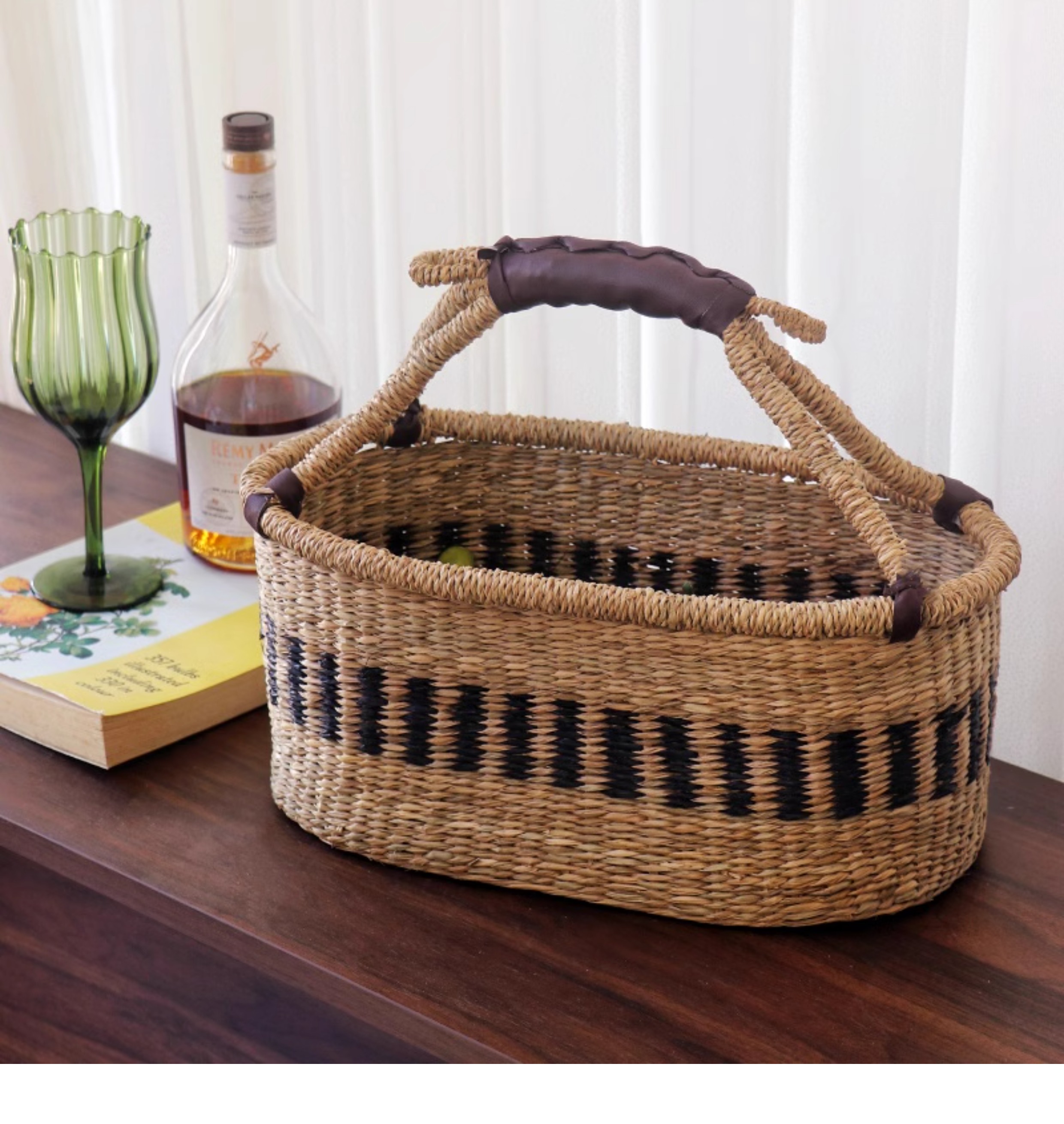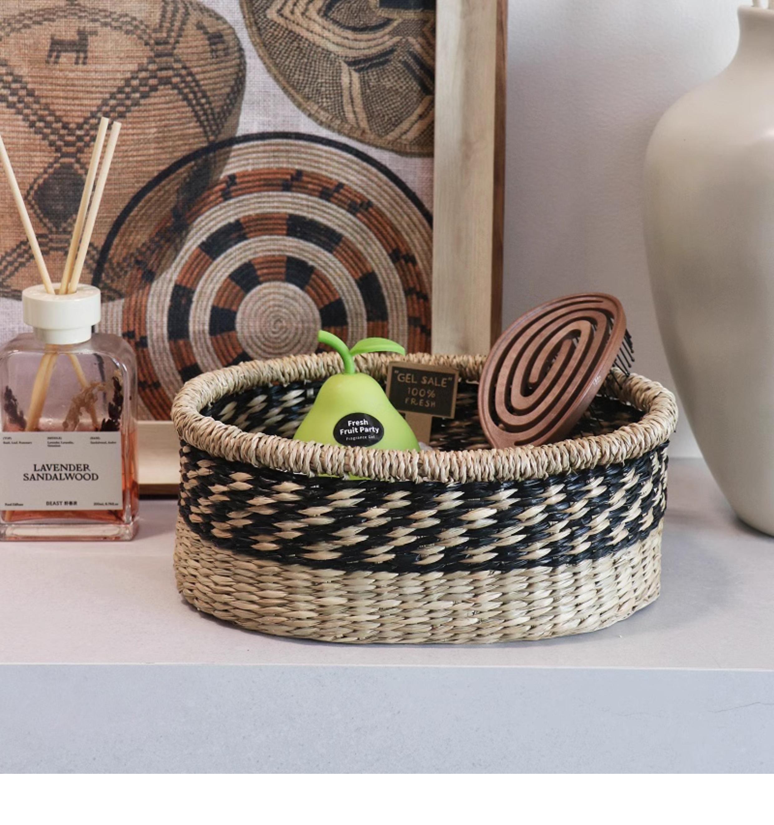 ins风海草手工编织篮越南进口家居浴室日用品收纳篮水果菜篮野餐