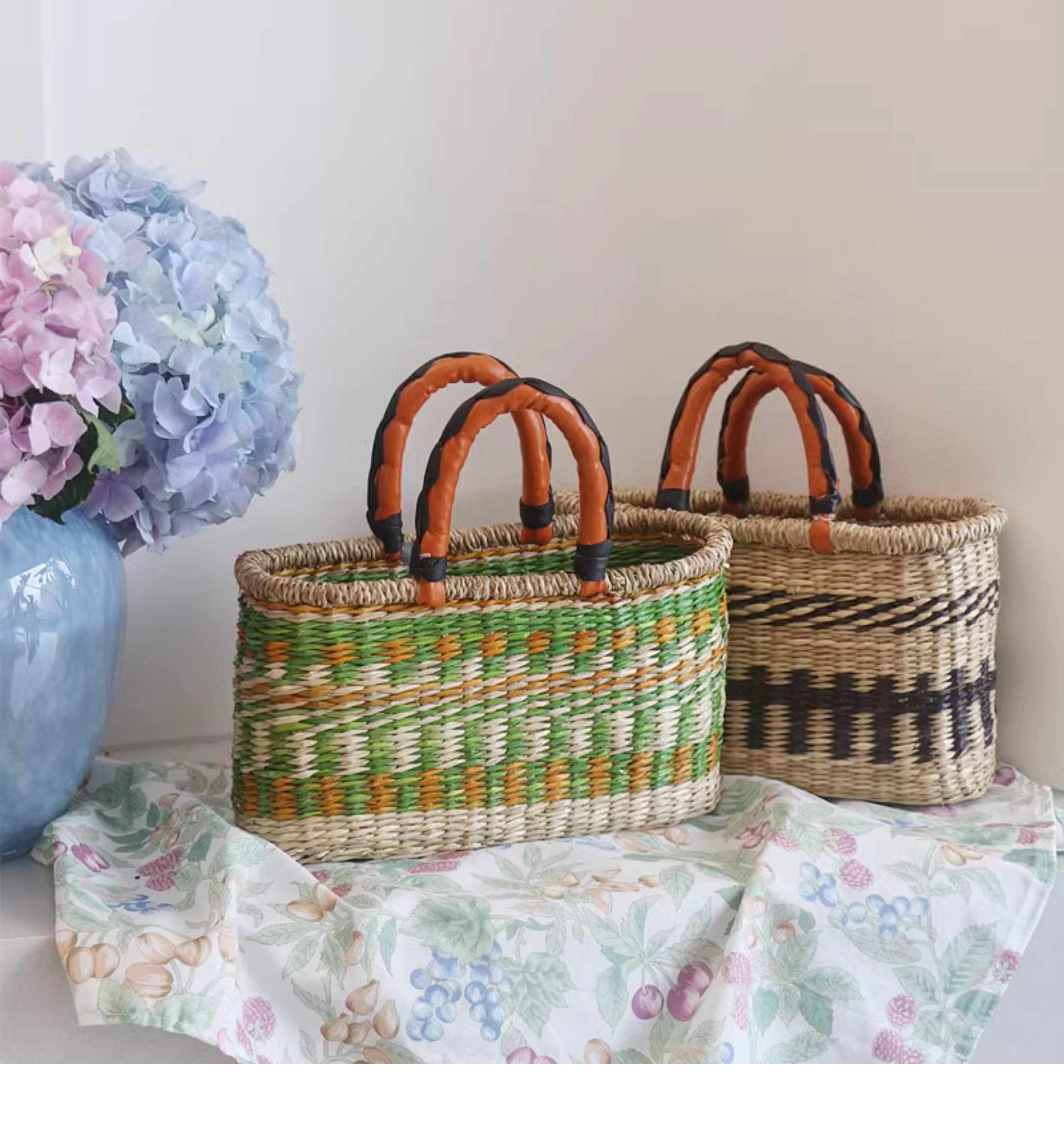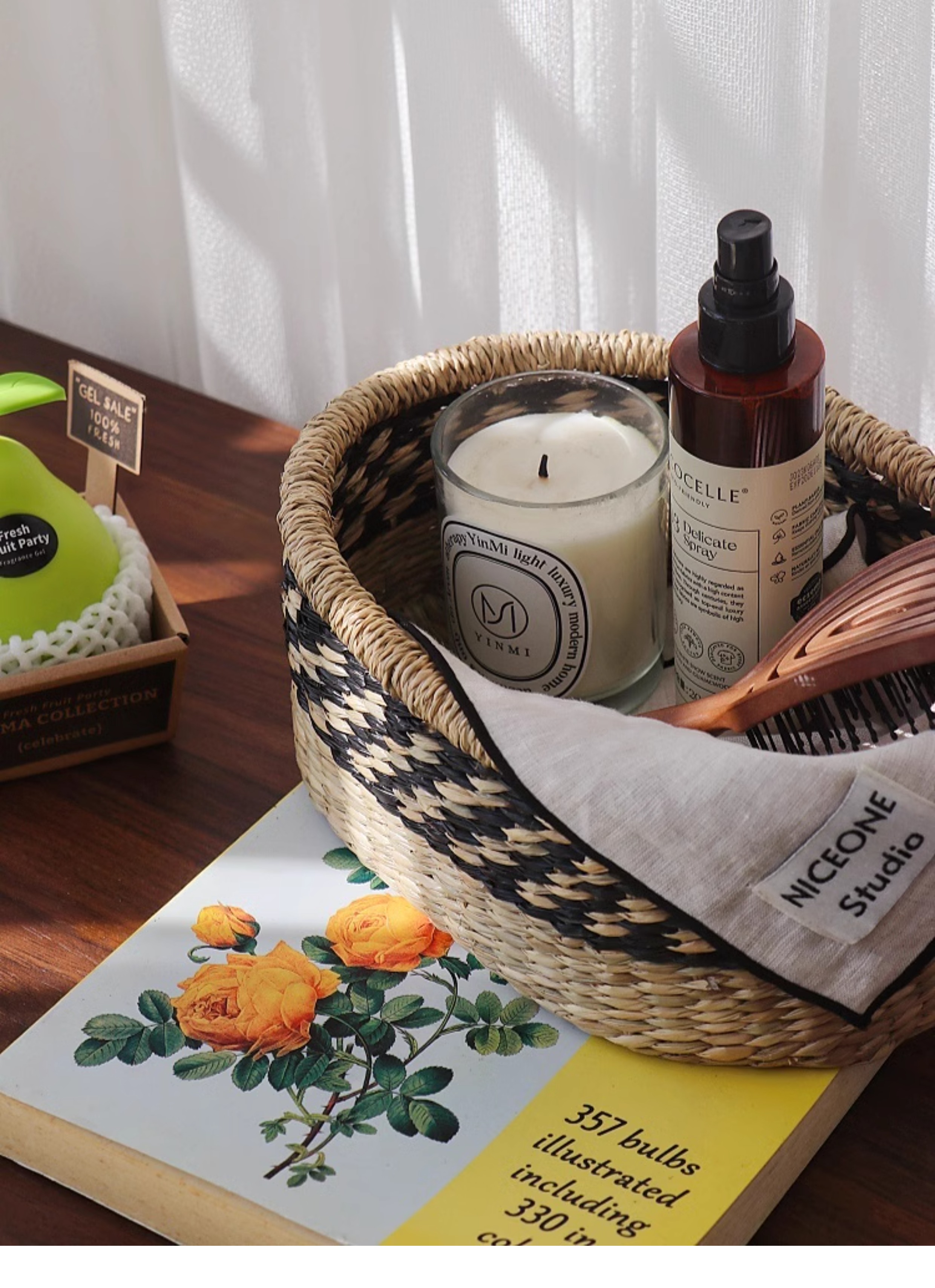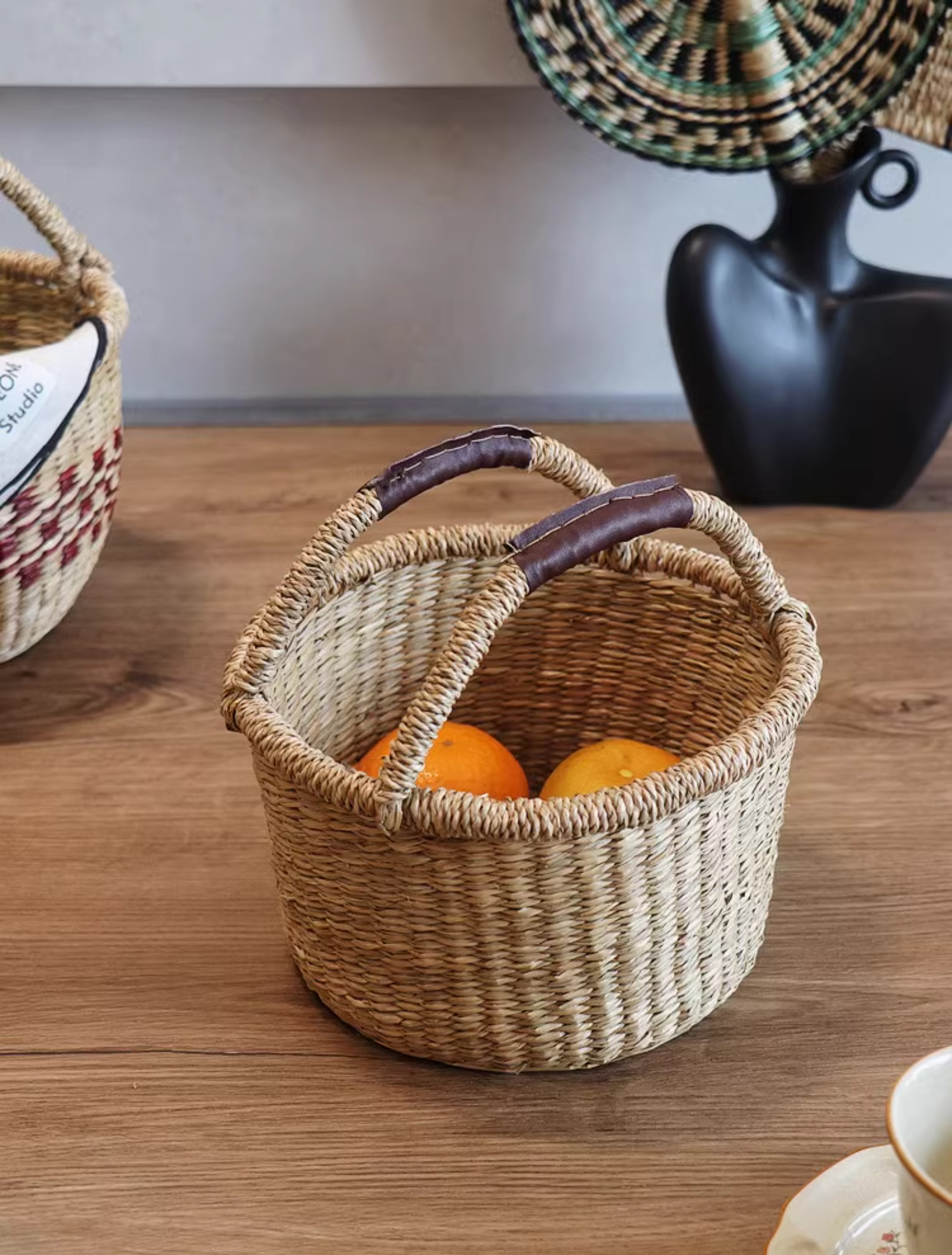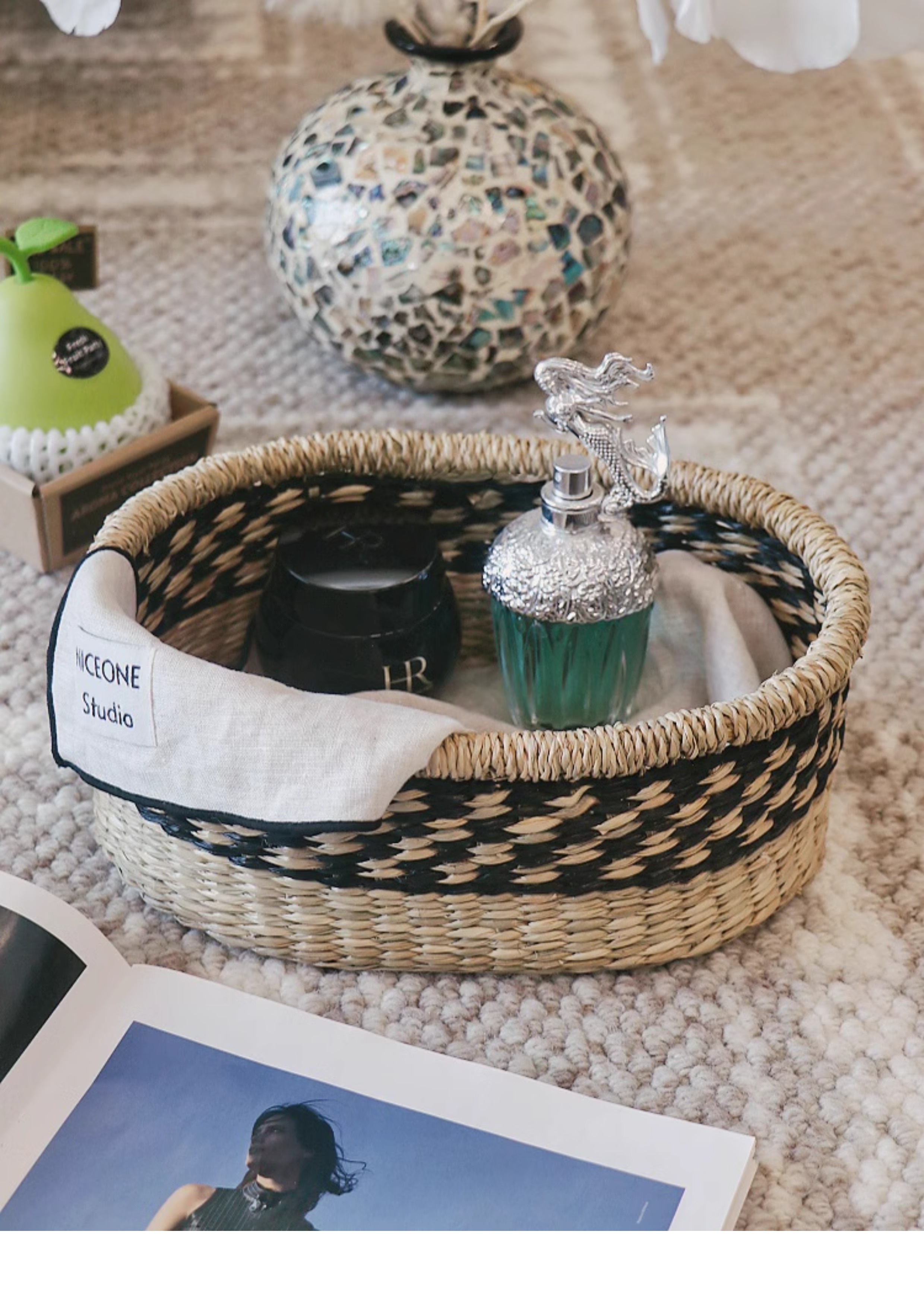 ins风海草手工编织篮越南进口家居浴室日用品收纳篮水果菜篮野餐