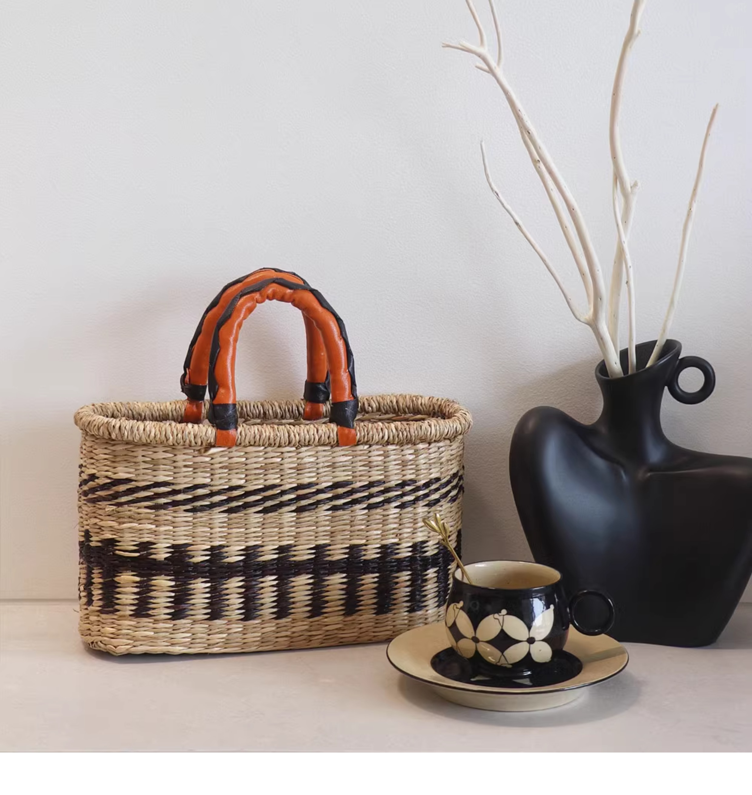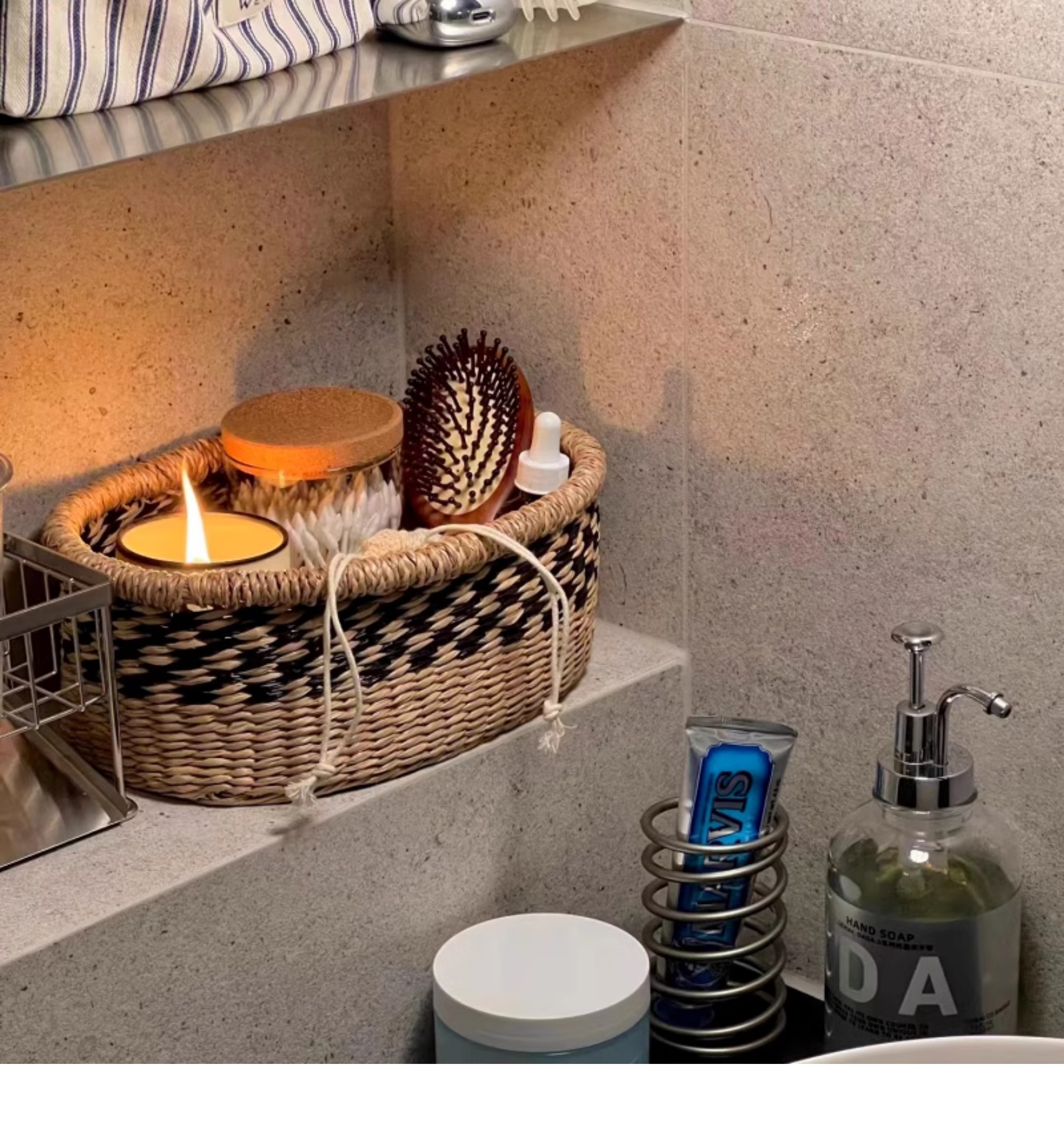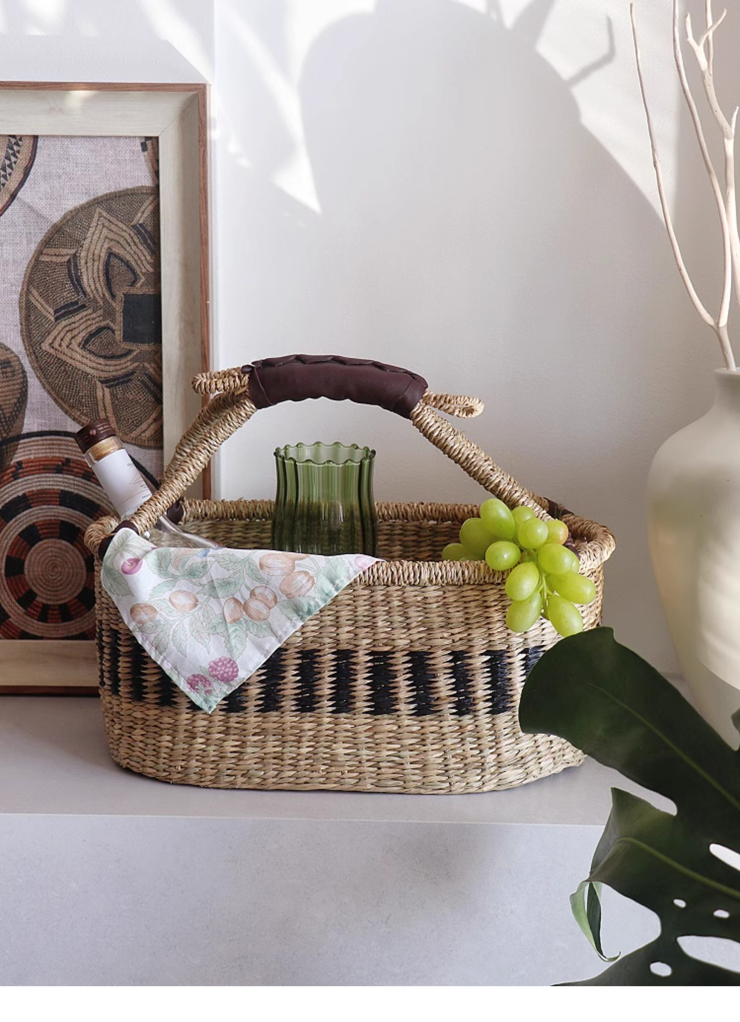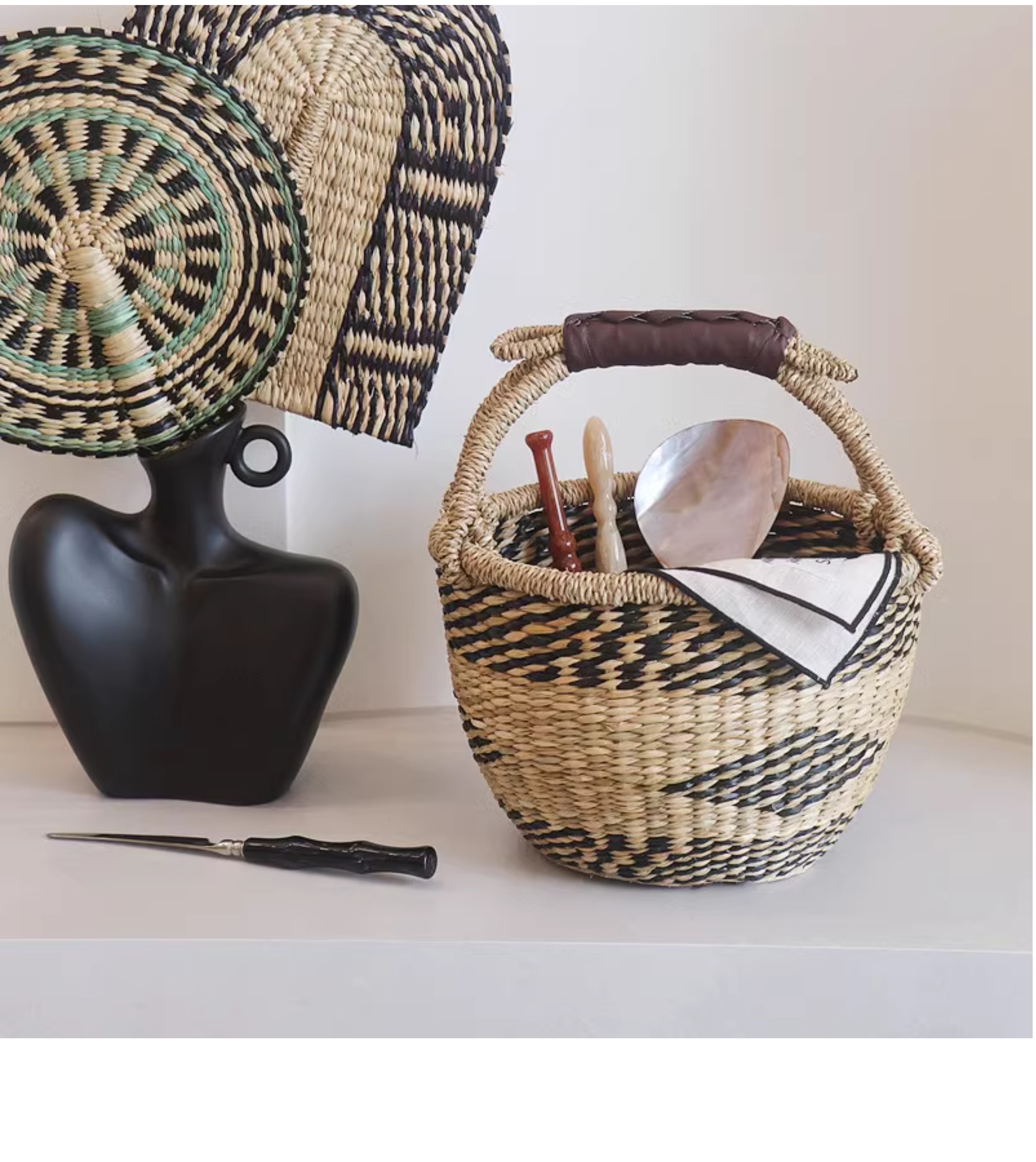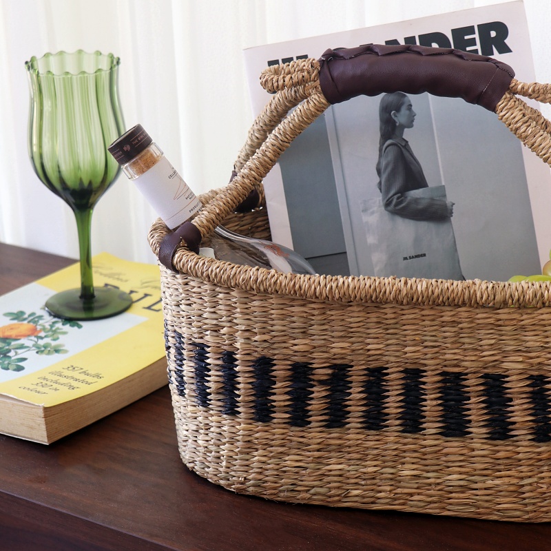 ins风海草手工编织篮越南进口家居浴室日用品收纳篮水果菜篮野餐