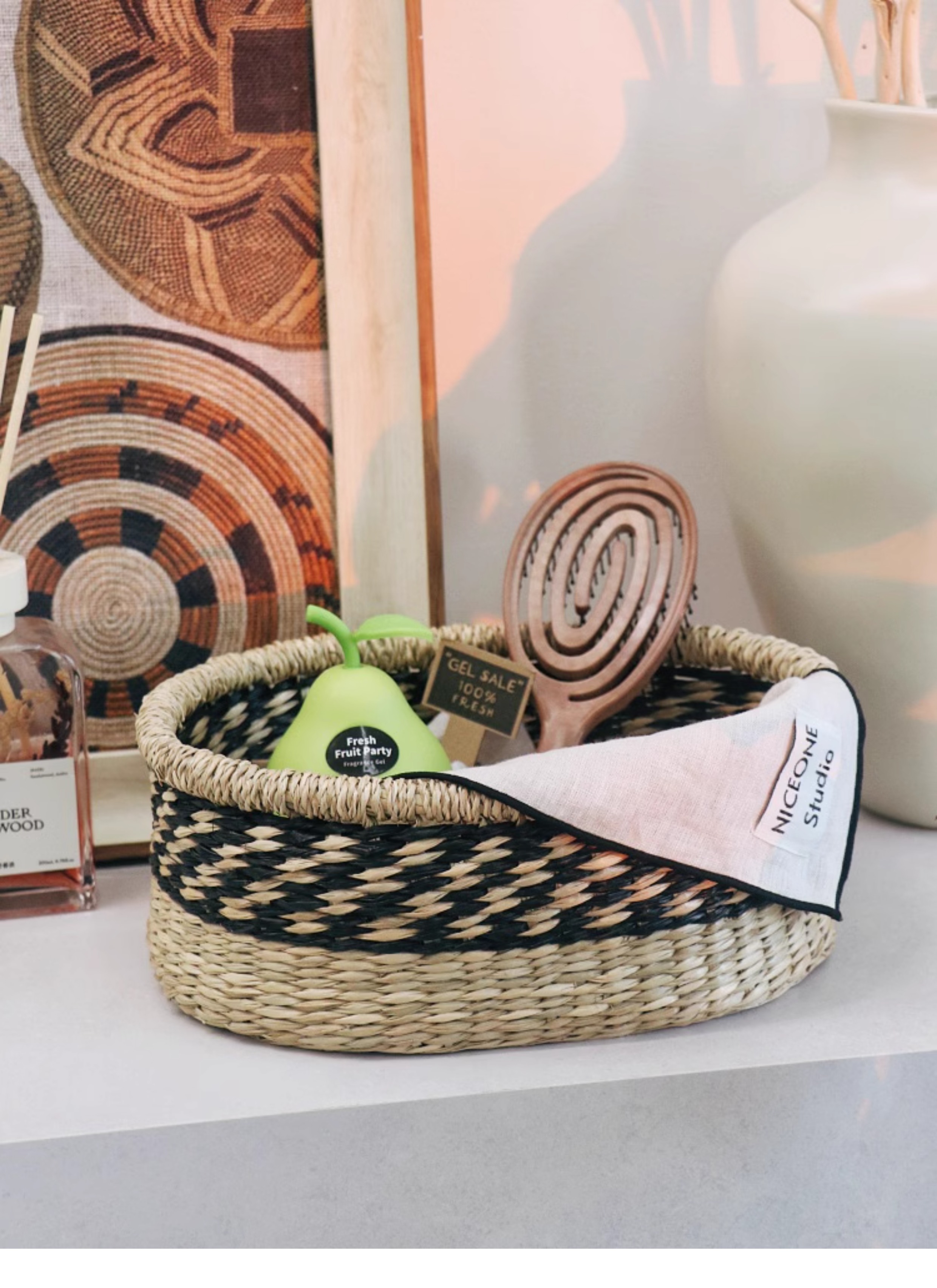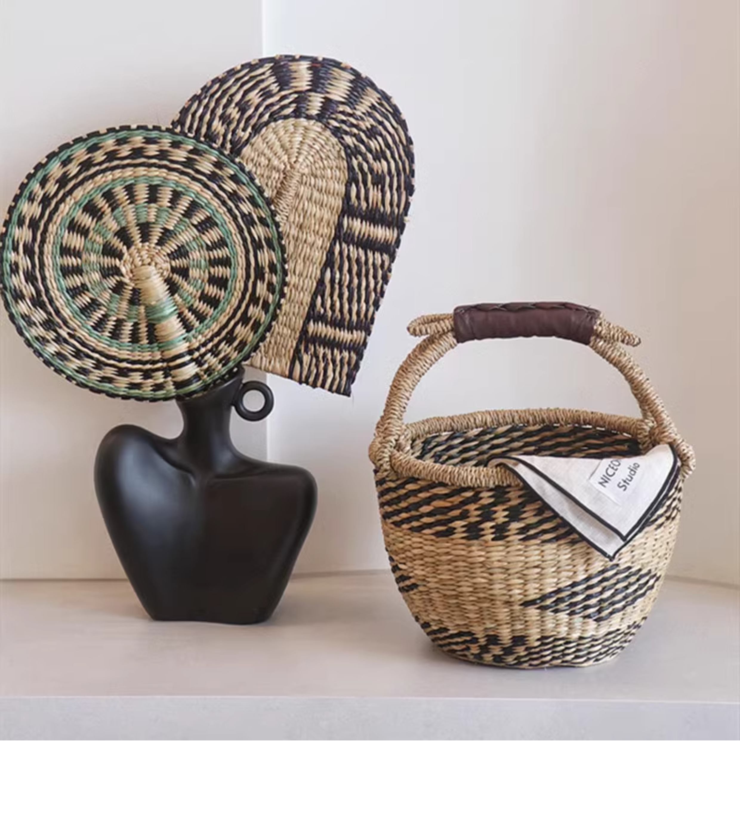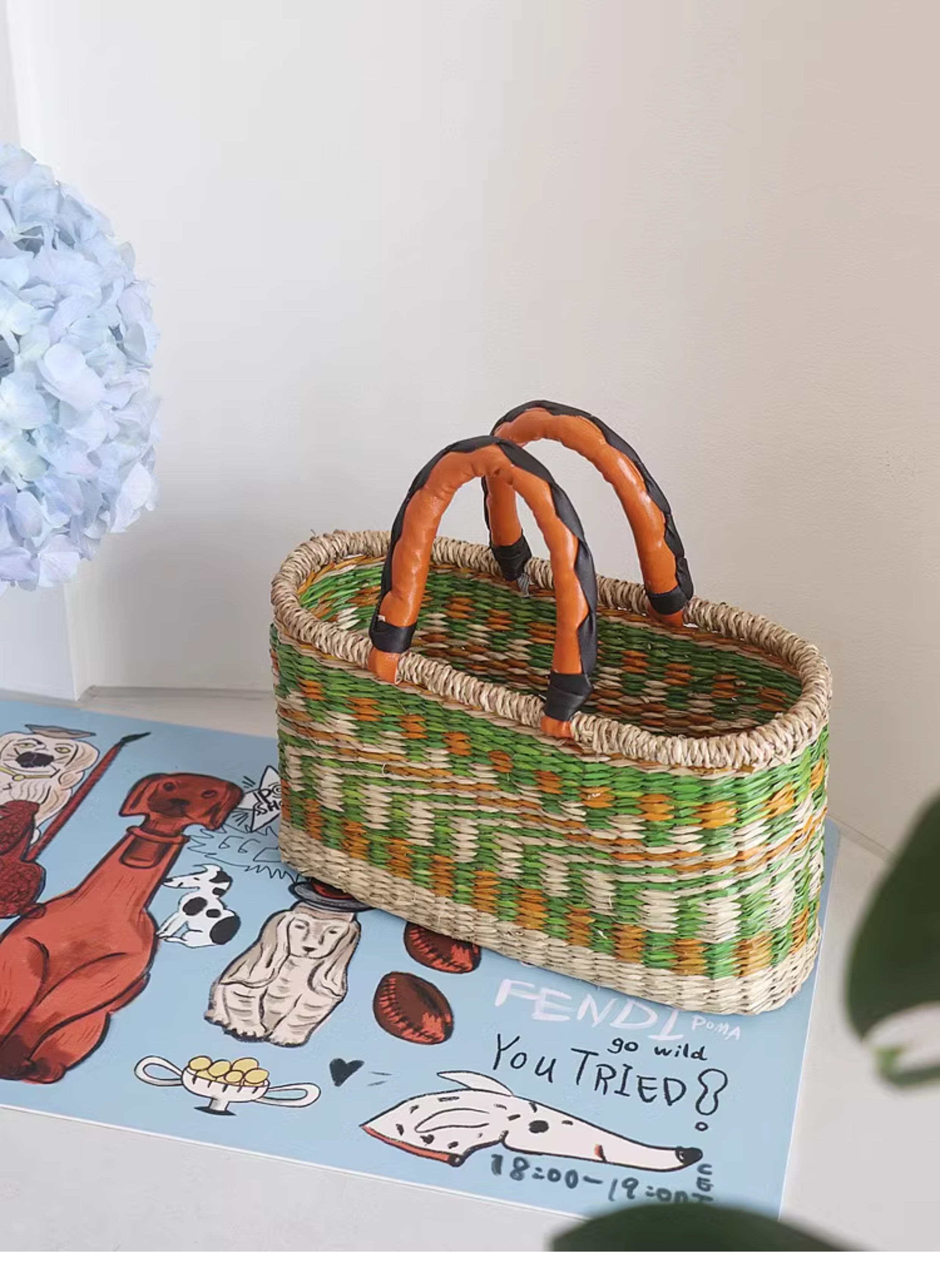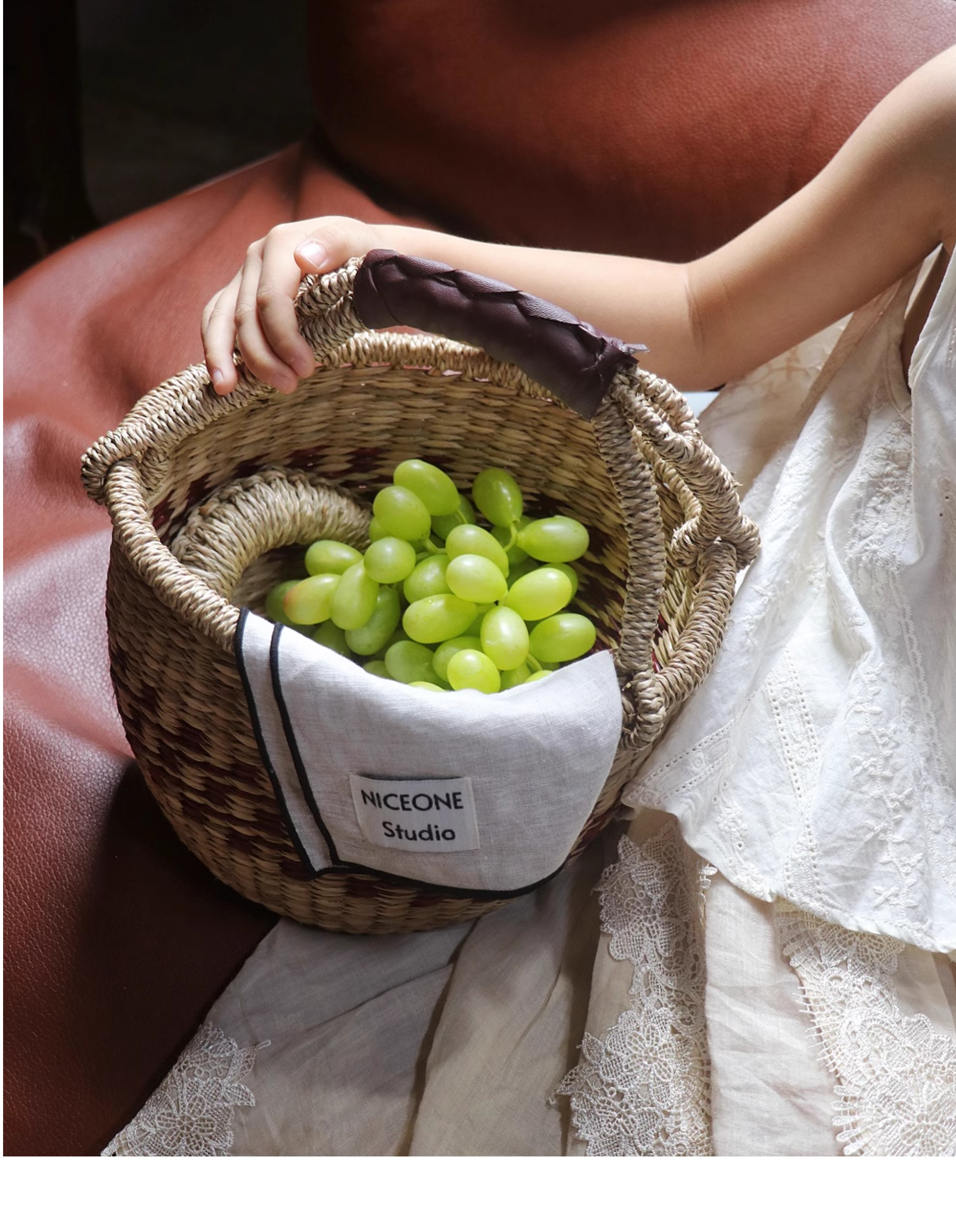 ins风海草手工编织篮越南进口家居浴室日用品收纳篮水果菜篮野餐