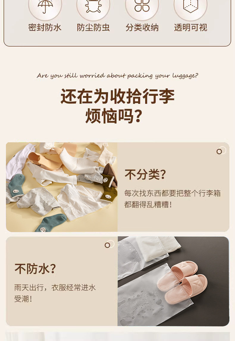 旅行收纳袋内衣内裤分装婴儿衣物密封袋防水旅游行李箱衣服整理包