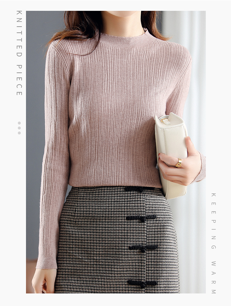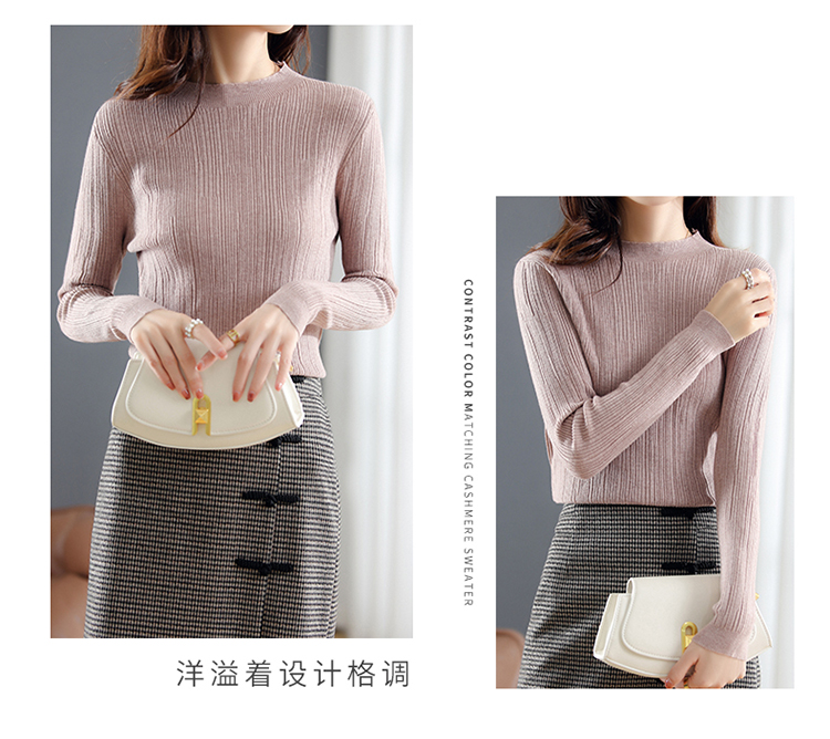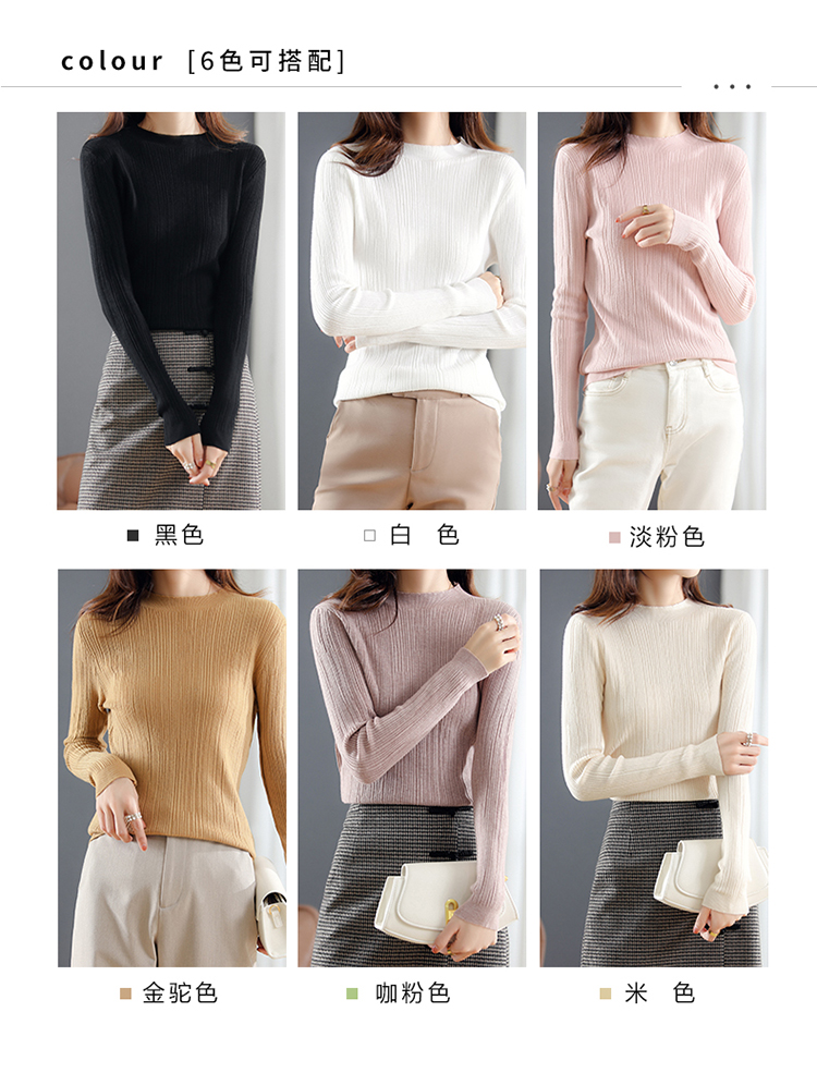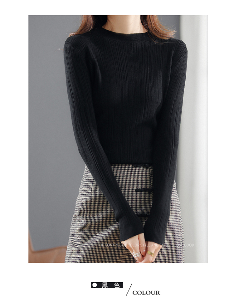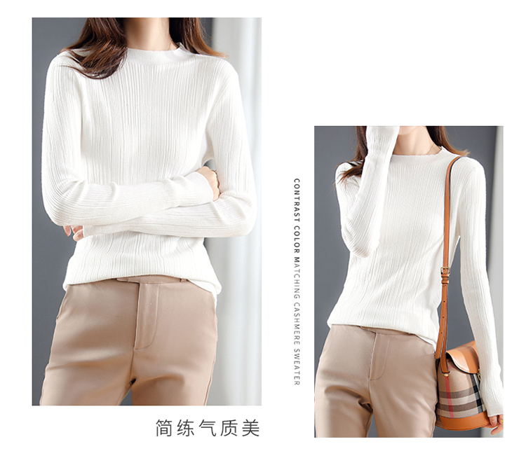 2024秋季新款女圆领针织衫宽松打底衫长袖羊毛衫细纹毛衣甜美韩版