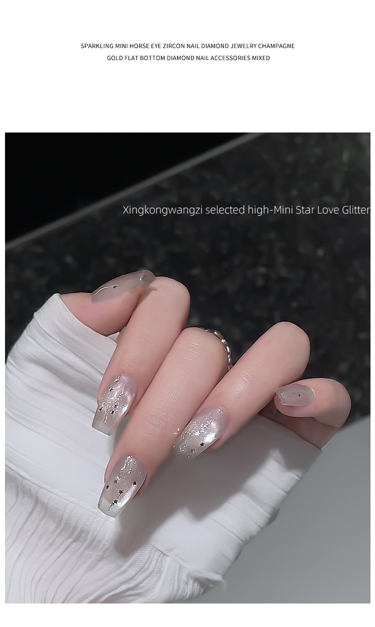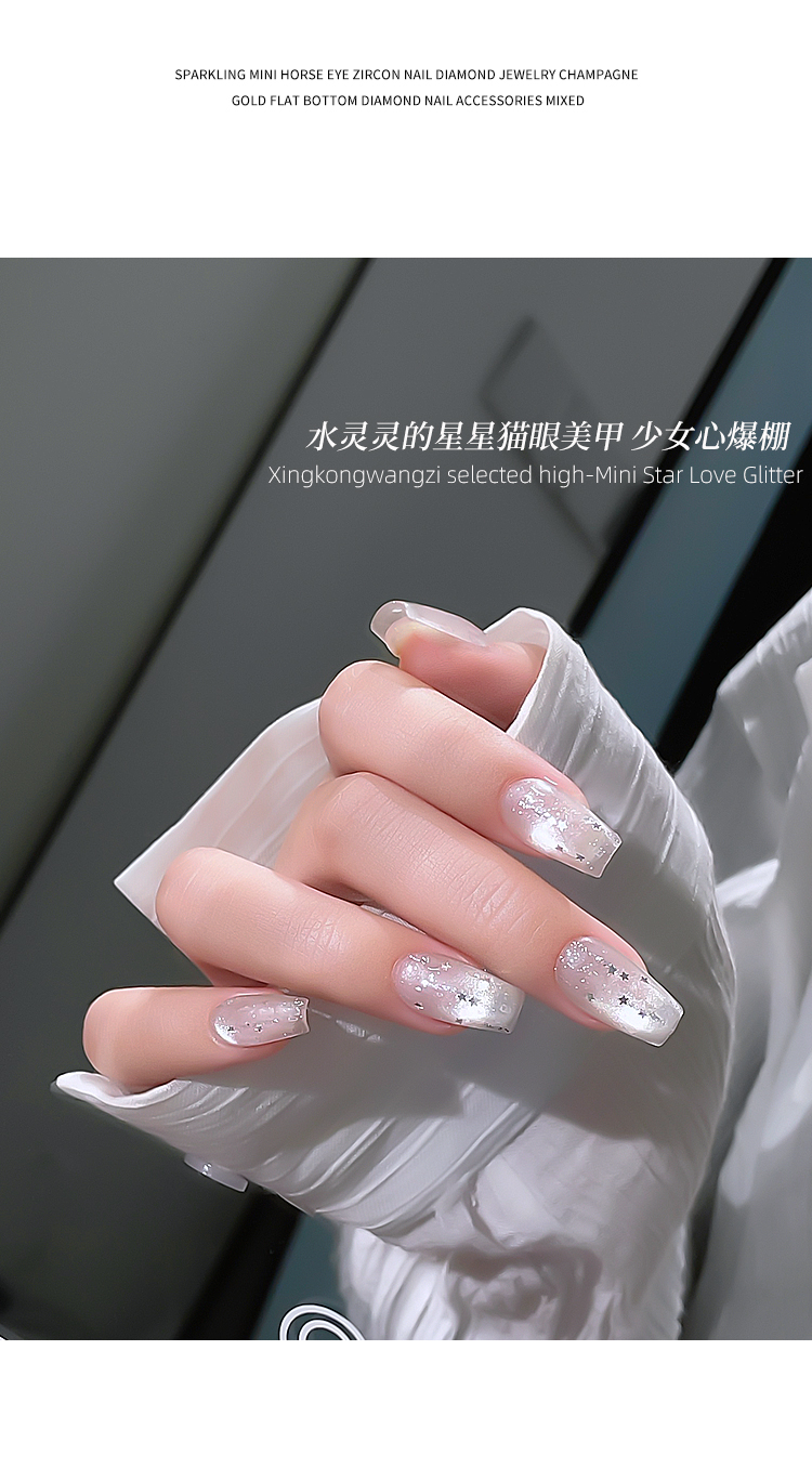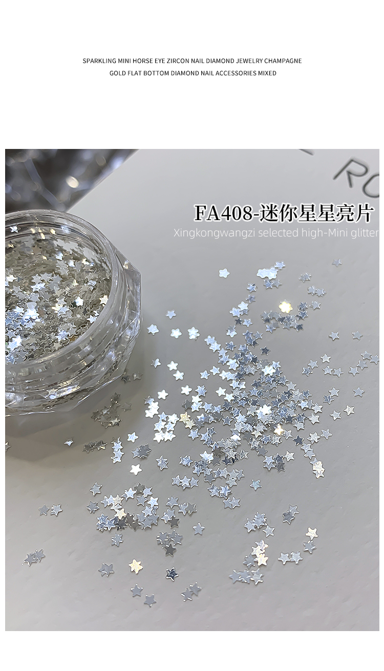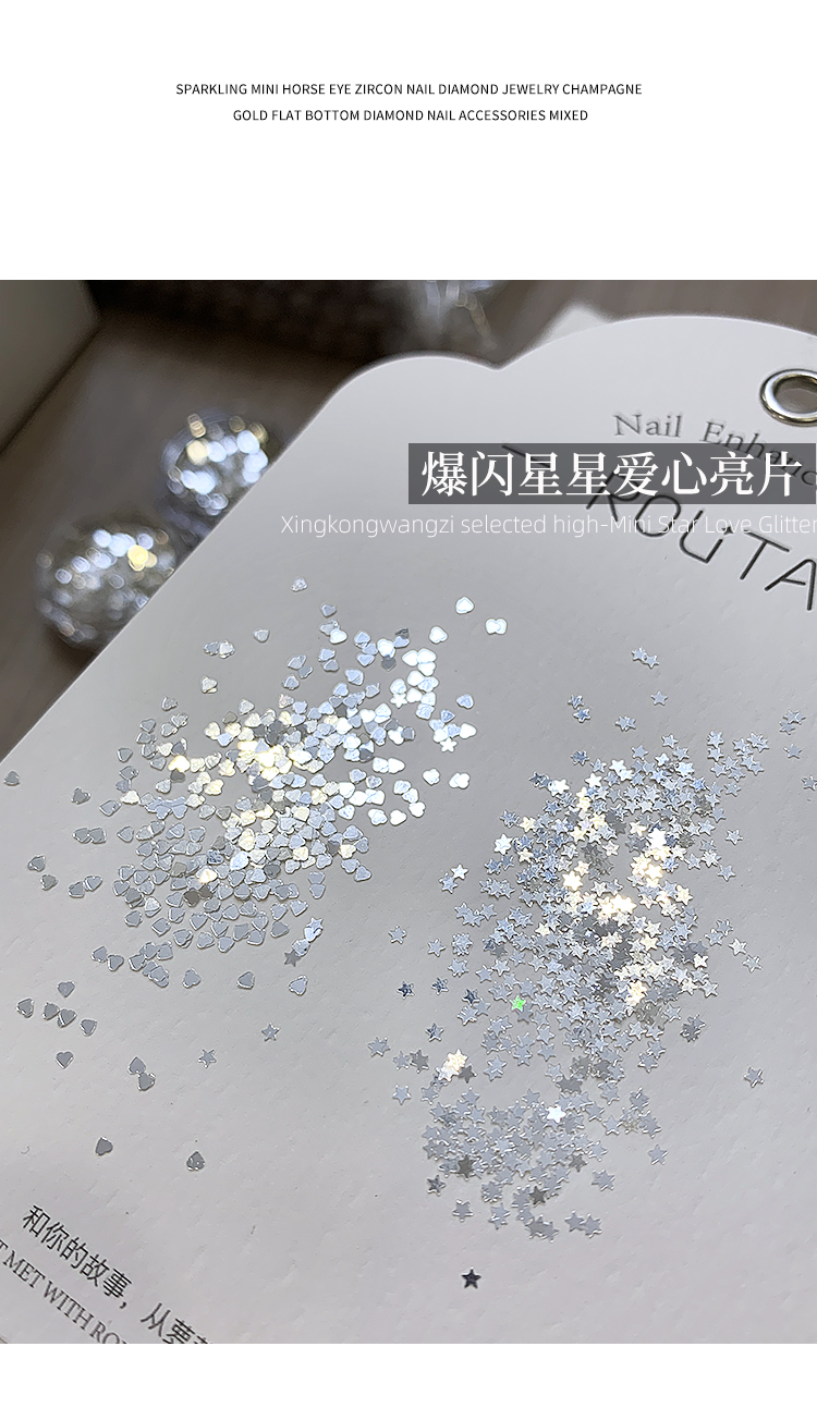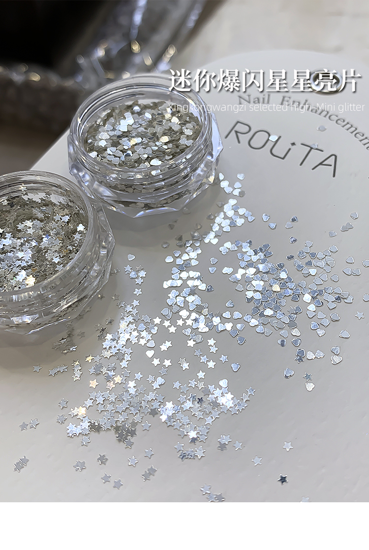 网红迷你爆闪爱心星星亮片美甲饰品2025新款银白色亮片指甲装饰品