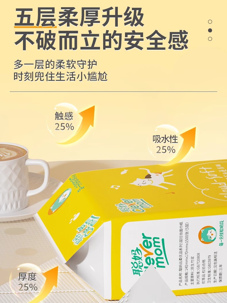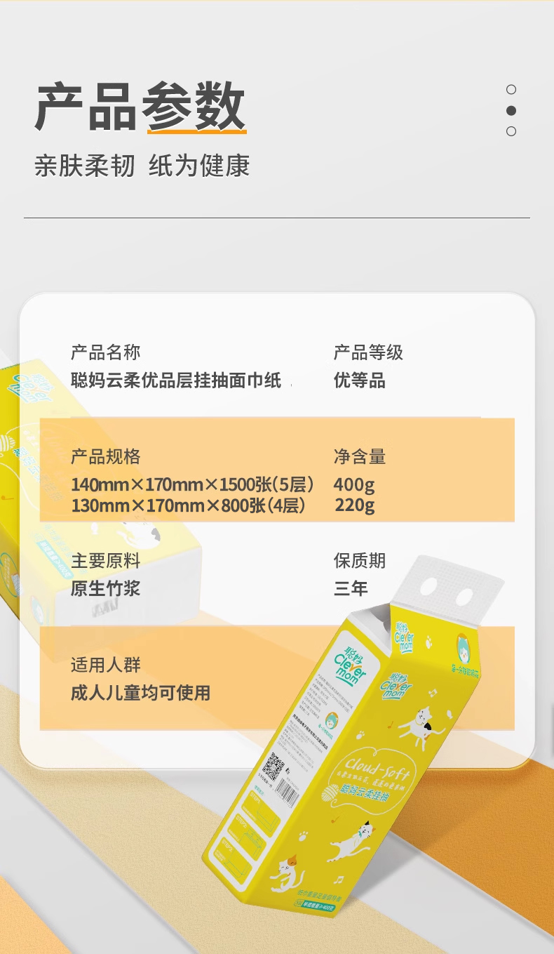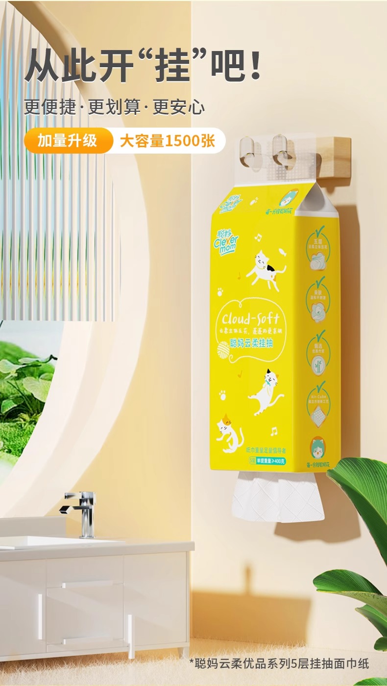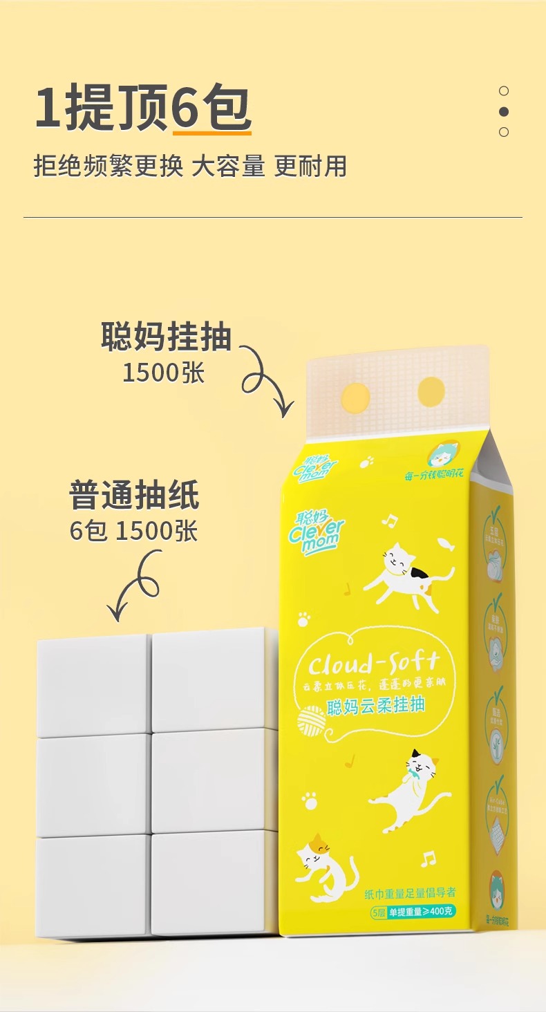 聪妈悬挂式抽纸巾1500张家用实惠装厕所卫生纸学生宿舍大包擦手纸