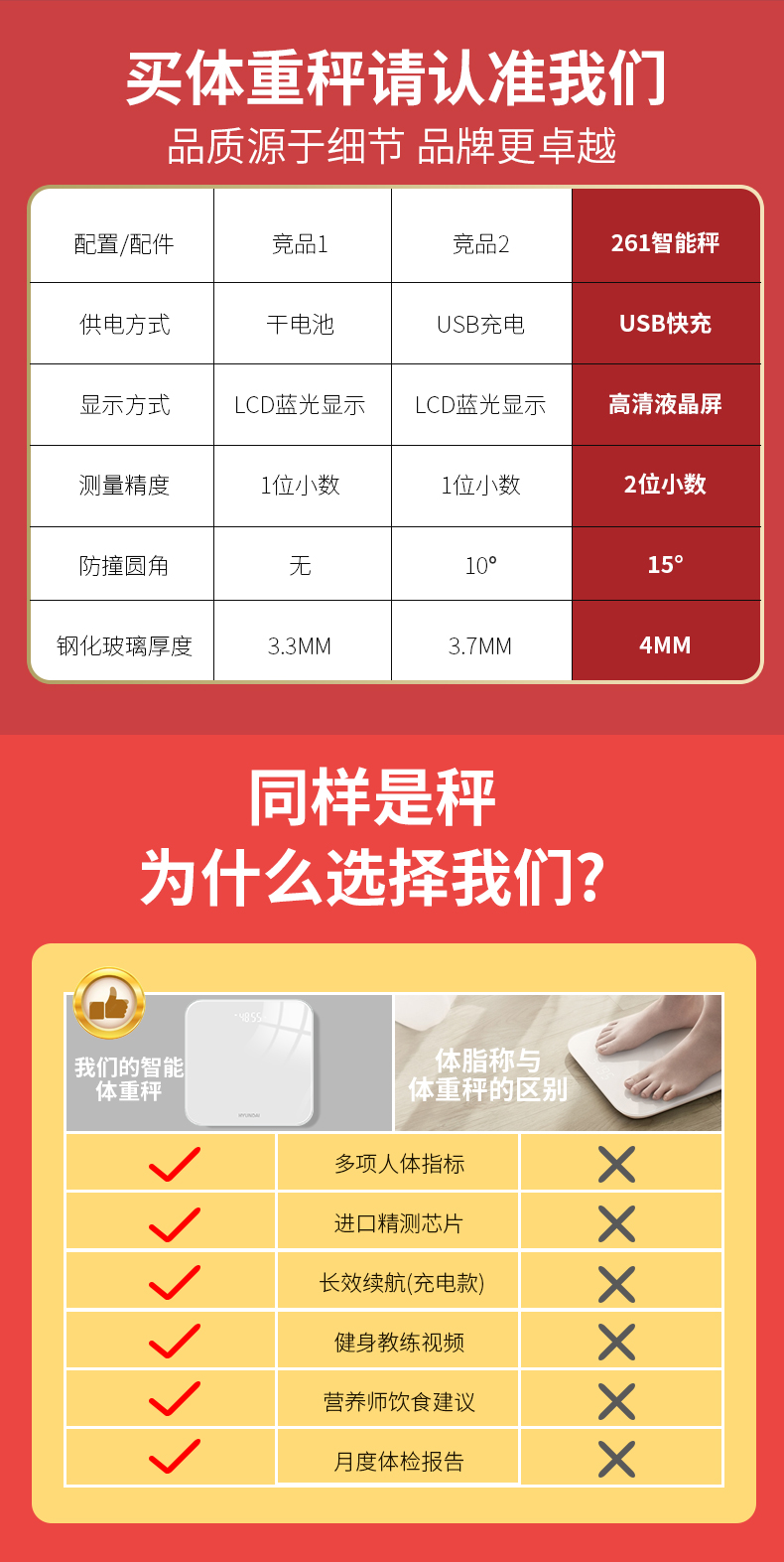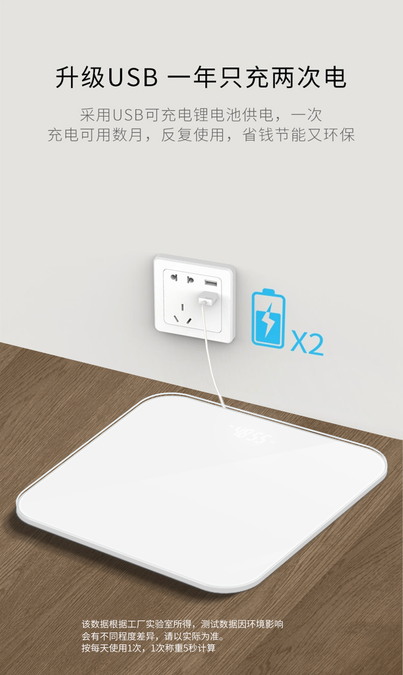 体重秤家用高精准度电子秤充电款小型智能体脂称电池减肥人专用的体重称女生宿舍人体称重计新款可测脂肪