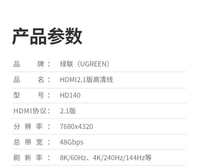 绿联hdmi高清线2.1连接线8K投影仪电脑屏240hz电视机加长数据视频
