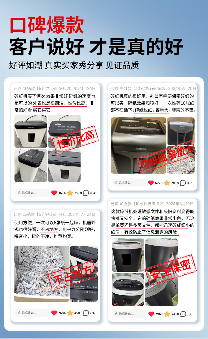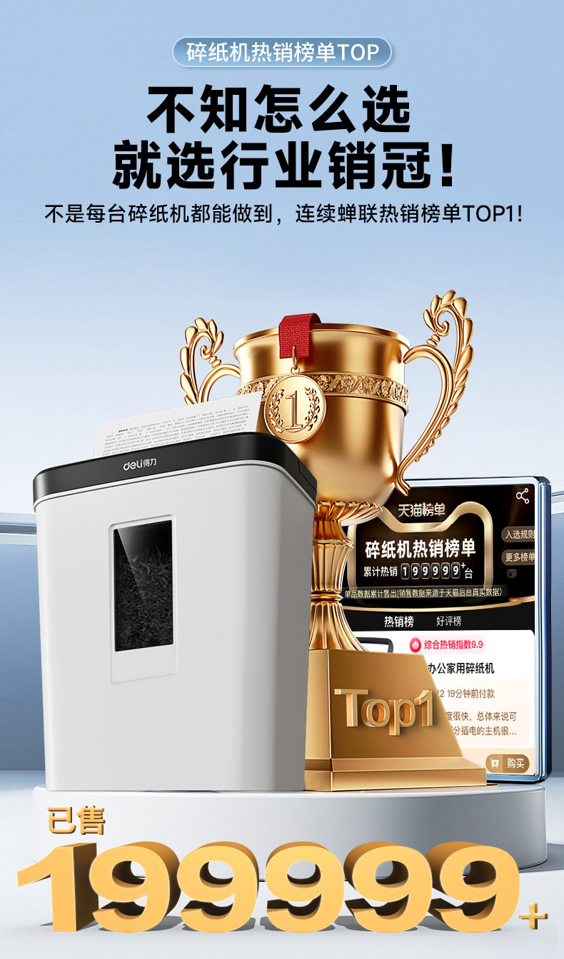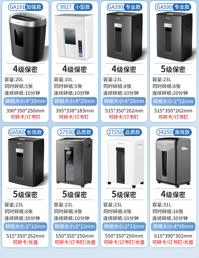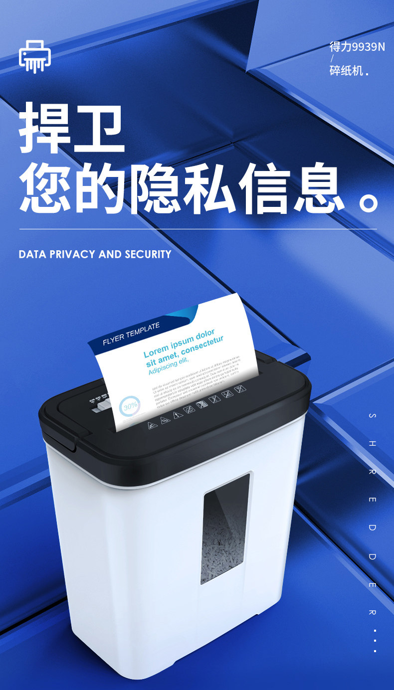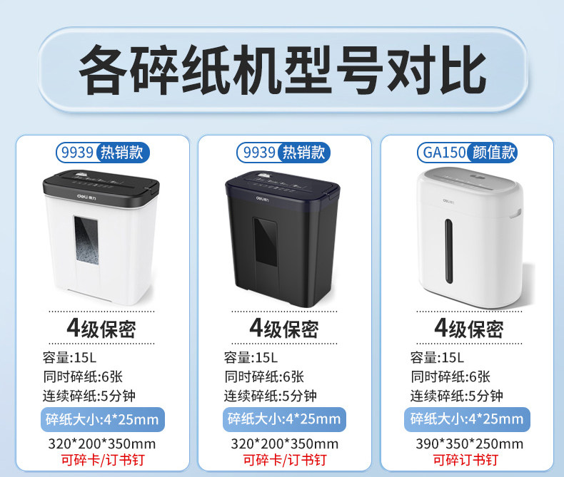 得力9939碎纸机办公室专用自动家用颗粒状电动大功率商用桌面纸张文件迷你小型粉碎机5级保密碾碎机光盘卡