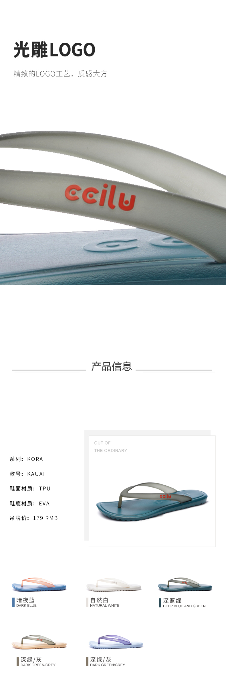 ccilu驰绿人字拖男士拖鞋防滑外穿软Q弹情侣沙滩夹脚凉鞋沉默岛屿