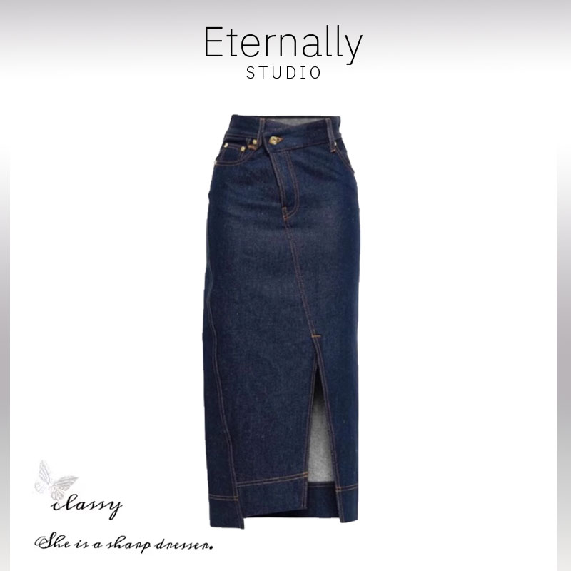 Eternally move牛仔半身裙女气质开叉小众高腰显瘦包臀裙
