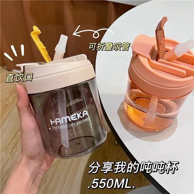 简约ins高颜值水杯带盖大容量吸管杯夏季情侣小巧便携塑料随手杯