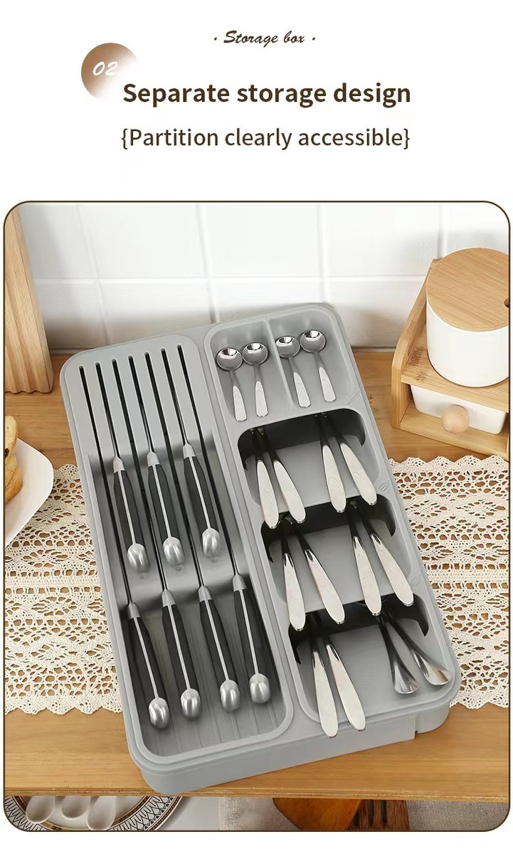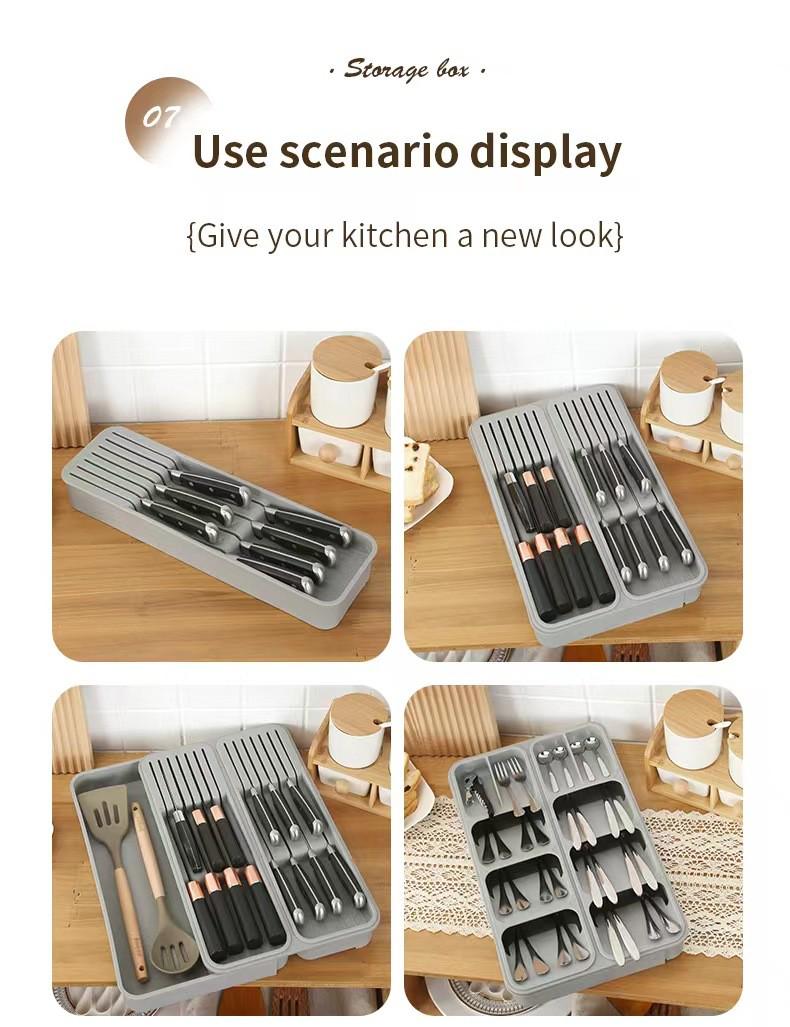 厨房可伸缩刀叉分格收纳盒可拆卸新款抽屉餐具整理器刀架二新款