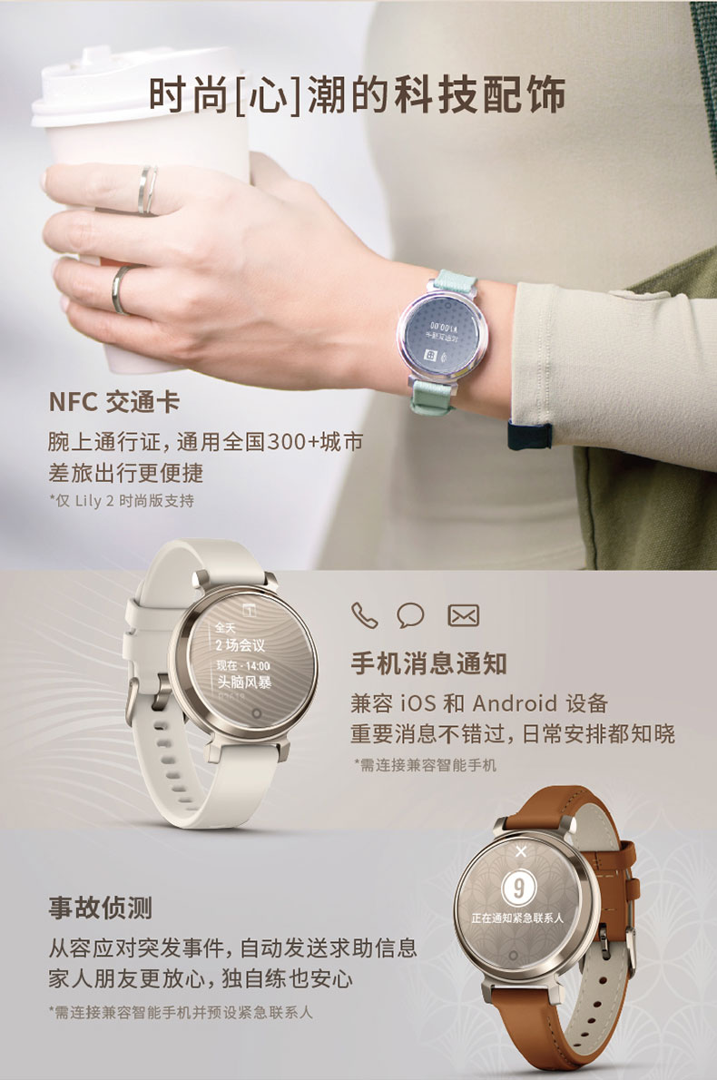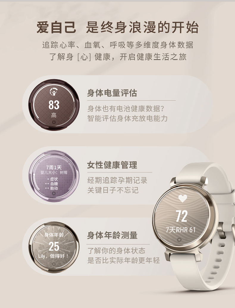 Garmin佳明Lily 2时尚轻奢心率睡眠健康多功能智能监测手表女款