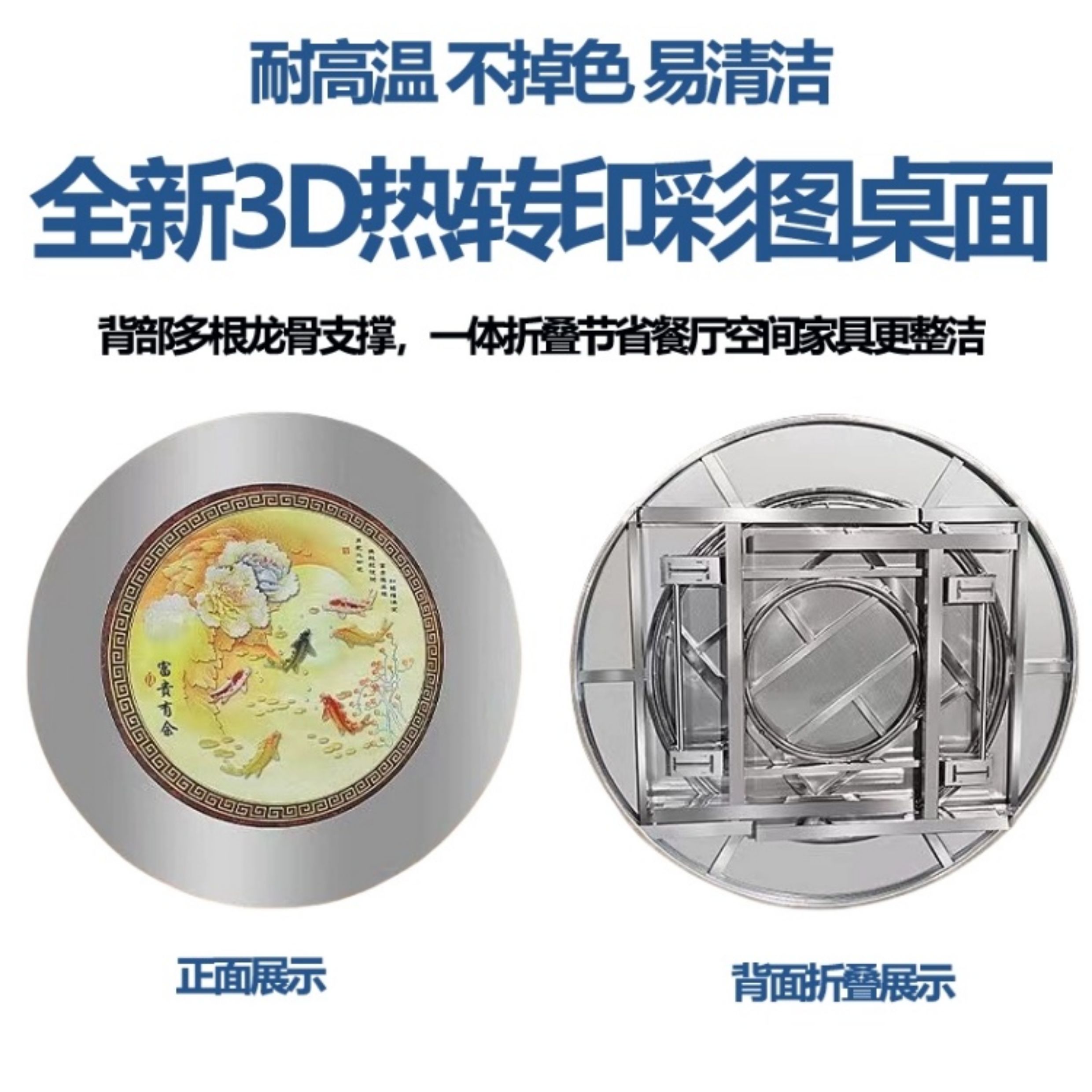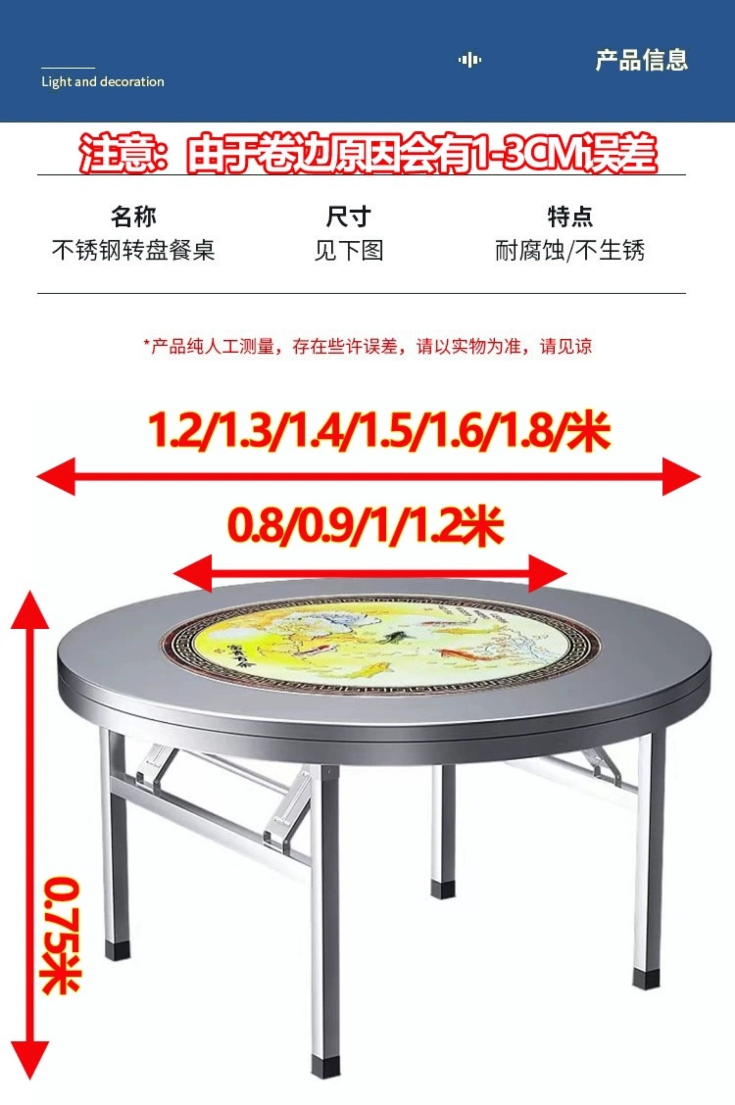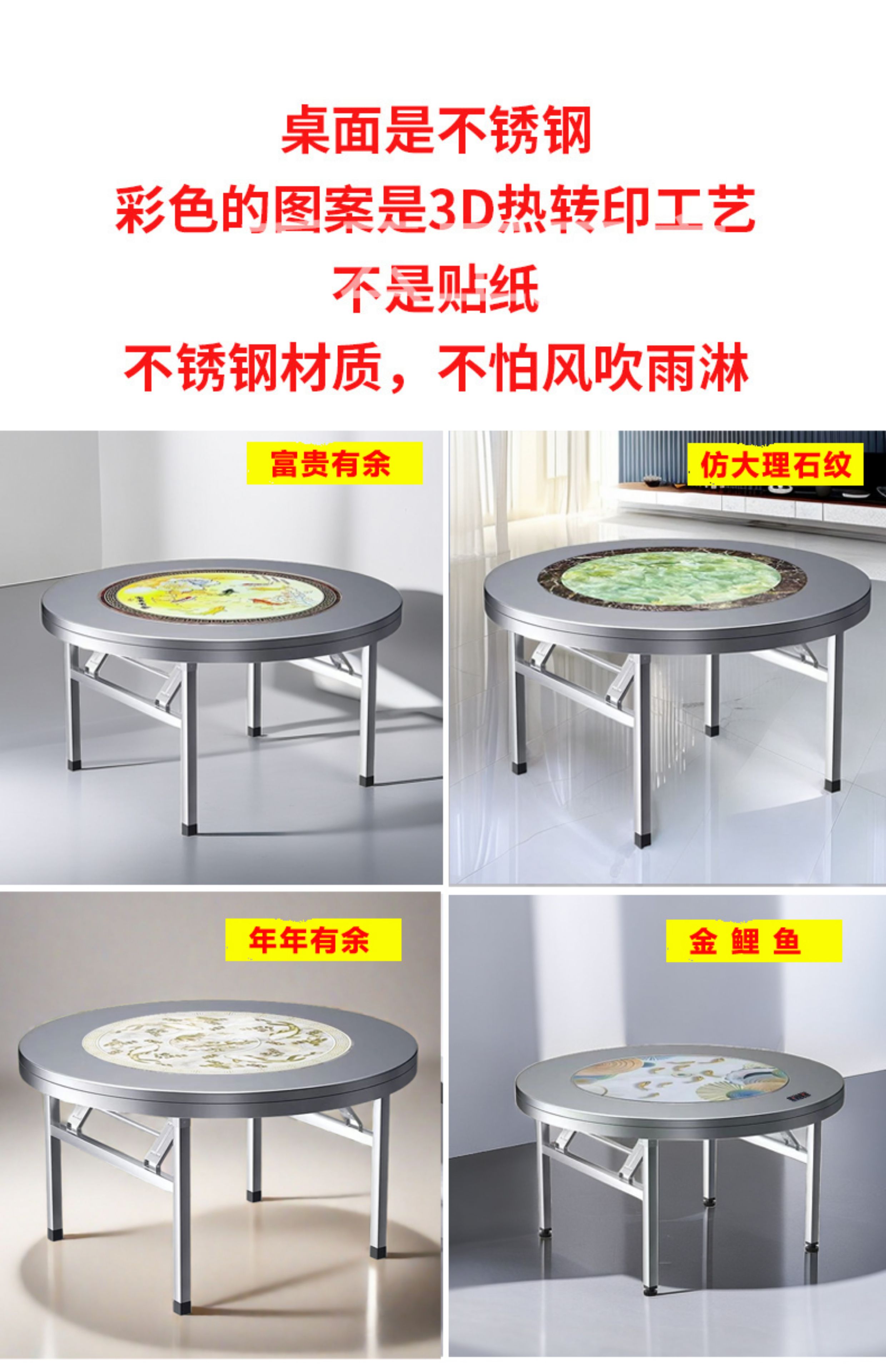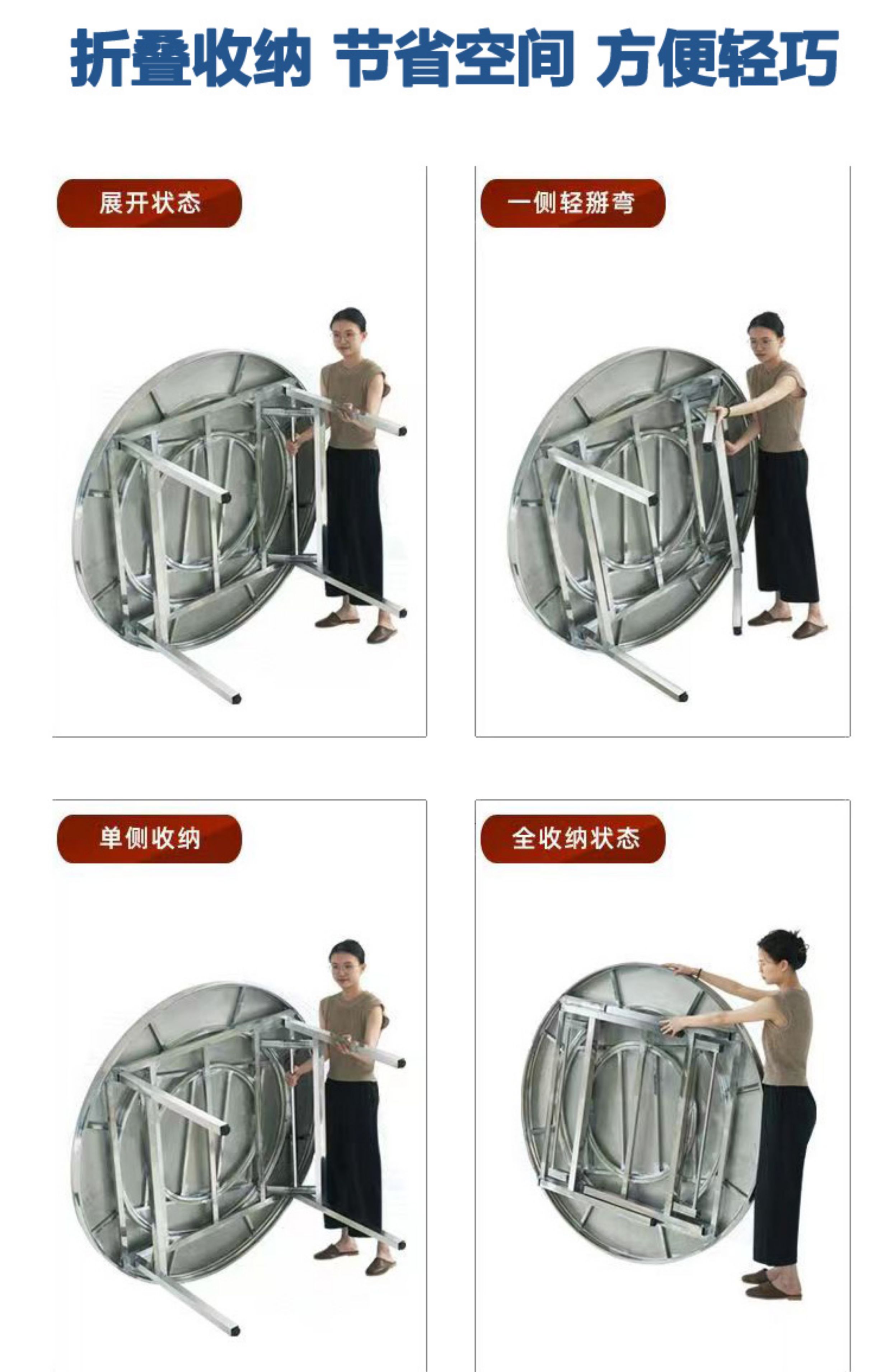 不锈钢转盘圆桌子内置彩图可折叠家用餐桌饭桌商用酒席圆台免安装