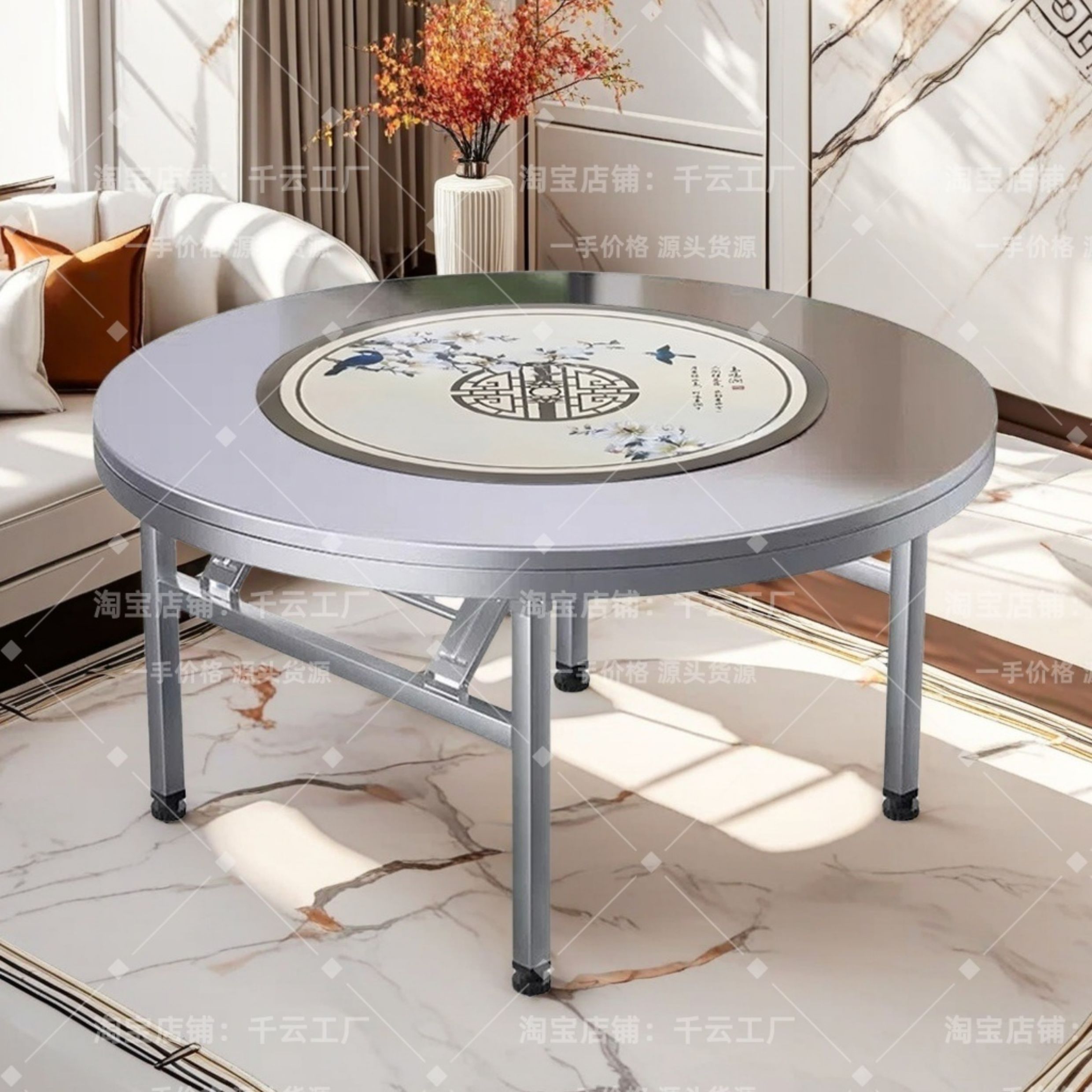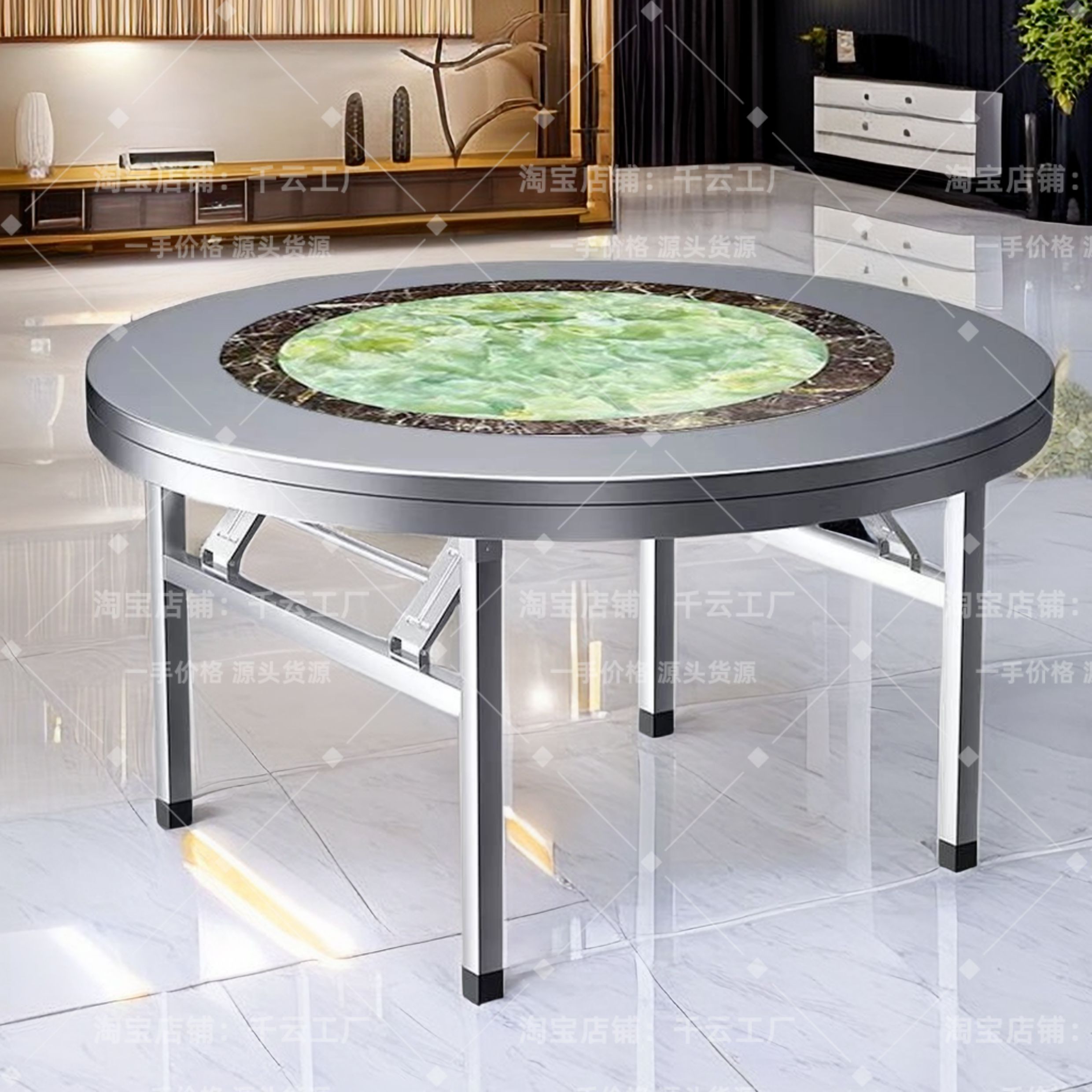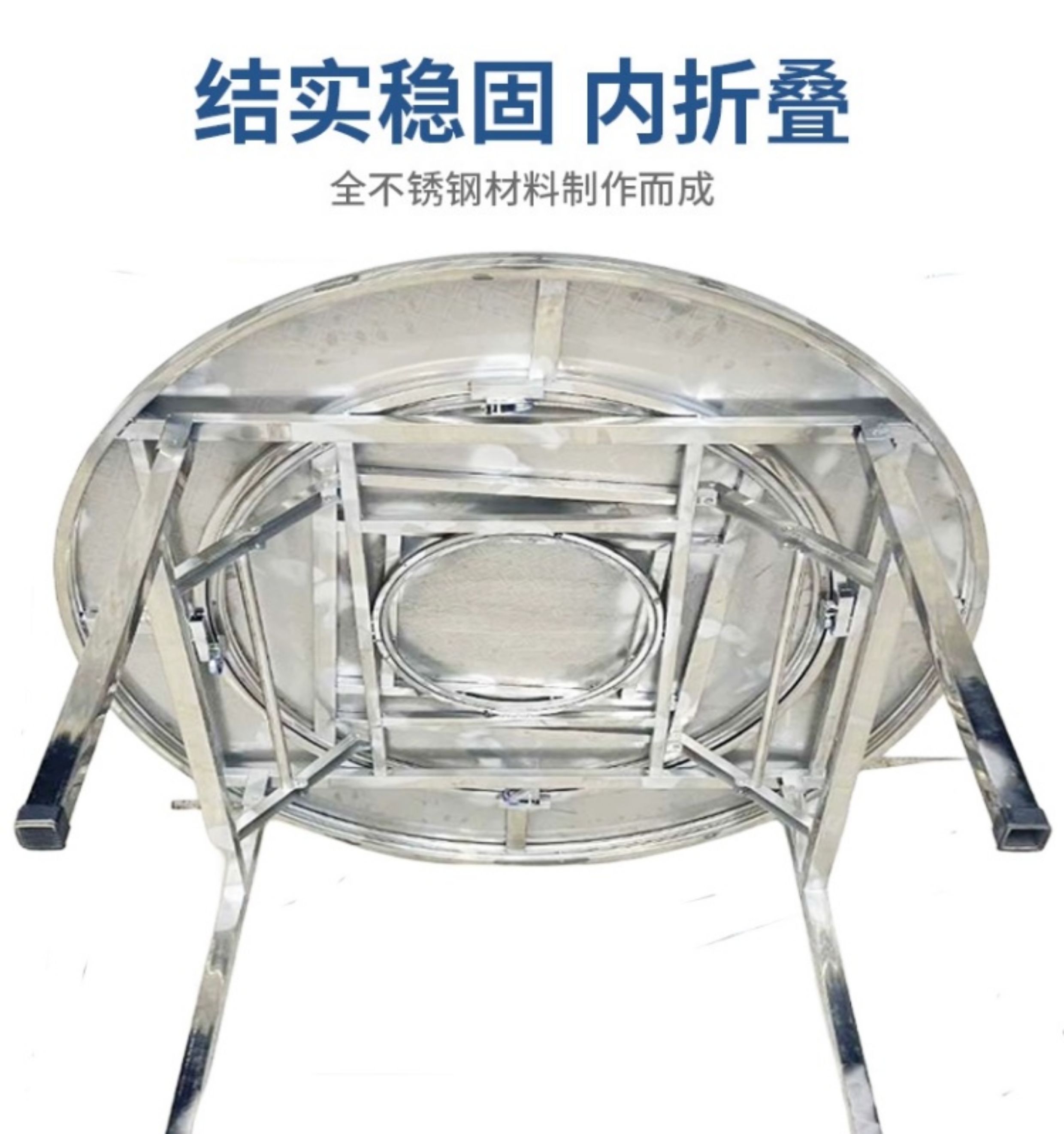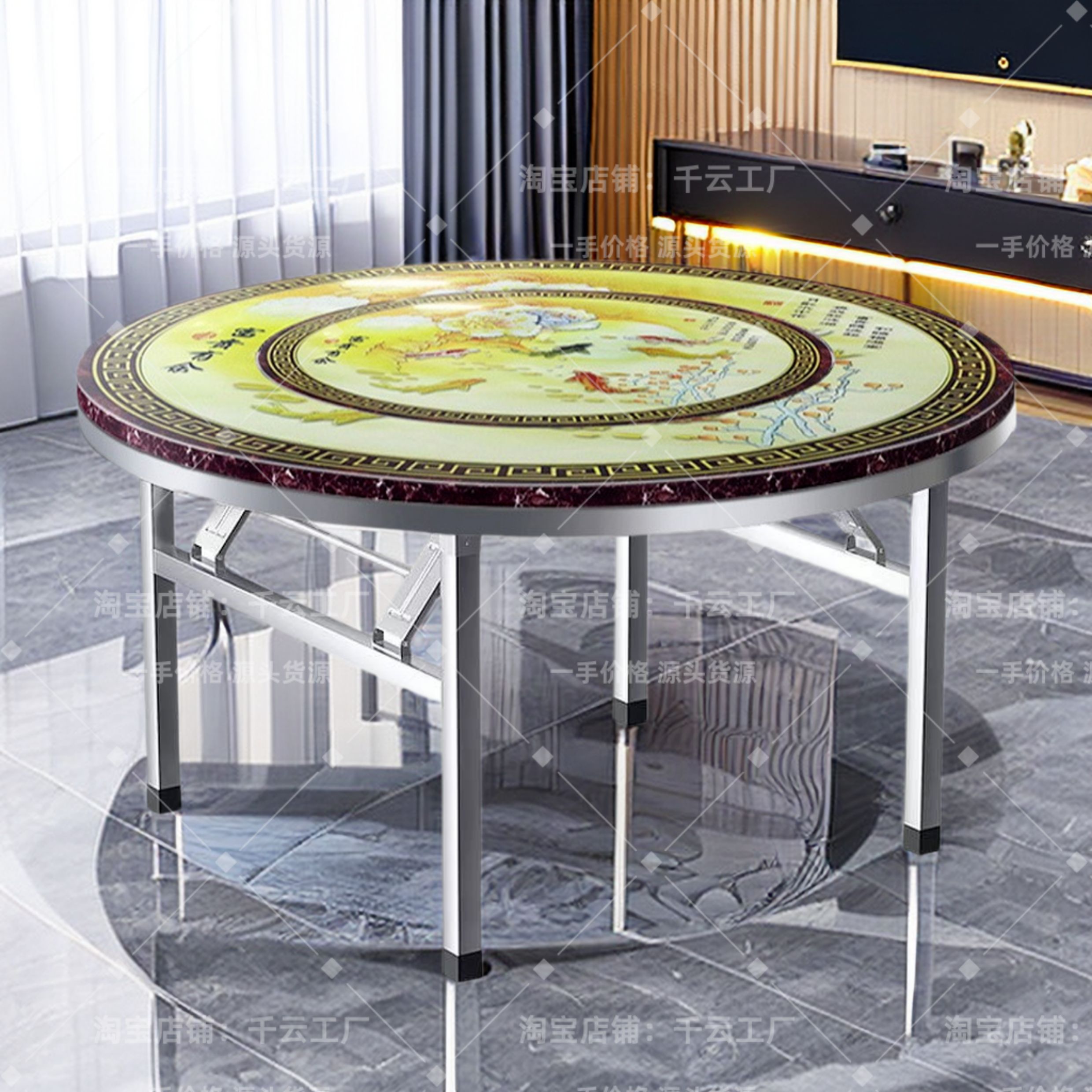 不锈钢转盘圆桌子内置彩图可折叠家用餐桌饭桌商用酒席圆台免安装