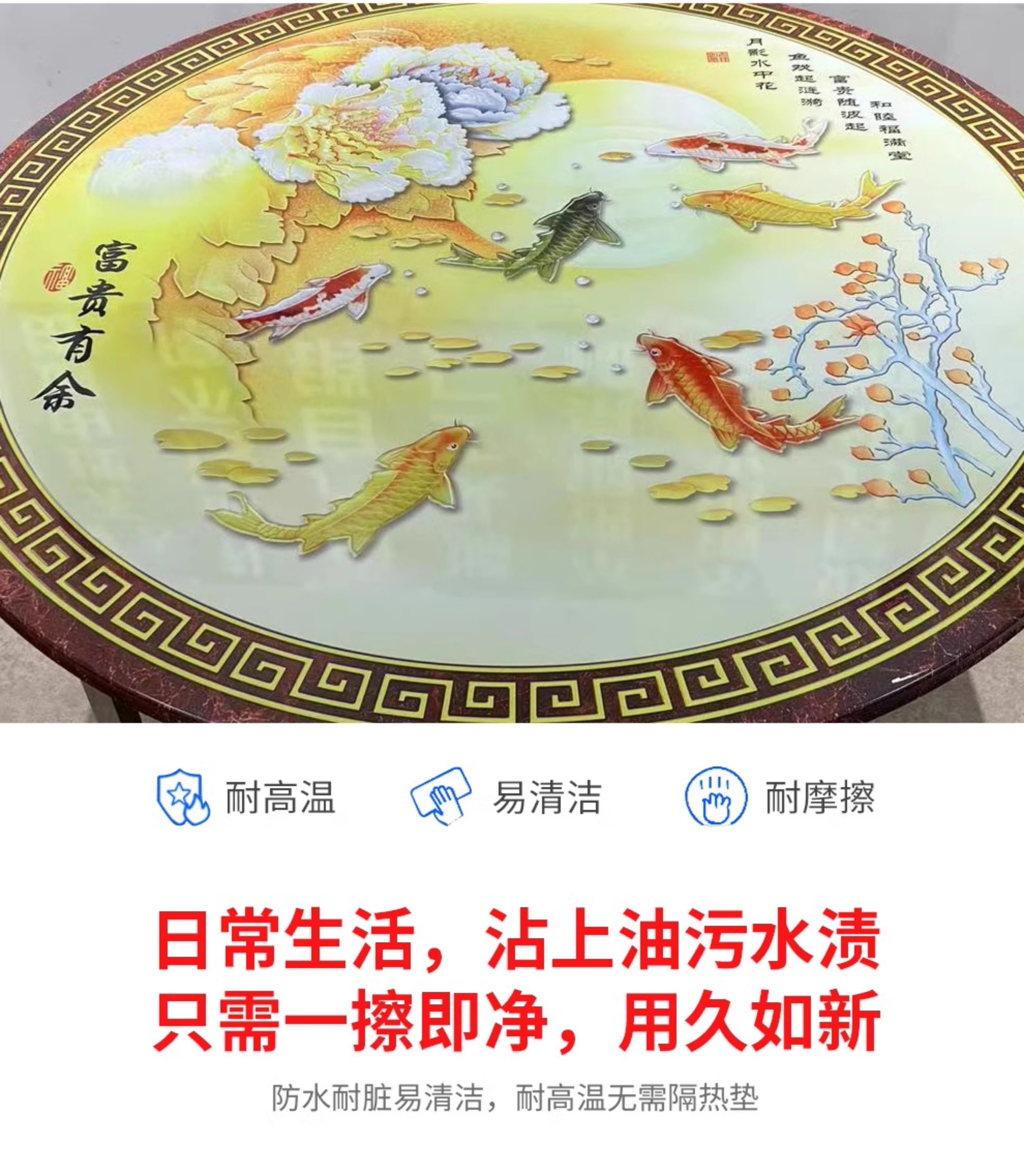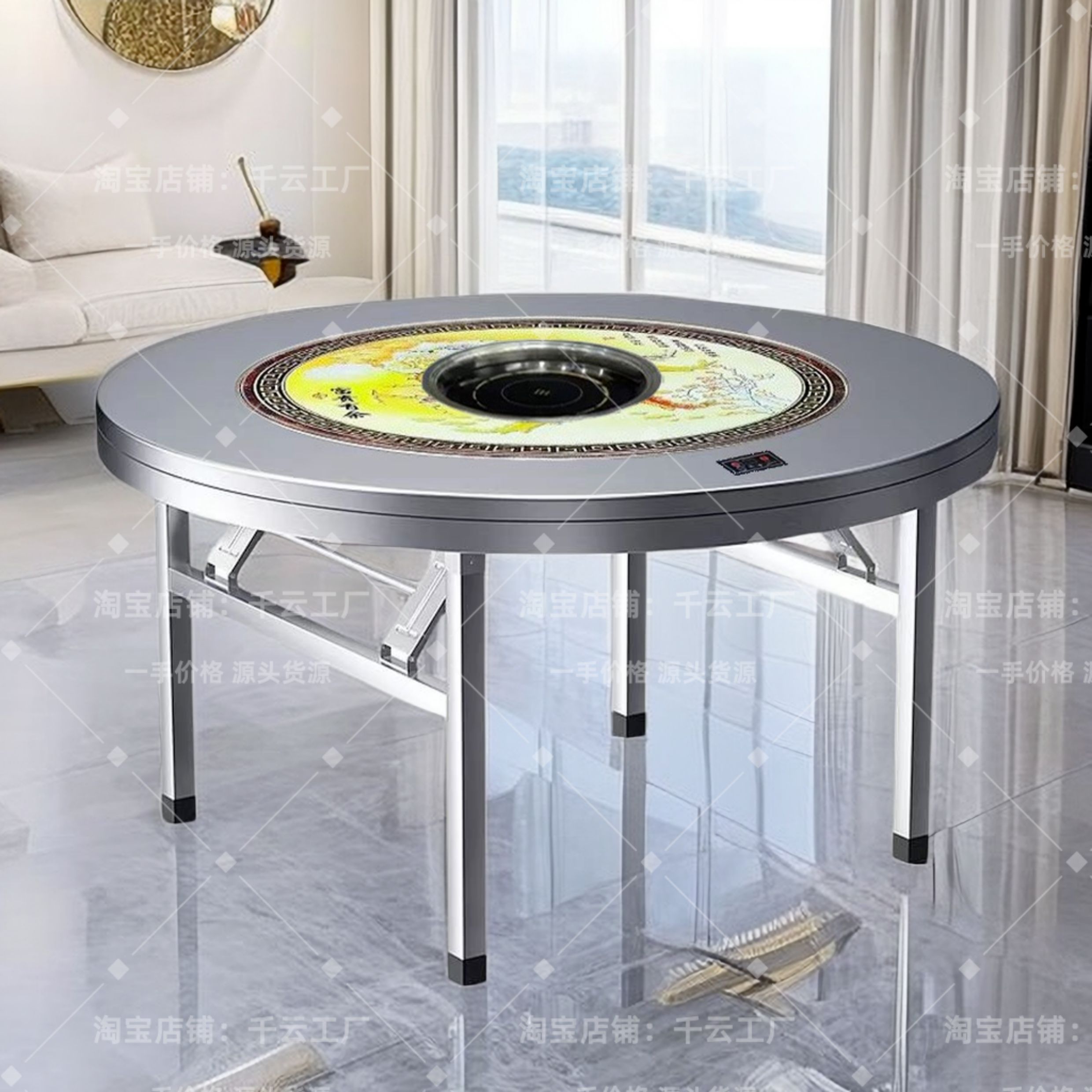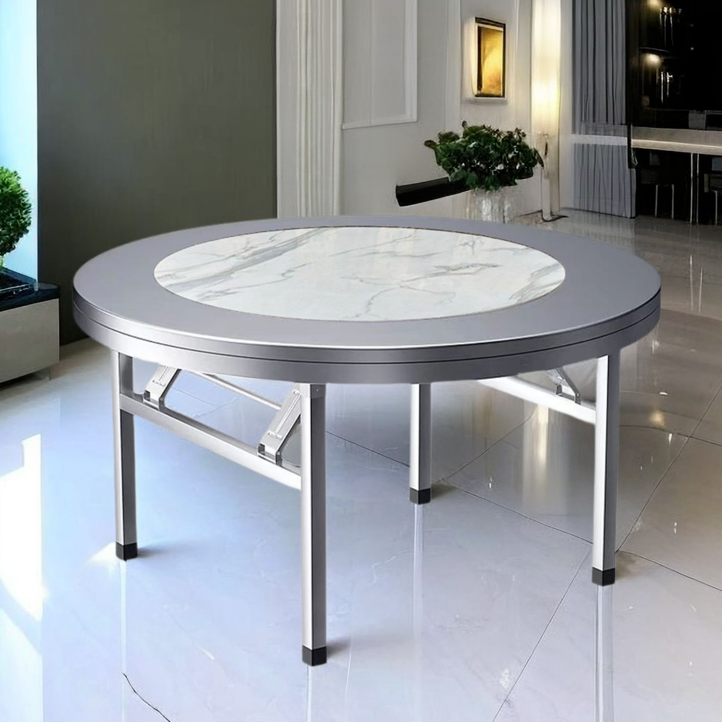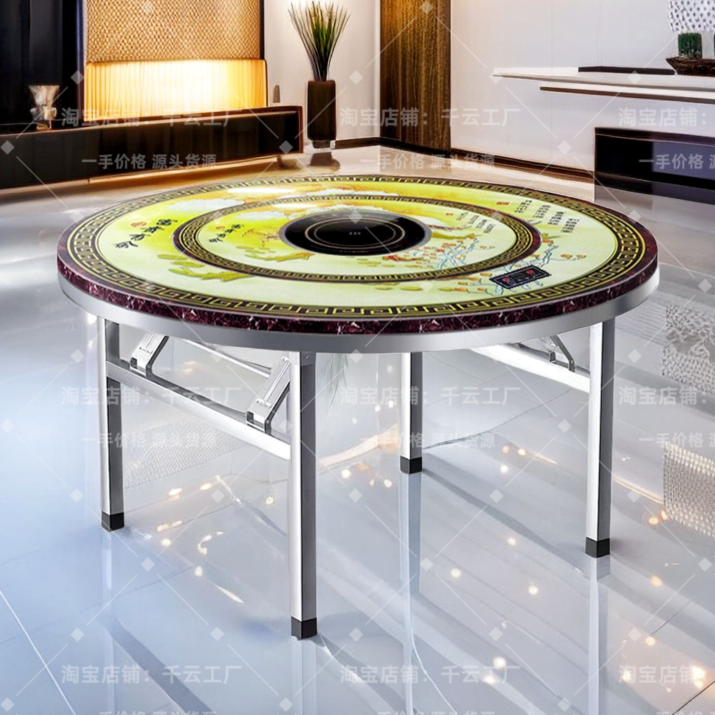 不锈钢转盘圆桌子内置彩图可折叠家用餐桌饭桌商用酒席圆台免安装