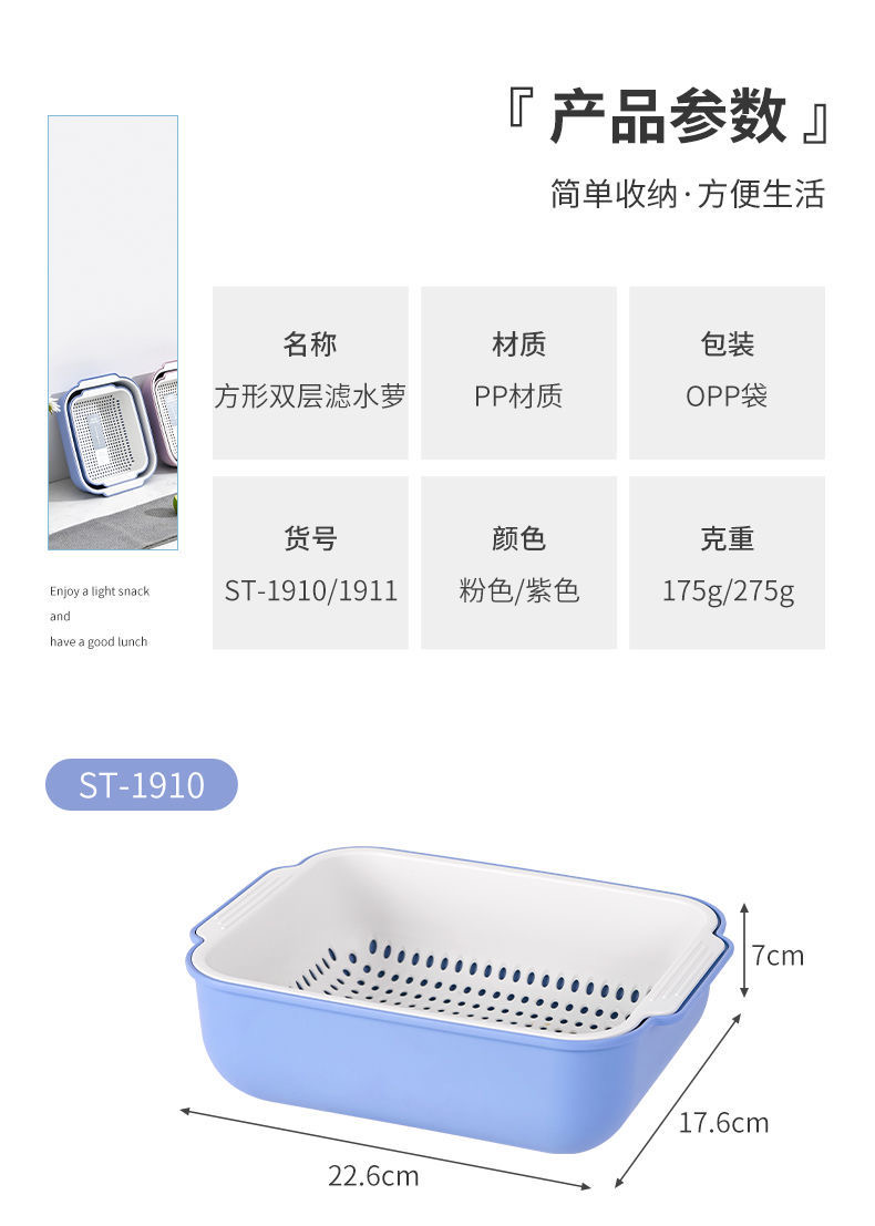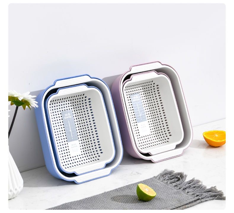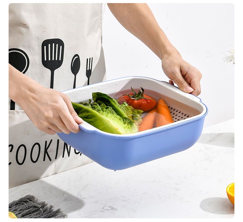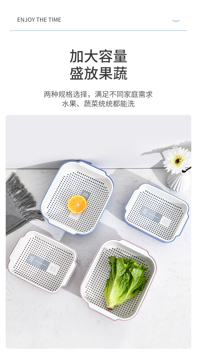 淞泰加厚双层洗菜盆厨房神器家用客厅水果盘洗菜的篮子沥水篮方形