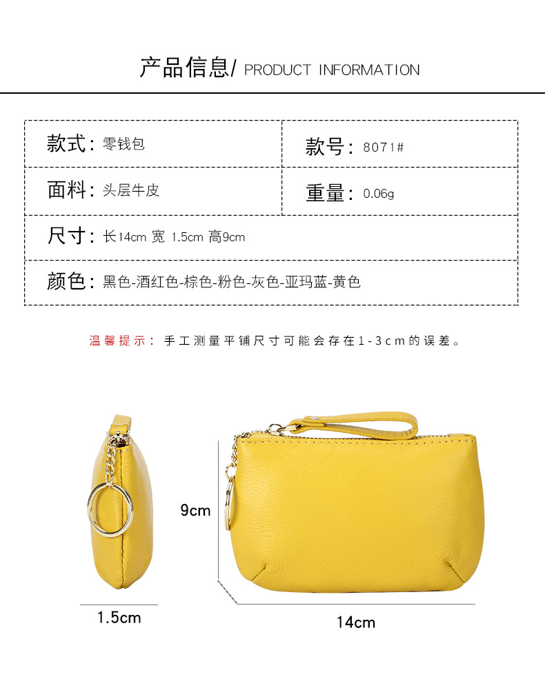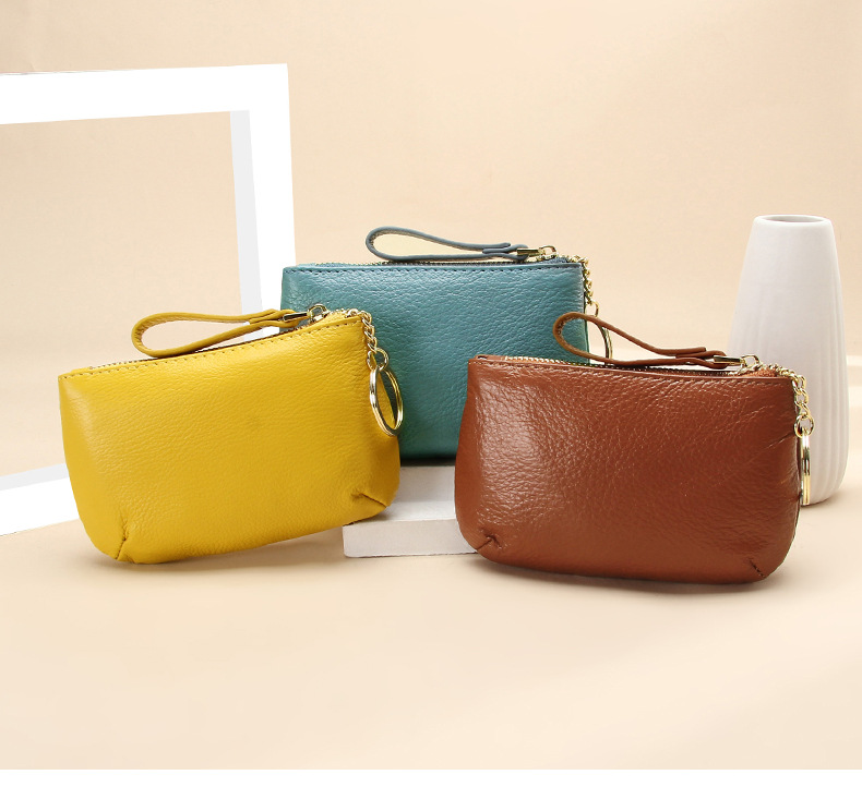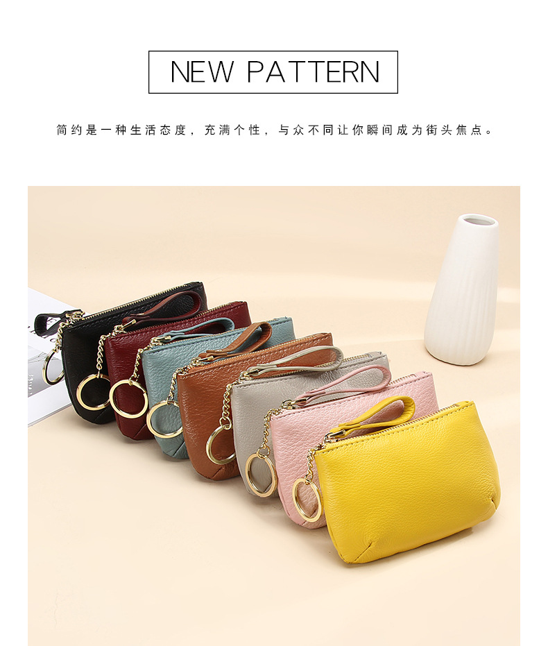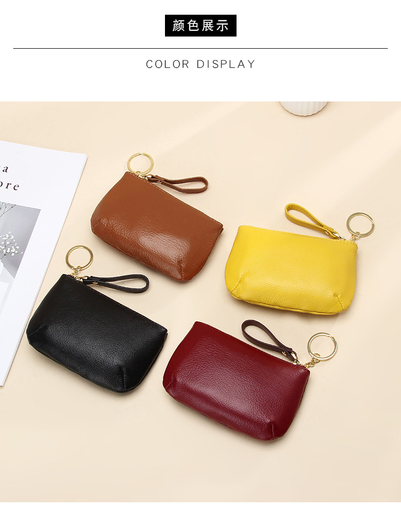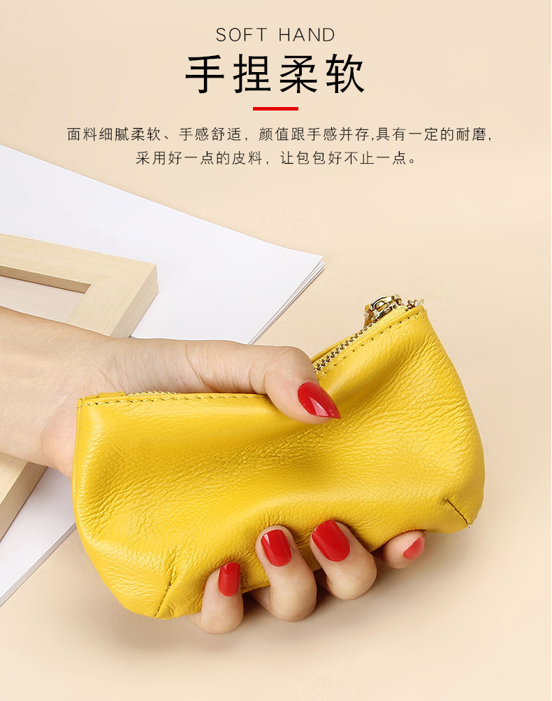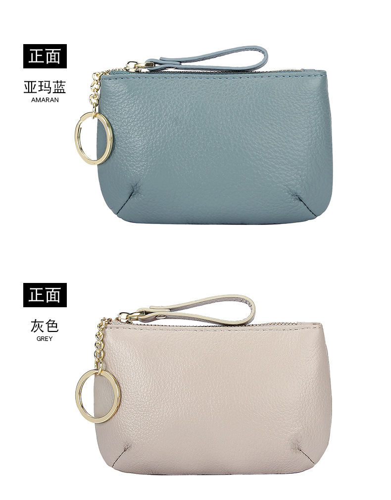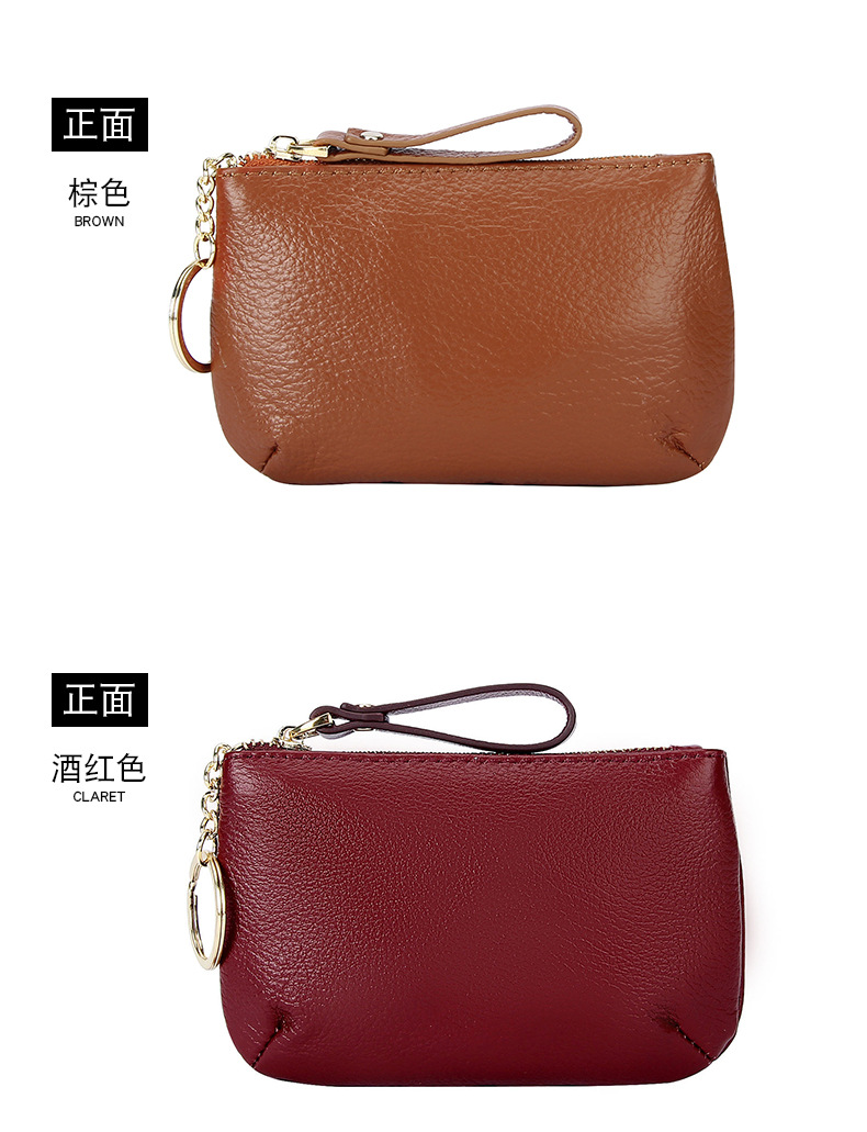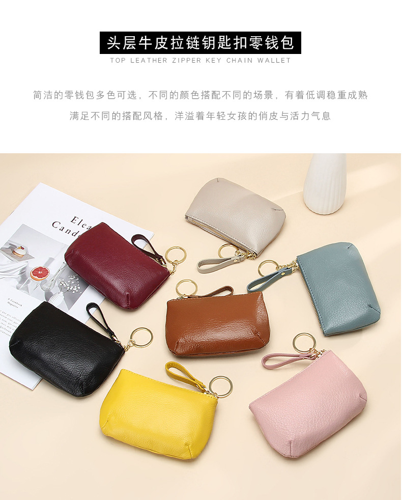 头层软牛皮拉链小钱包简约钥匙扣硬币包零钱袋自然摔真皮零钱包女