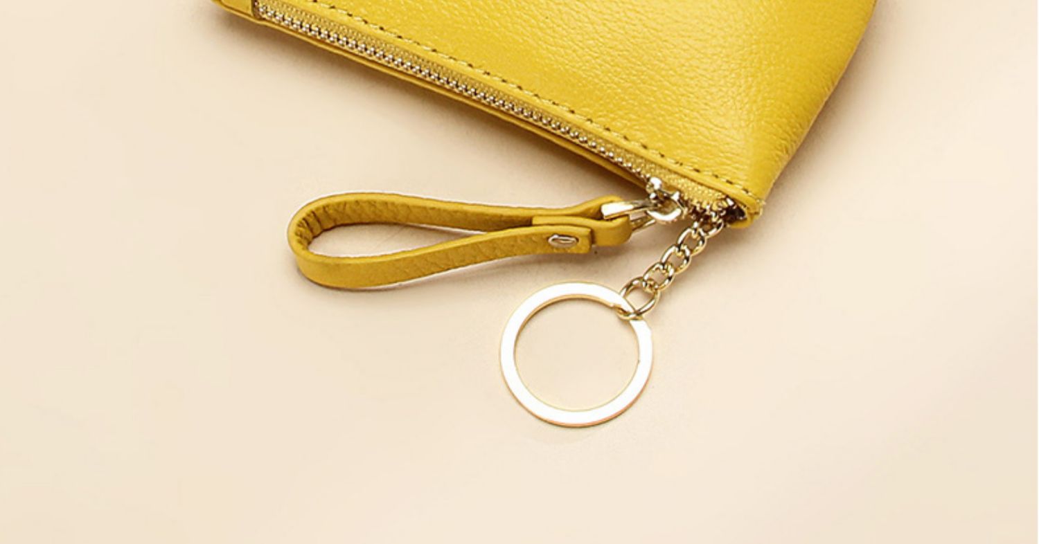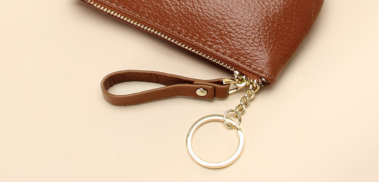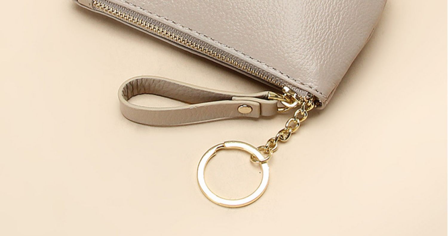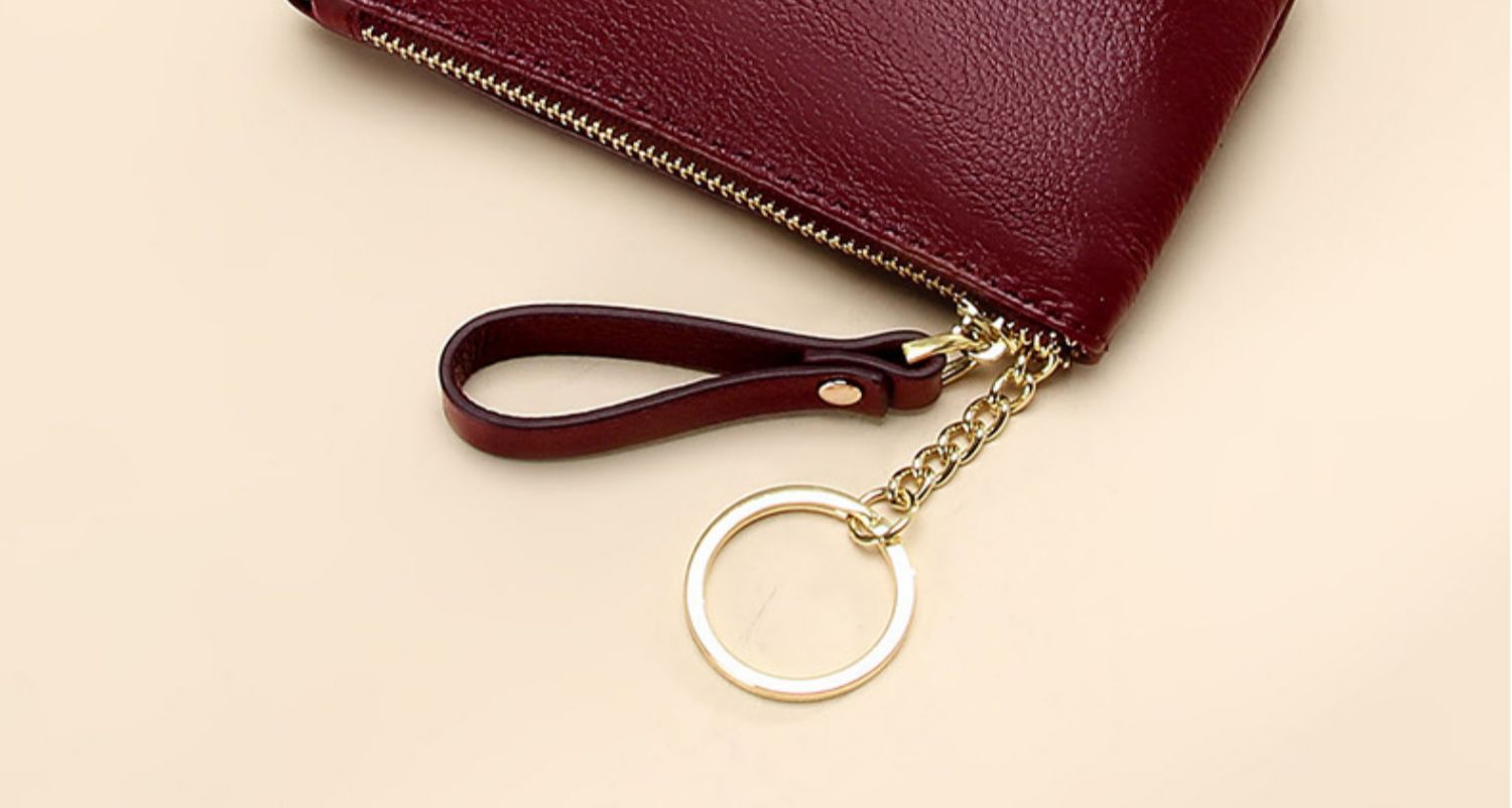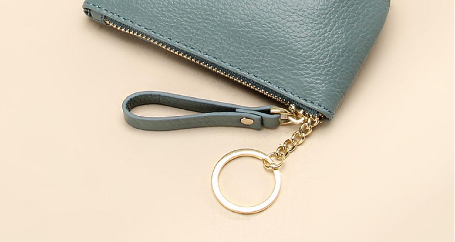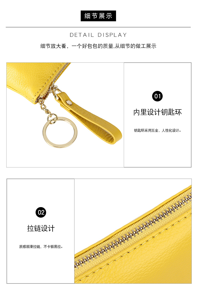 头层软牛皮拉链小钱包简约钥匙扣硬币包零钱袋自然摔真皮零钱包女