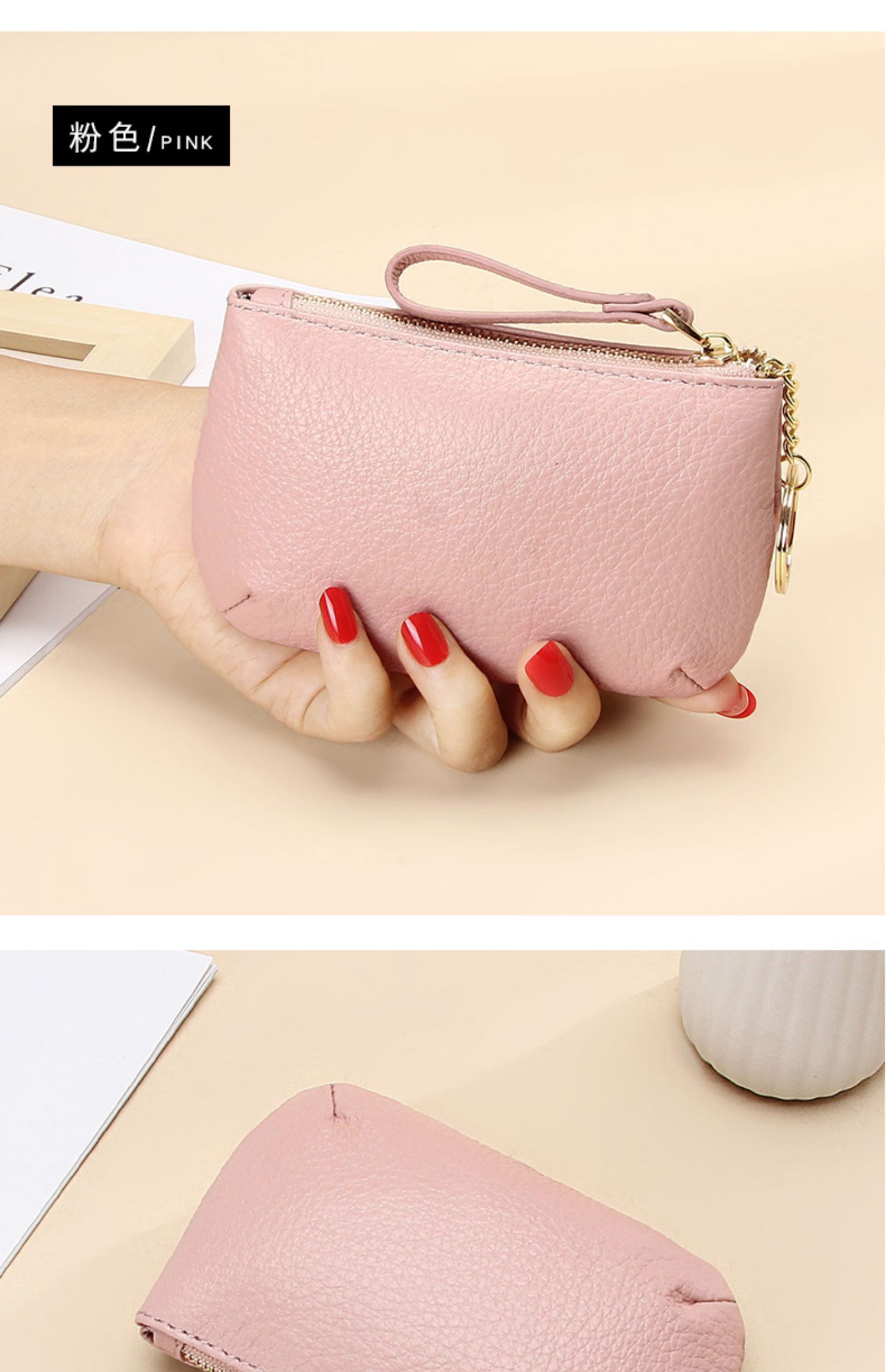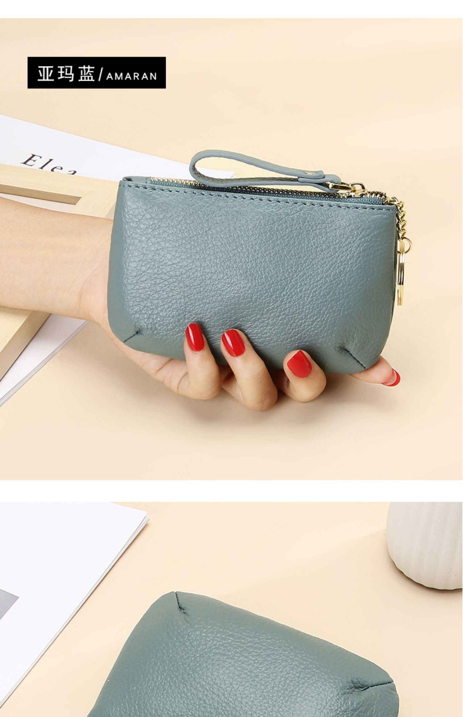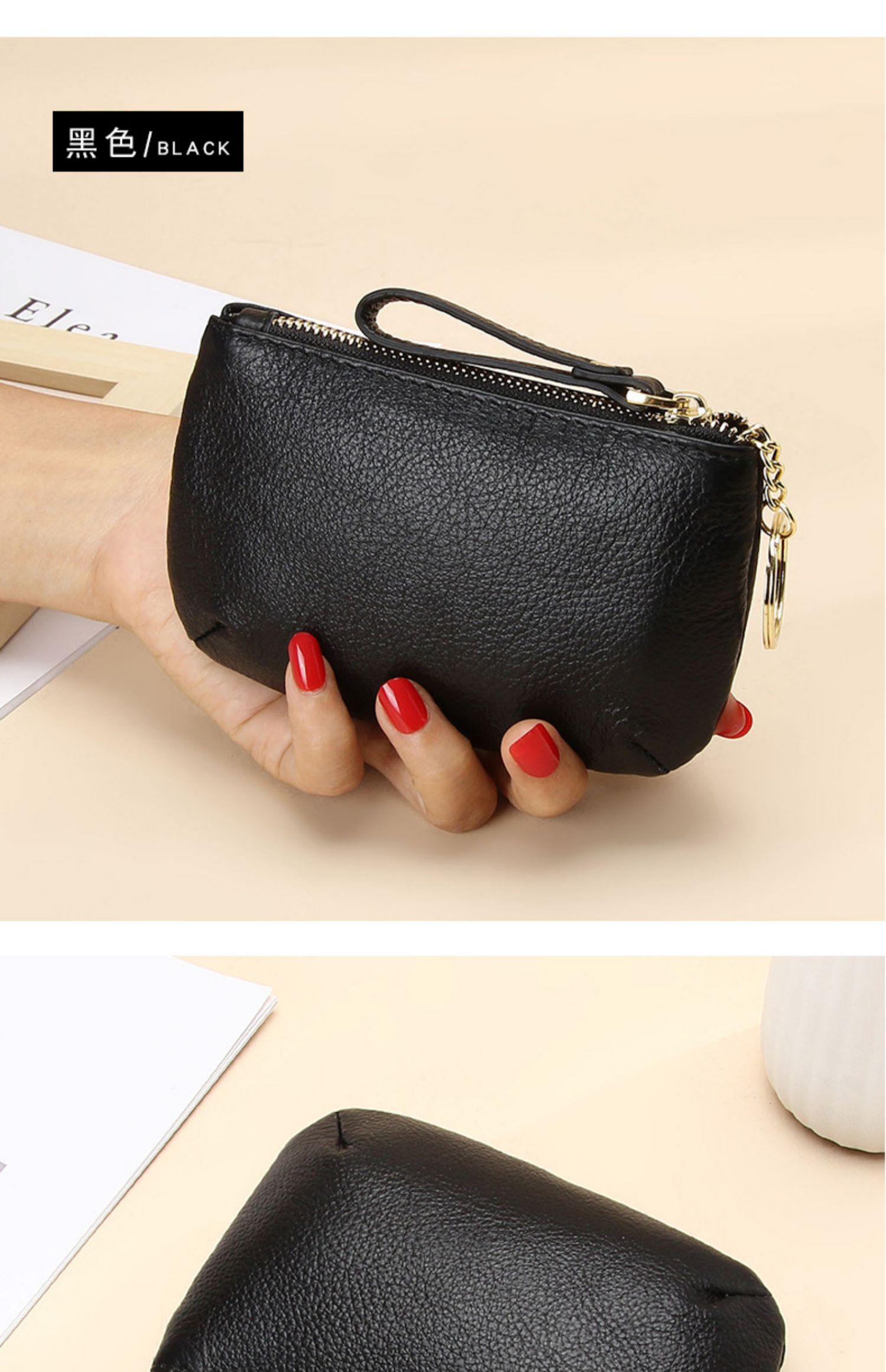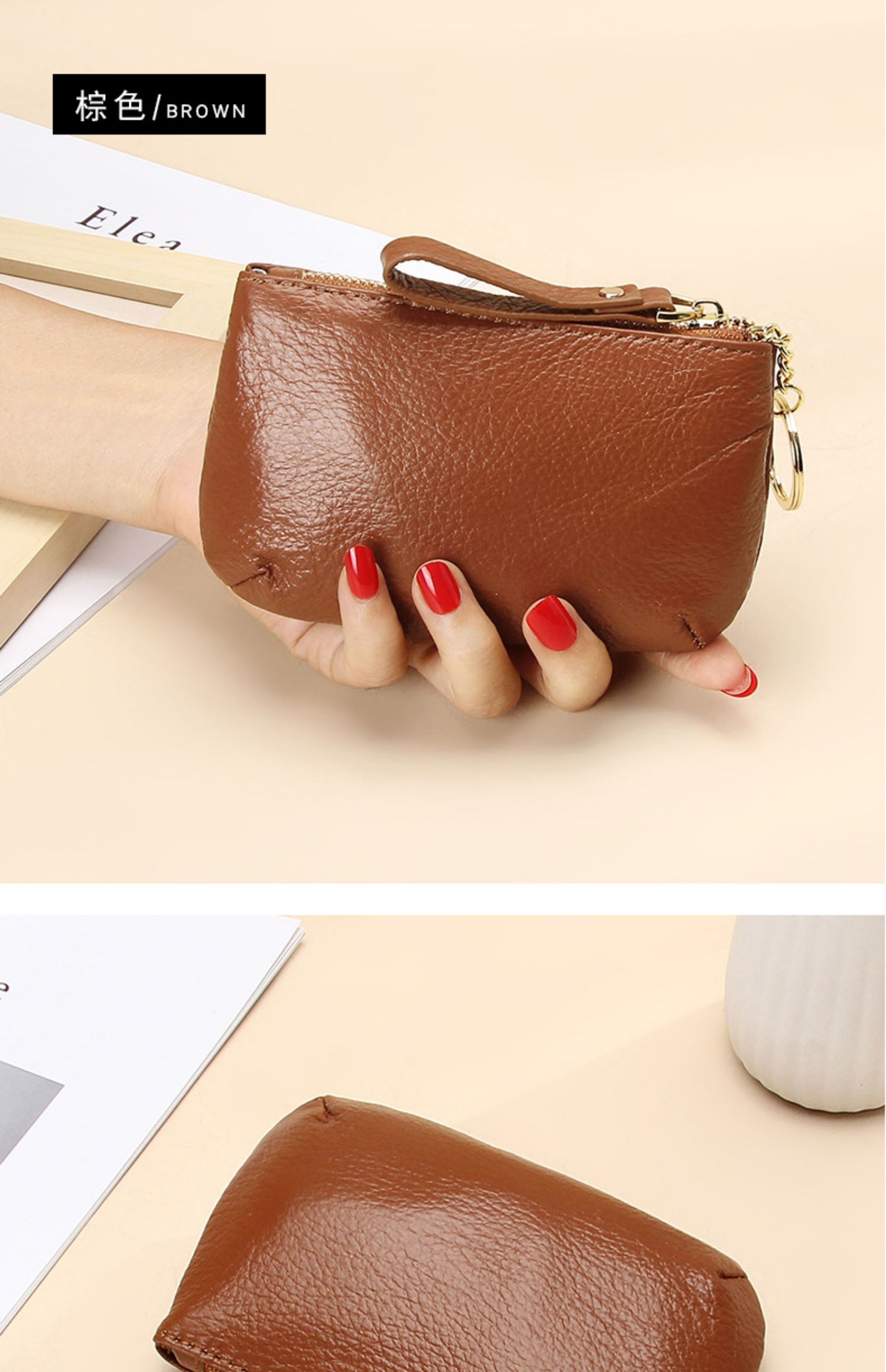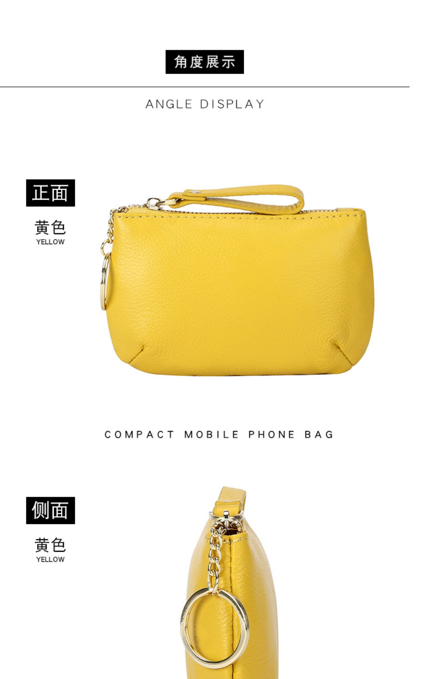 头层软牛皮拉链小钱包简约钥匙扣硬币包零钱袋自然摔真皮零钱包女