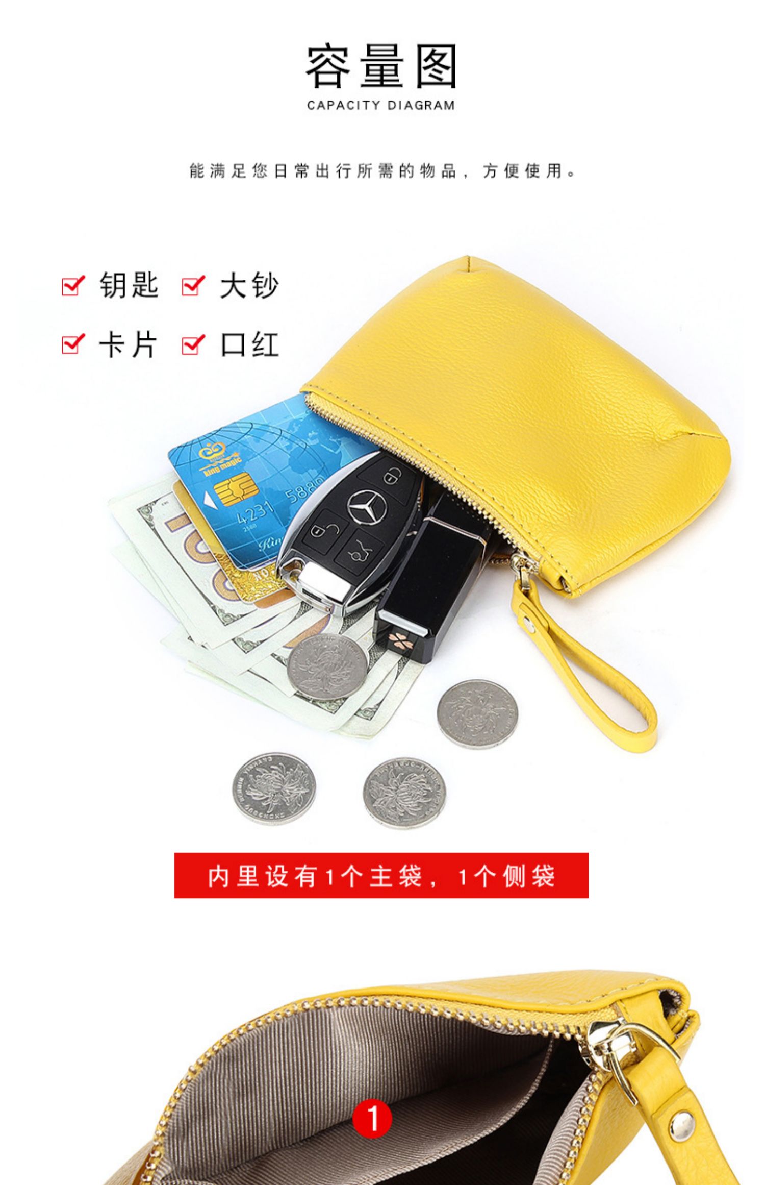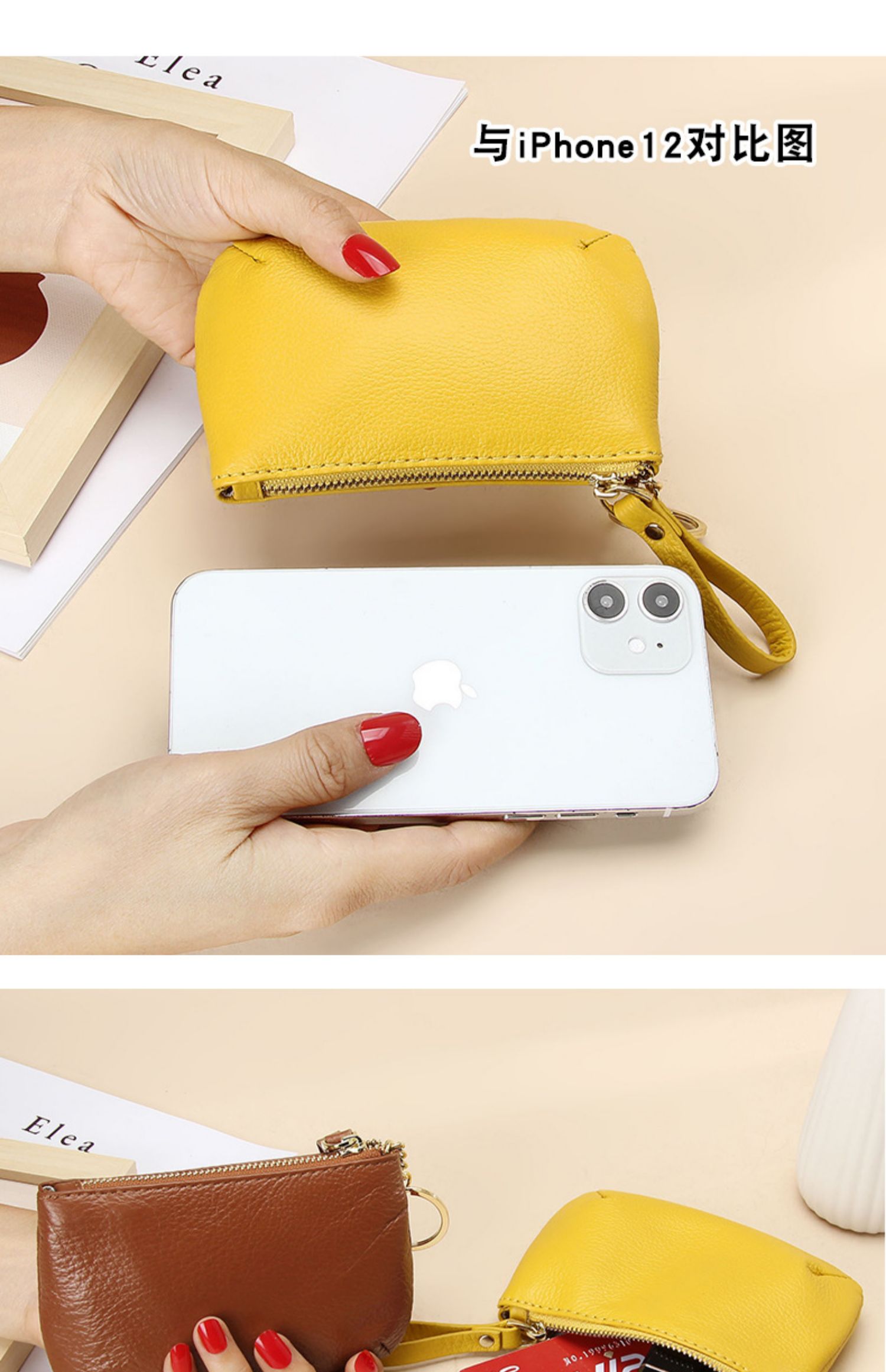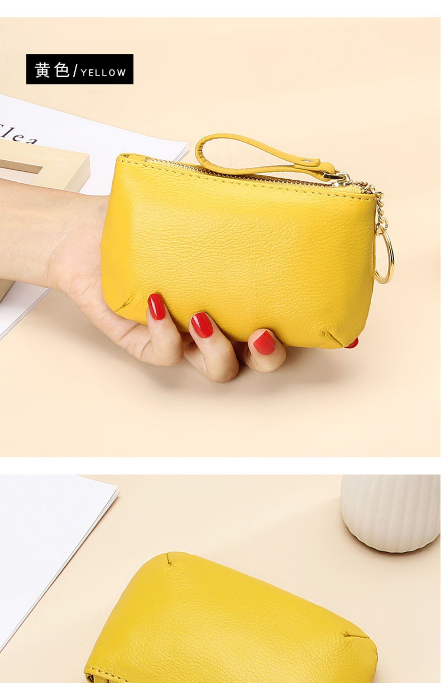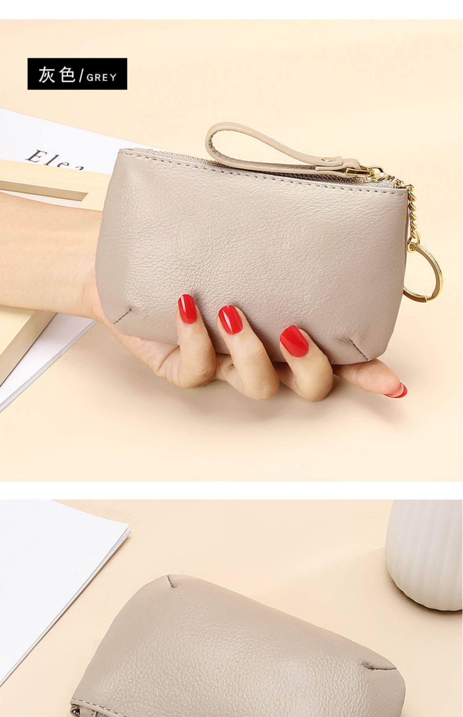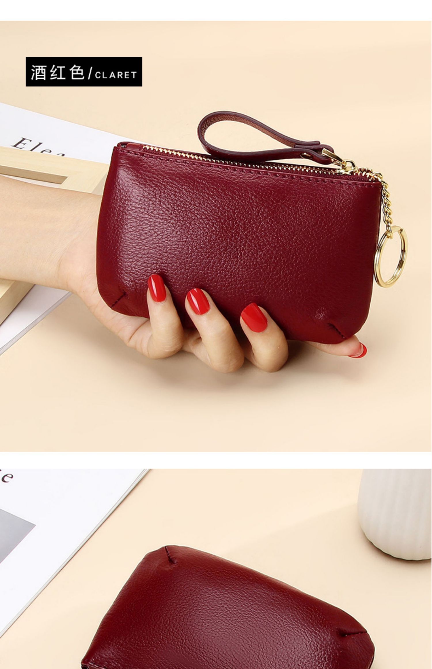 头层软牛皮拉链小钱包简约钥匙扣硬币包零钱袋自然摔真皮零钱包女