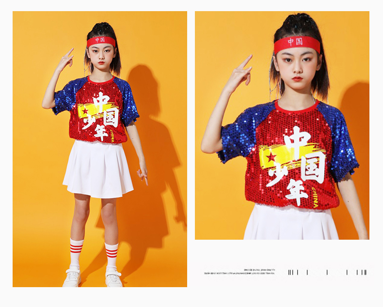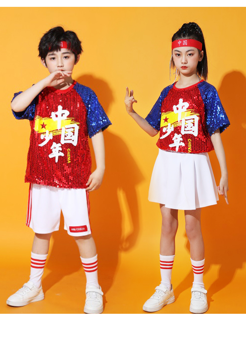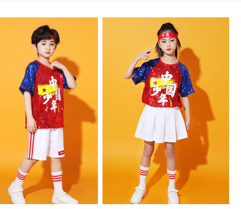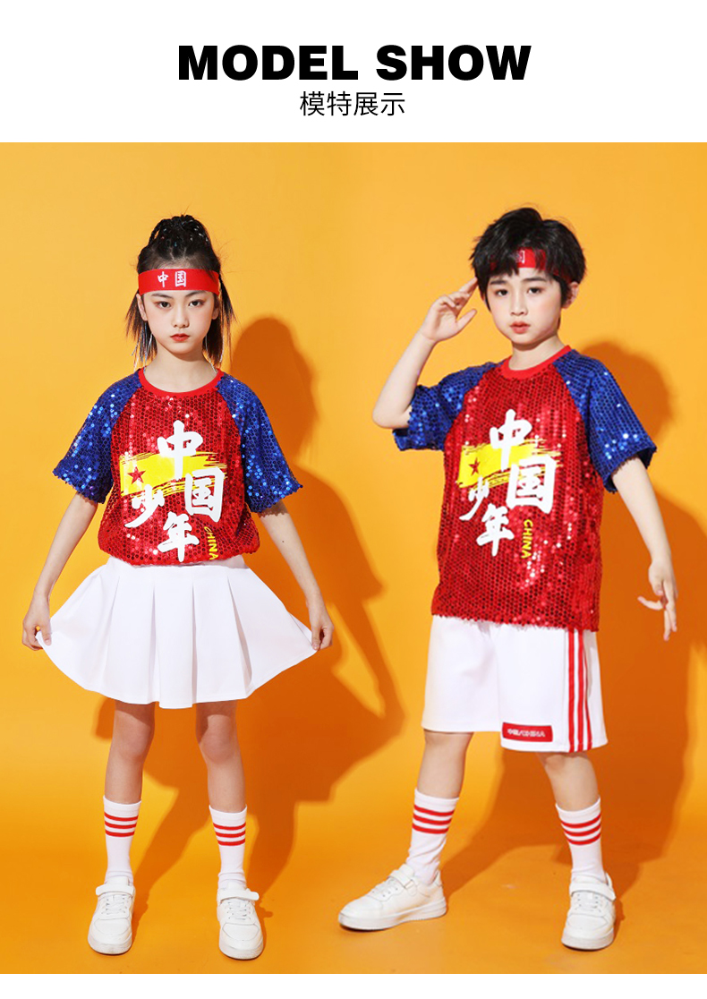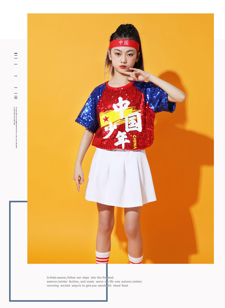 六一儿童啦啦队演出服幼儿园舞蹈服小学生运动会亮片爵士舞街舞服