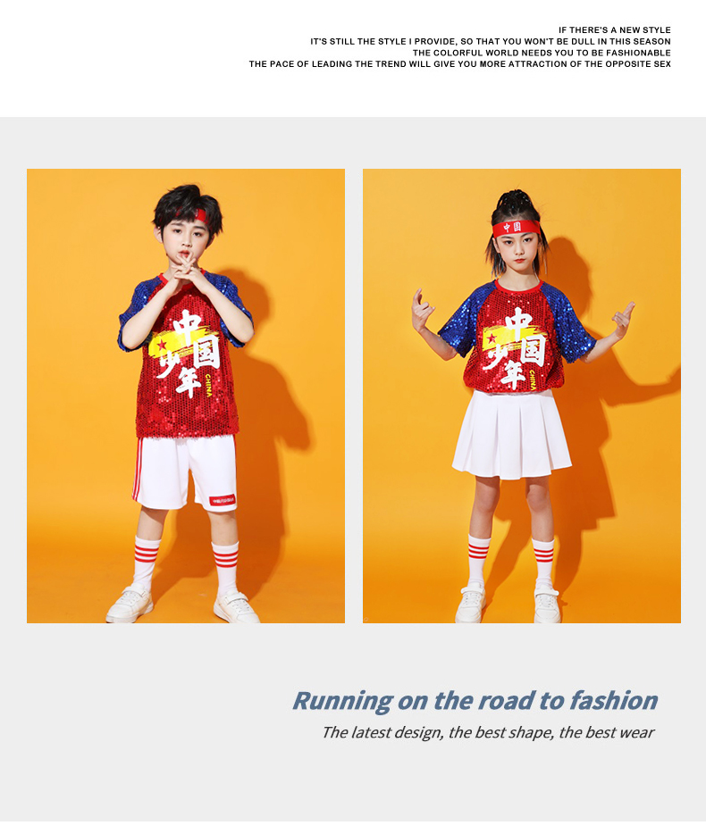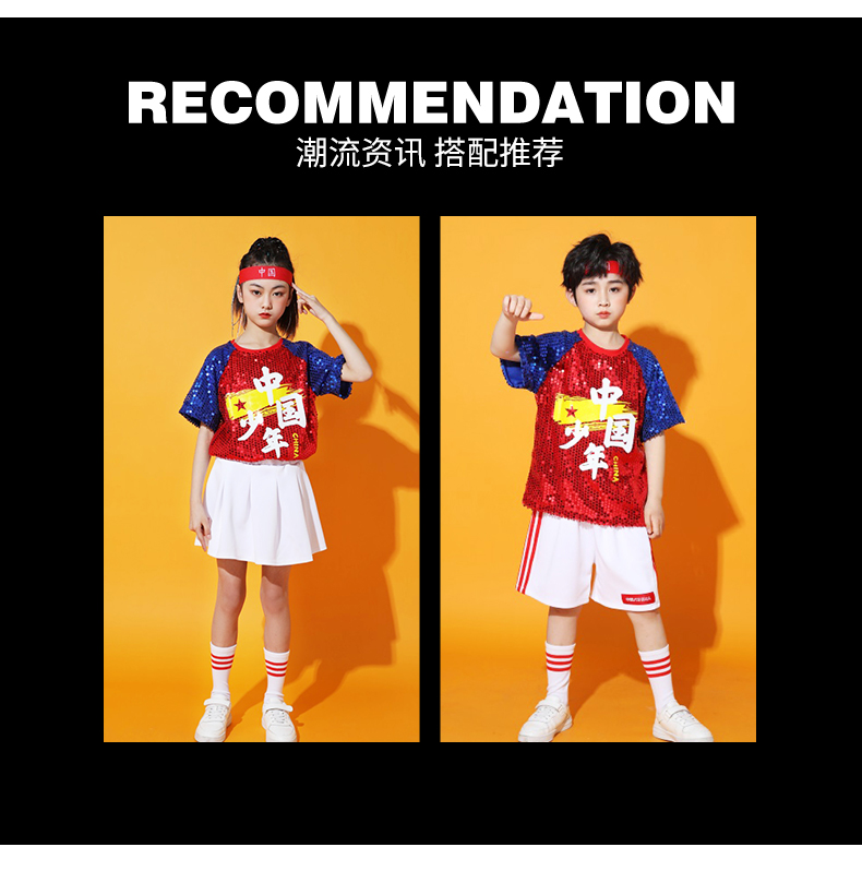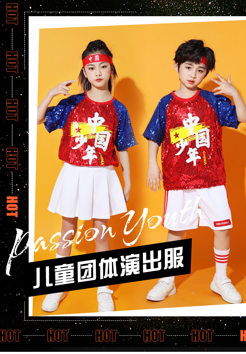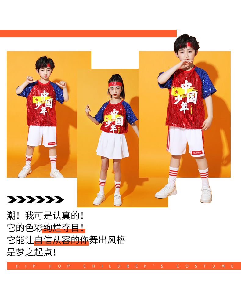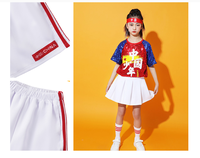 六一儿童啦啦队演出服幼儿园舞蹈服小学生运动会亮片爵士舞街舞服