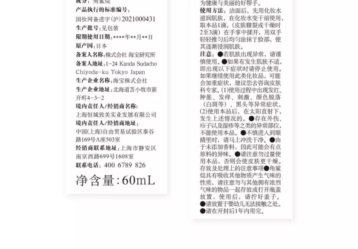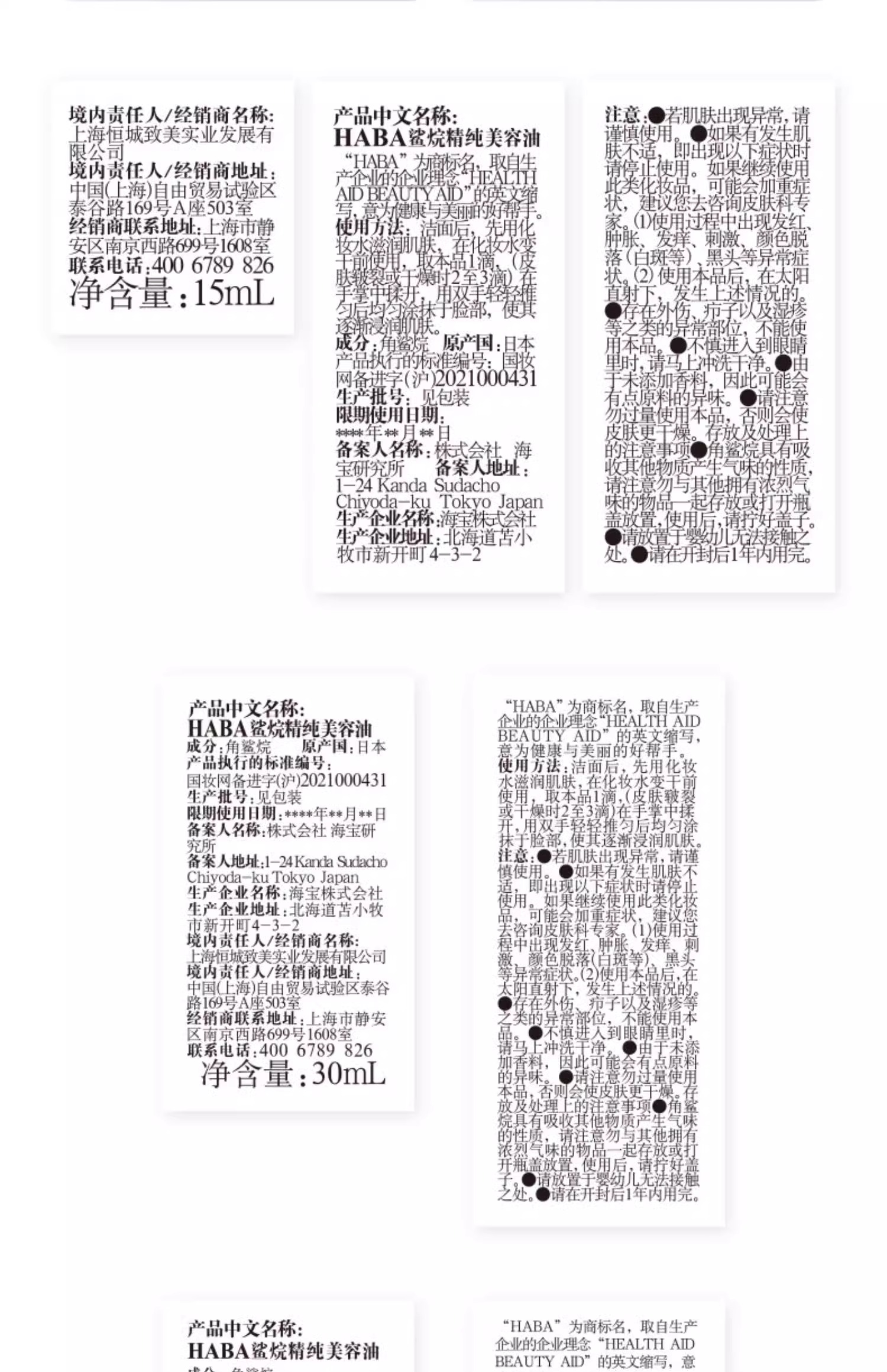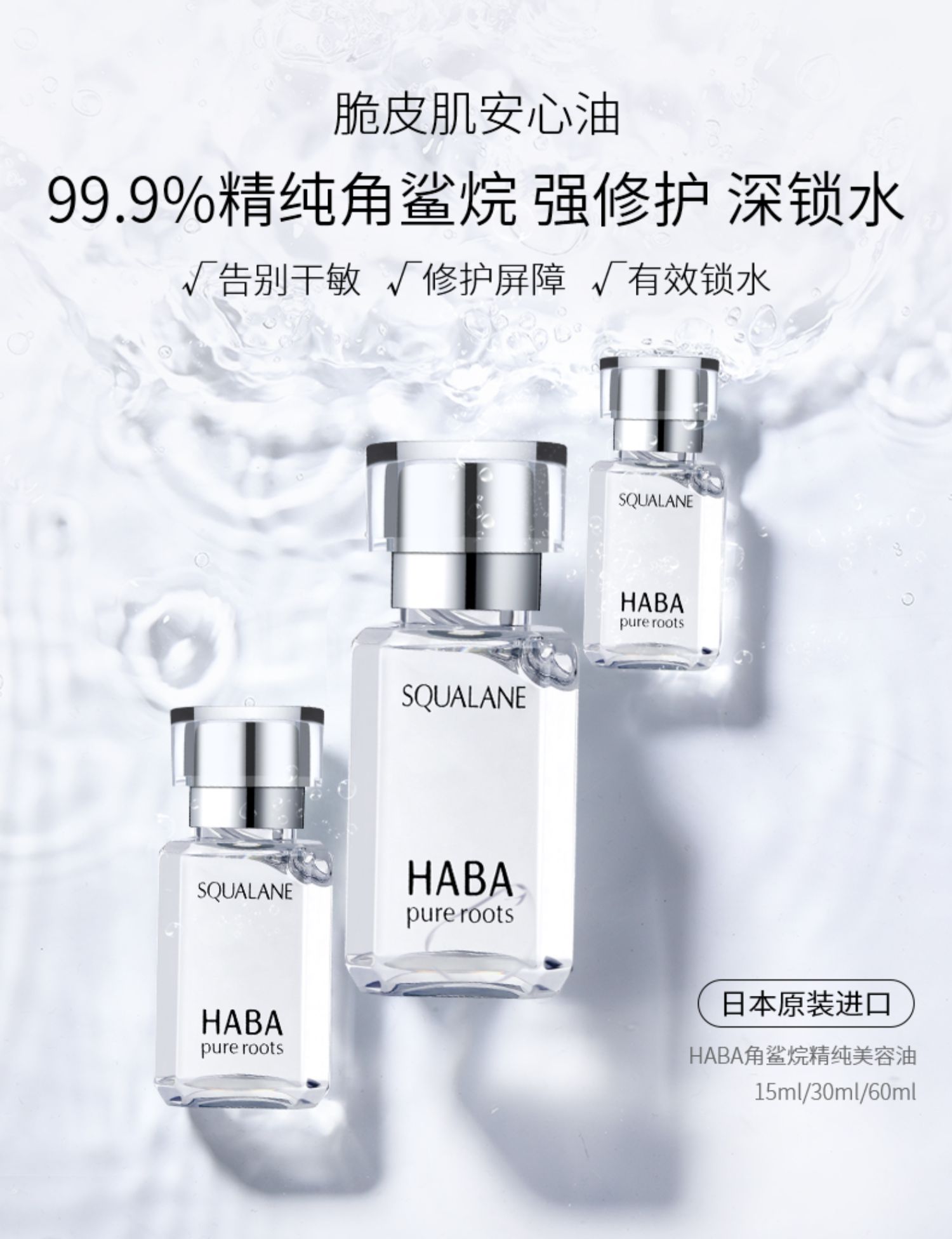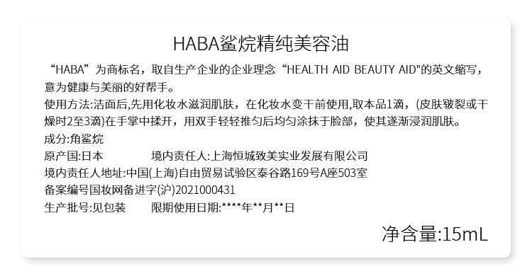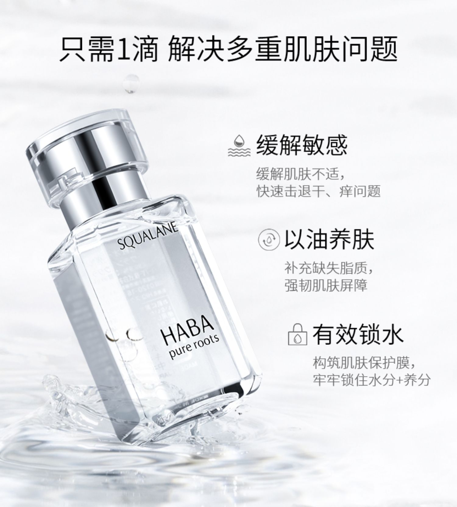 HABA角鲨烷油1代精纯美容油15ml修护精华油滋养保湿补水舒缓护肤