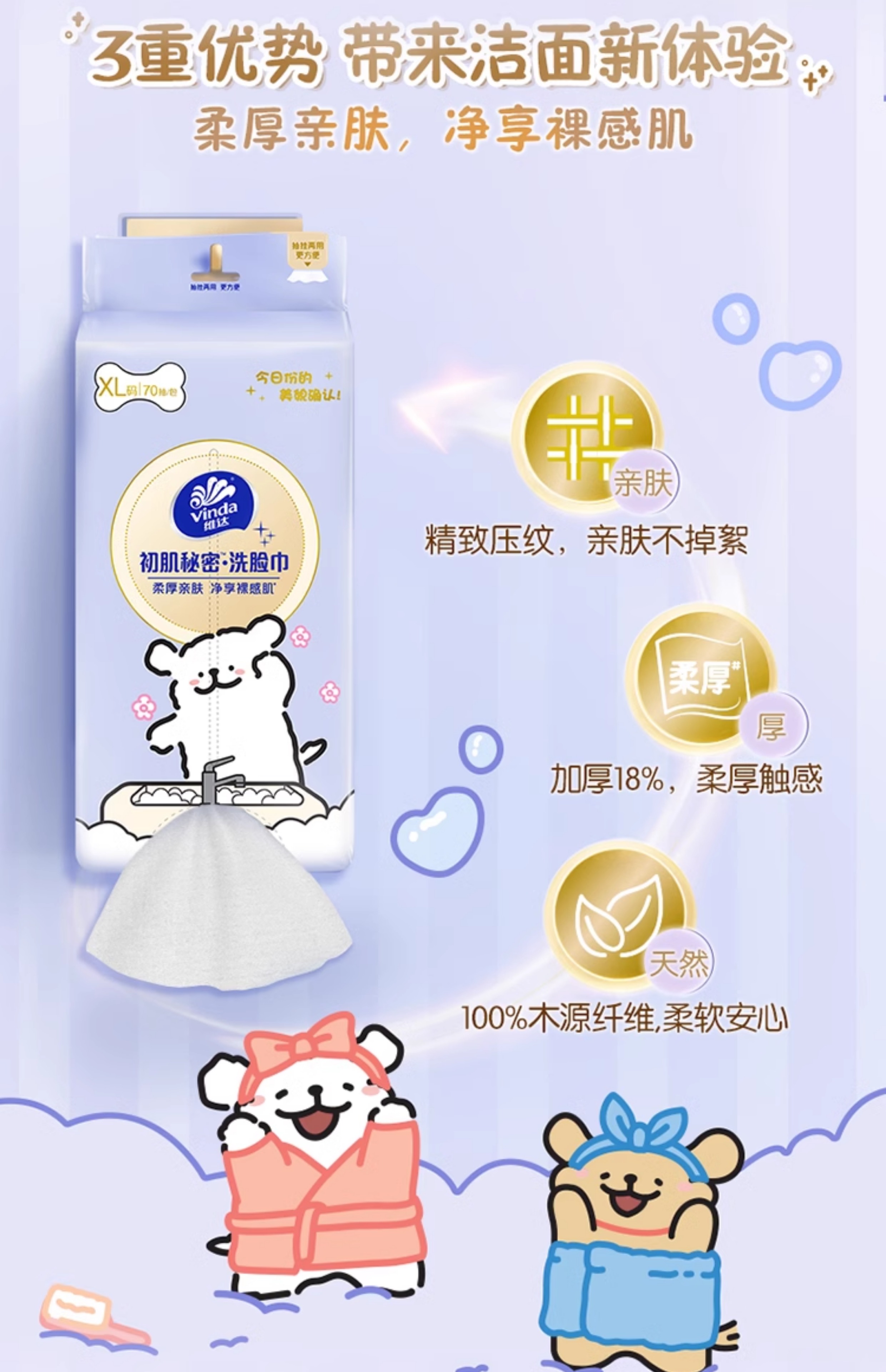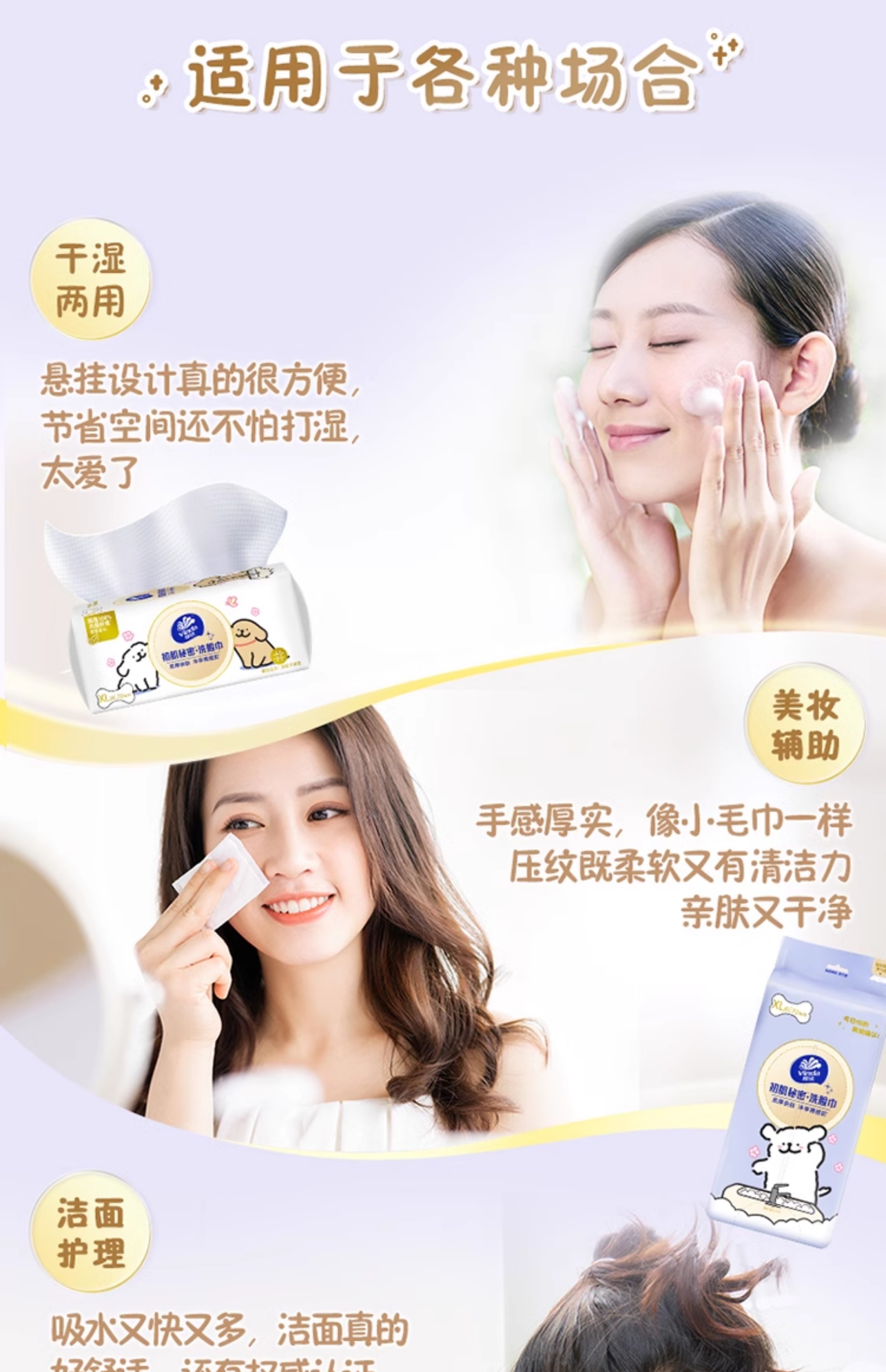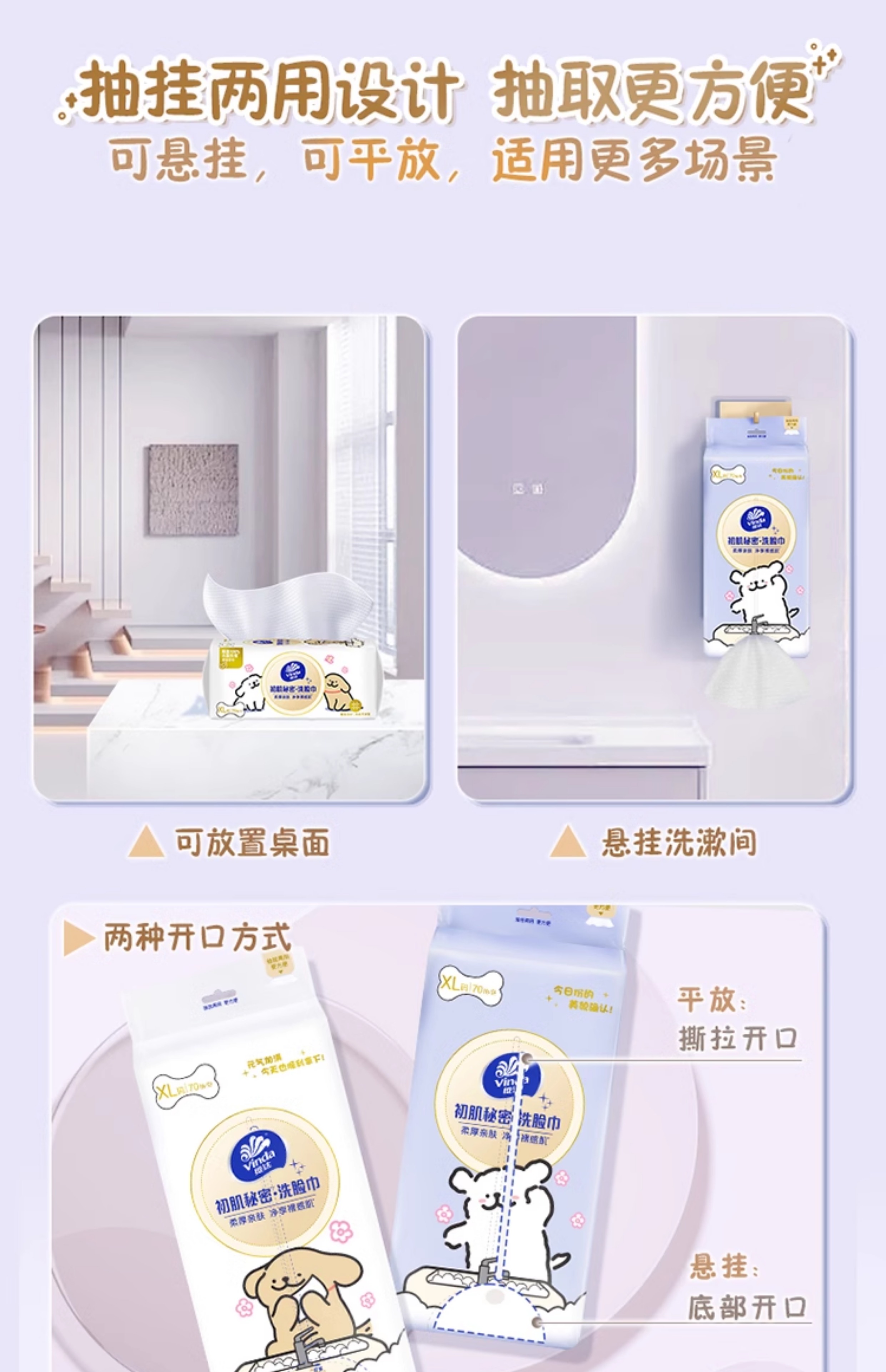 维达线条小狗悬挂式洗脸巾70抽6包一次性棉柔巾婴儿洁面巾抽取式