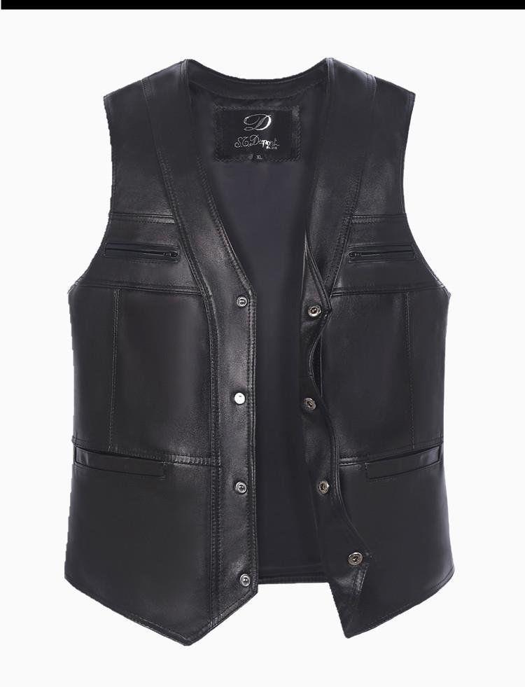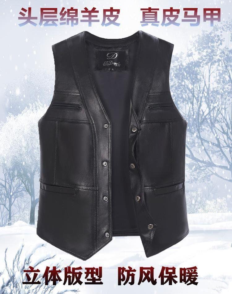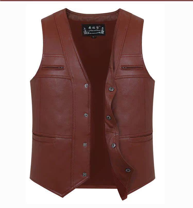 真好皮马甲男士西装修身皮坎肩新款中老年秋冬皮背心皮马夹爸爸装
