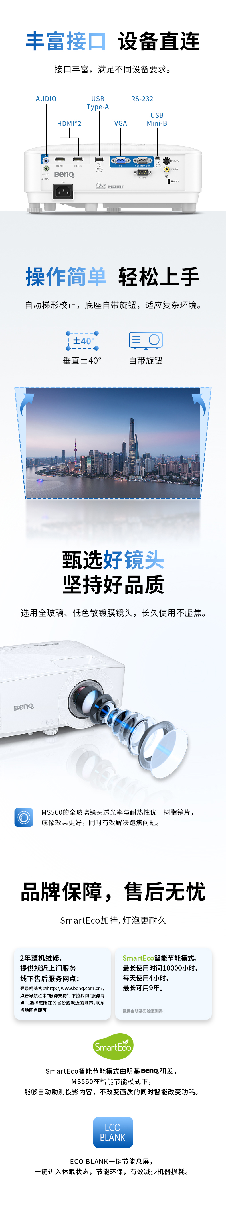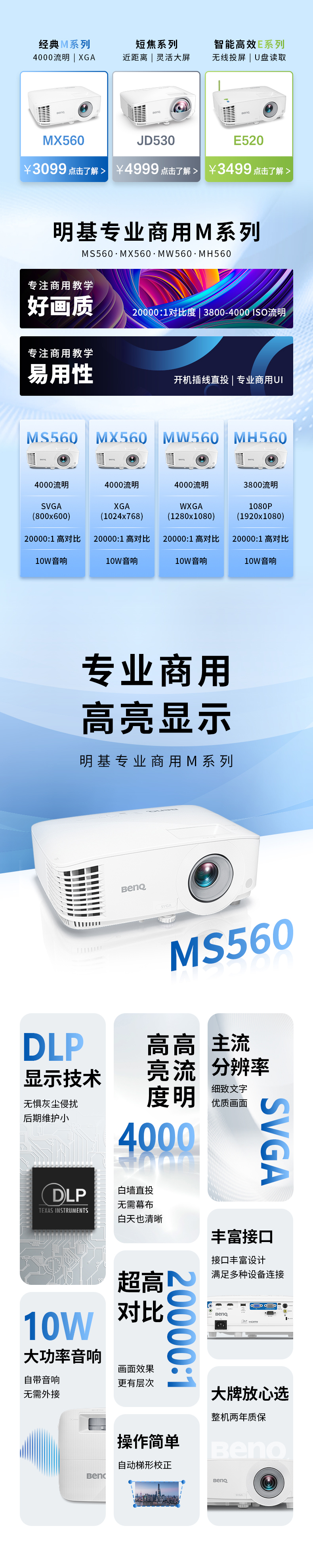 明基MS560投影仪商用办公高亮会议室教学培训投影机benq(4000流明 高对比度 自动校正)