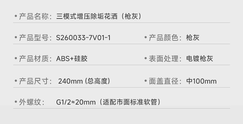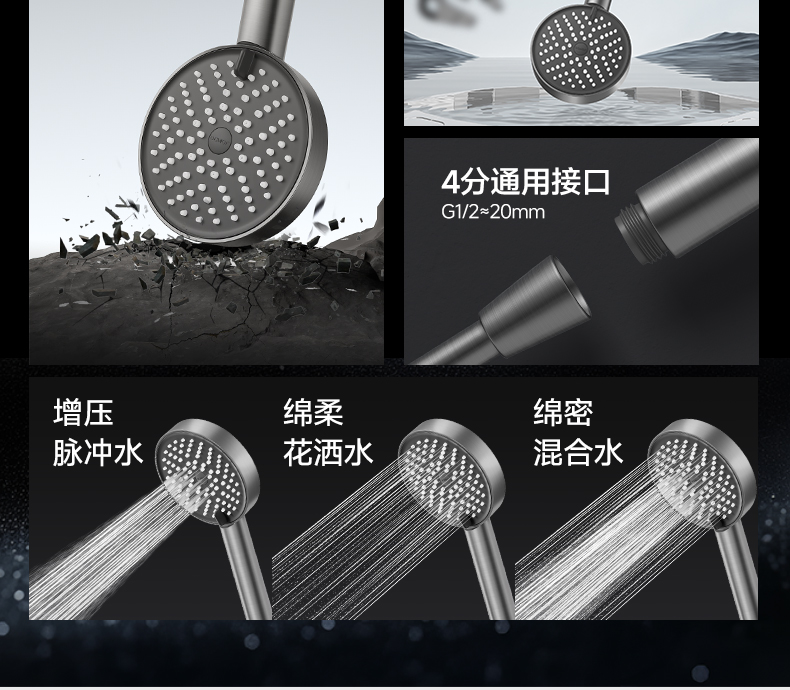 九牧枪灰色增压花洒喷头加压浴室洗澡沐浴淋浴手持莲蓬头家用花晒