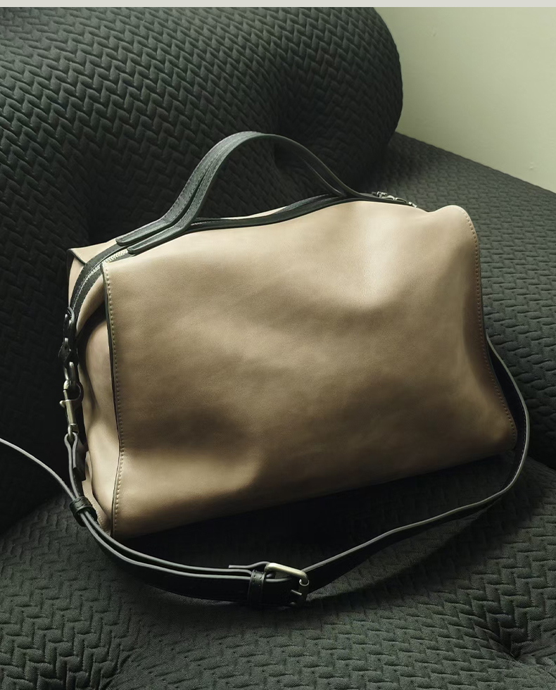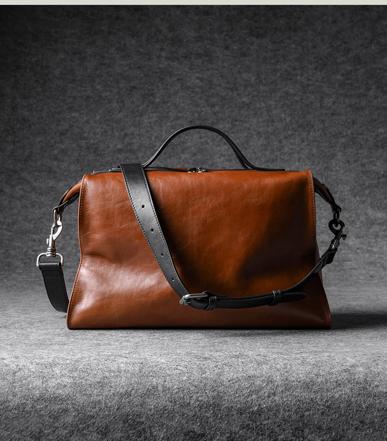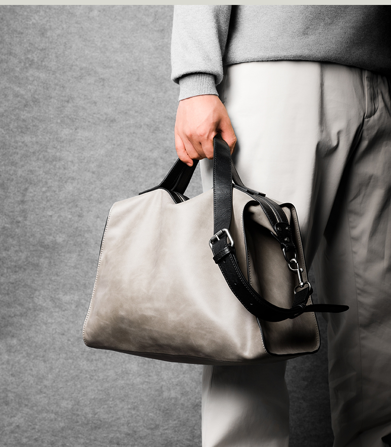 吉卡尼 复古公文包真皮邮差包通勤单肩斜挎包男大容量运动健身包