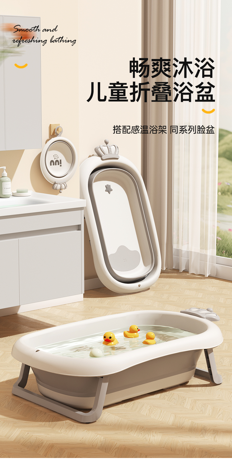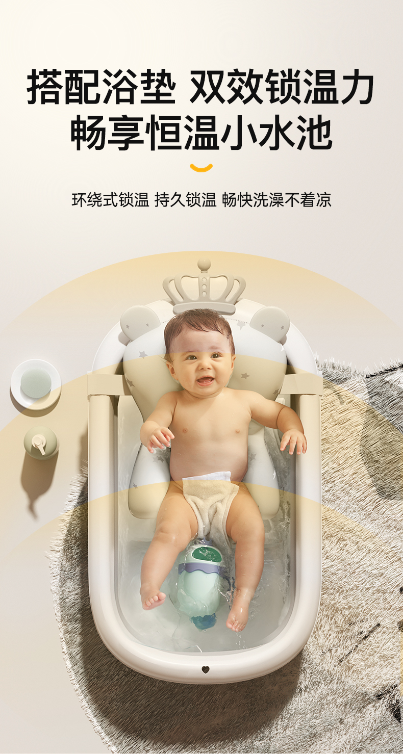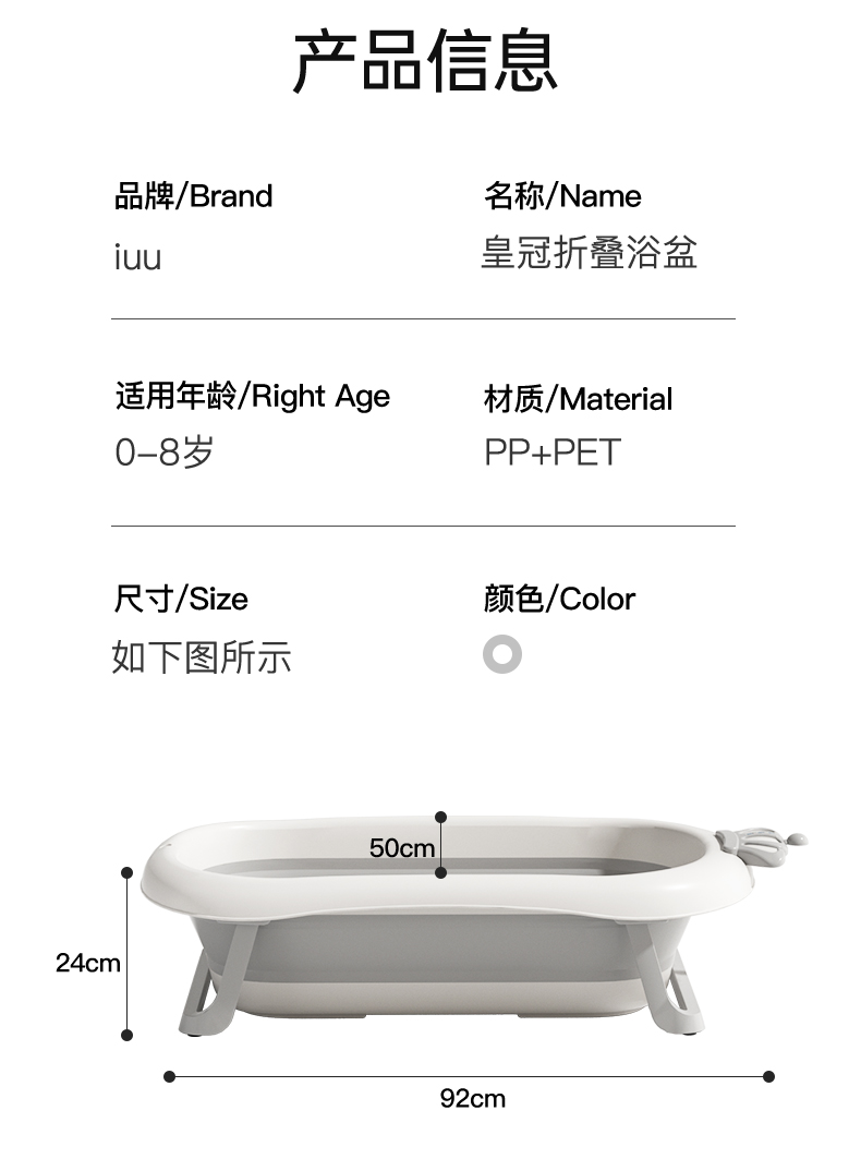 IUU婴儿洗澡盆宝宝浴盆幼儿坐躺折叠大号浴桶家用新生儿童用品