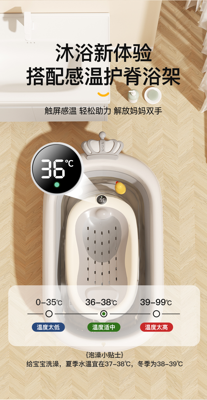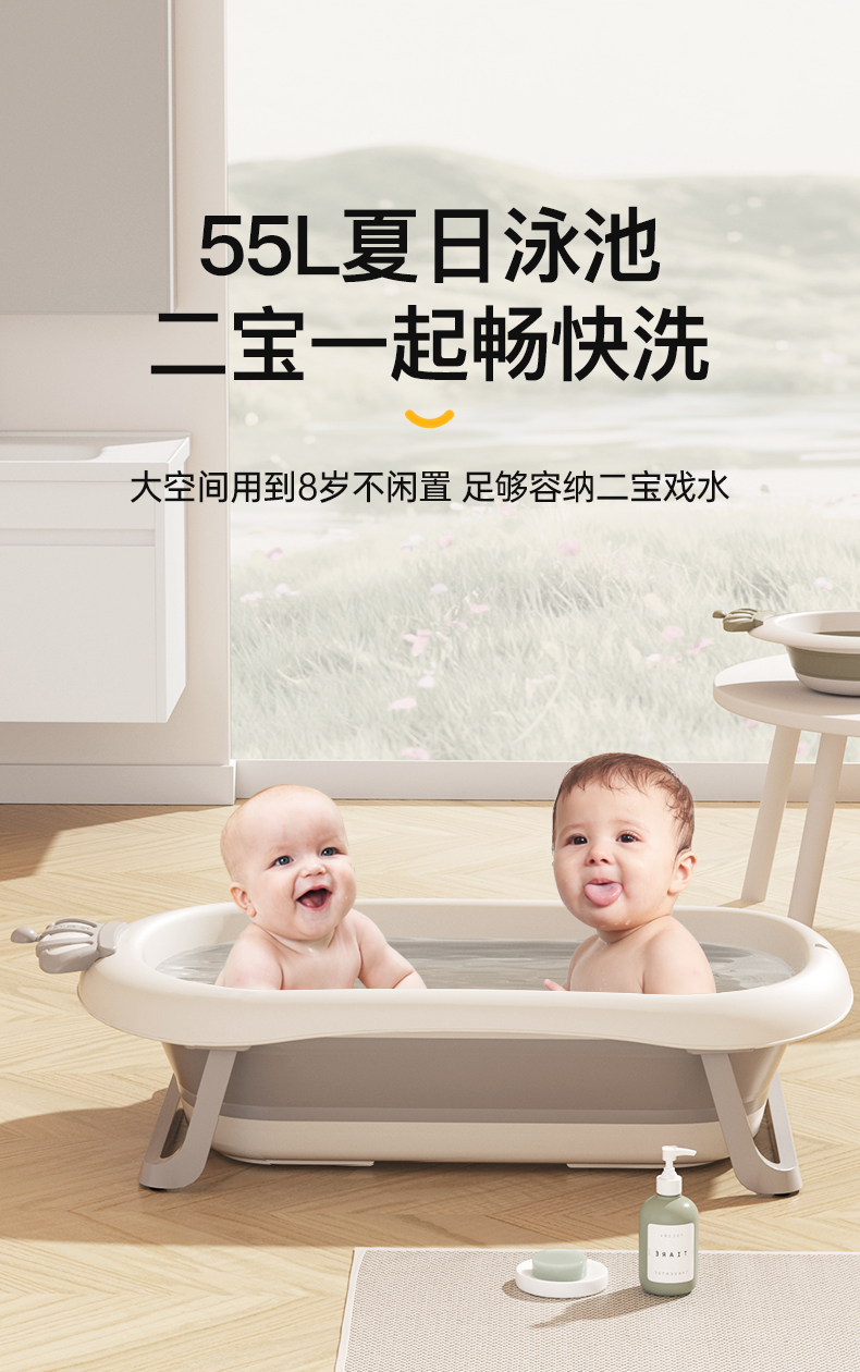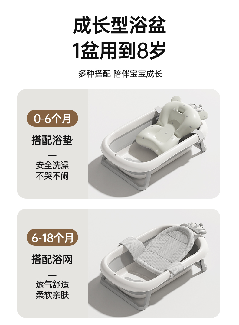 IUU婴儿洗澡盆宝宝浴盆幼儿坐躺折叠大号浴桶家用新生儿童用品