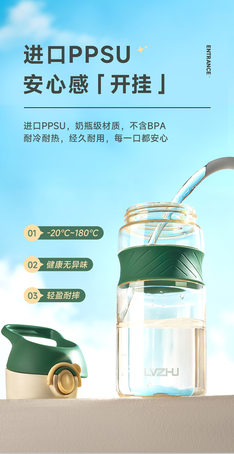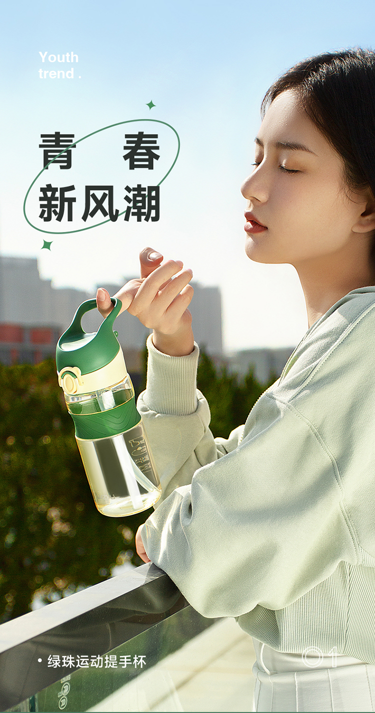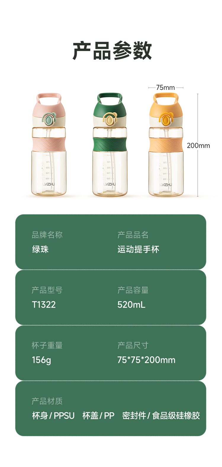 绿珠夏季运动水杯女生高颜值随手杯大容量吸管杯孕妇产妇专用杯子