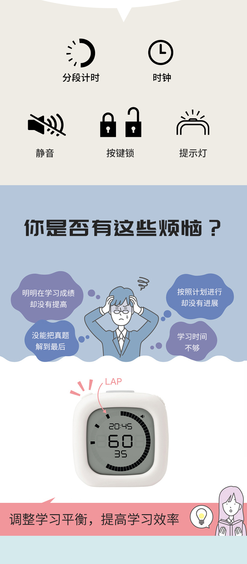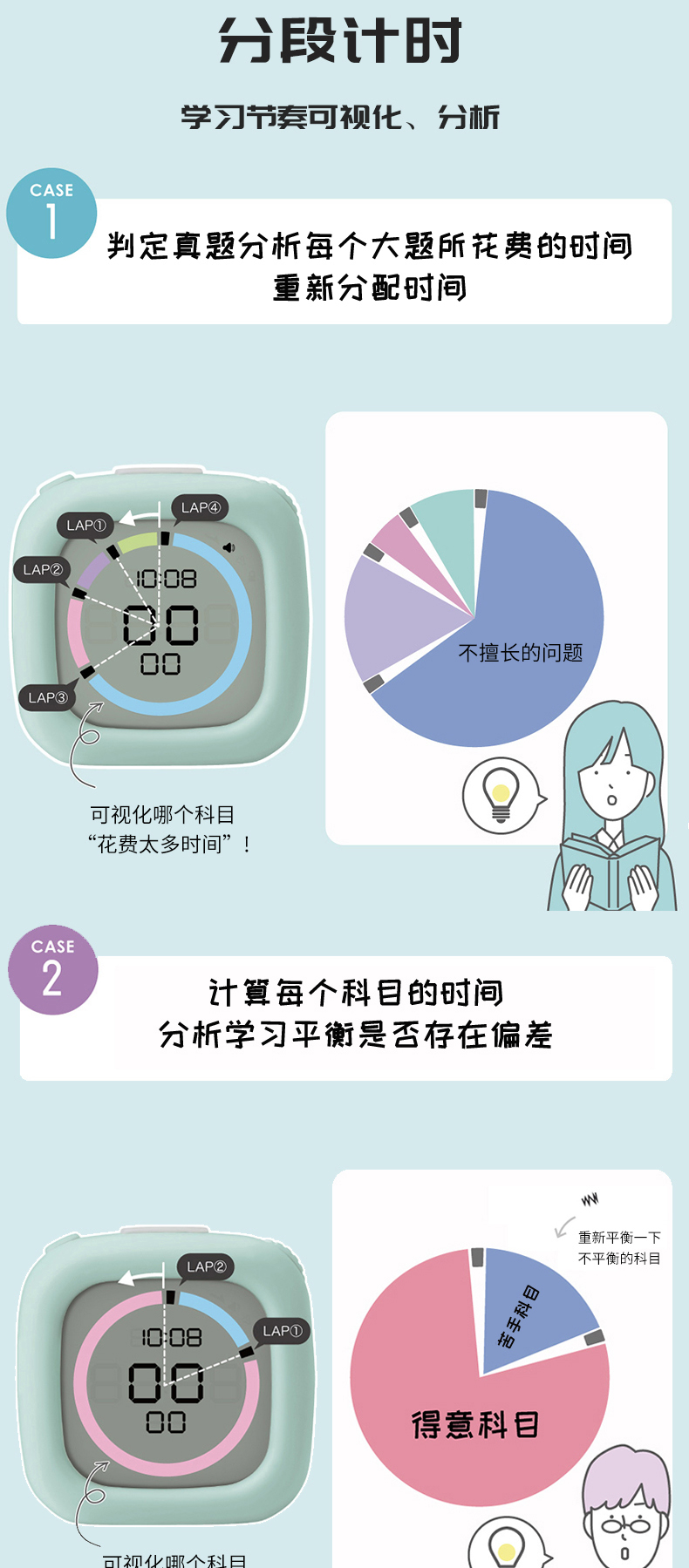 日本SONIC索尼克时钟分段计时器可视化儿童时间管理器中小学生作业学习考试桌面秒表定时器文具礼物